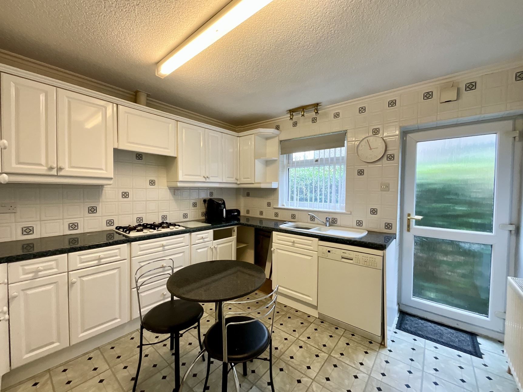 The breakfast kitchen is well proportioned and fitted with a range of wall and base cabinets, contrasting worktops, integrated oven and hob, plus ample space for a bistro dining table and chairs. A side door provides convenient access to the exterior.