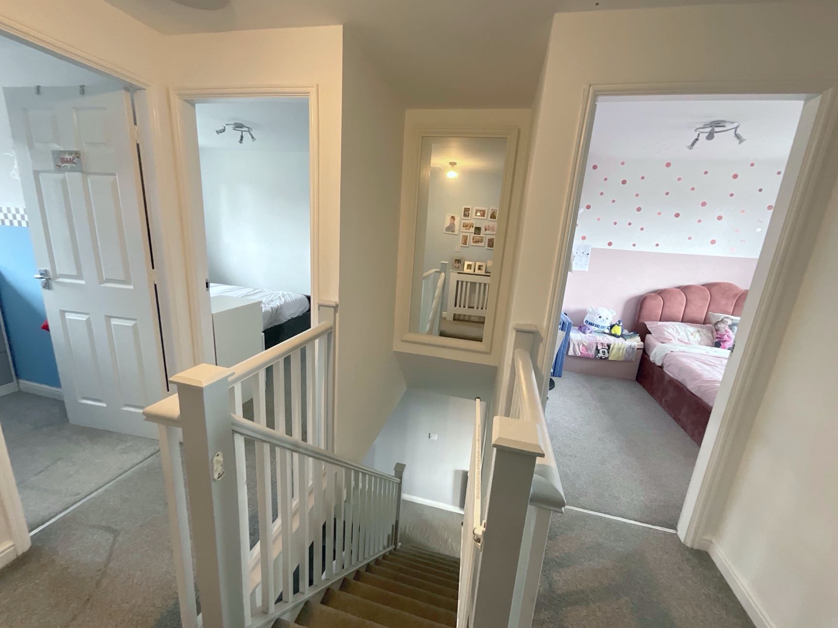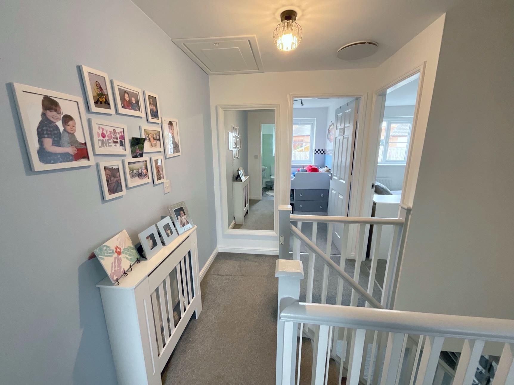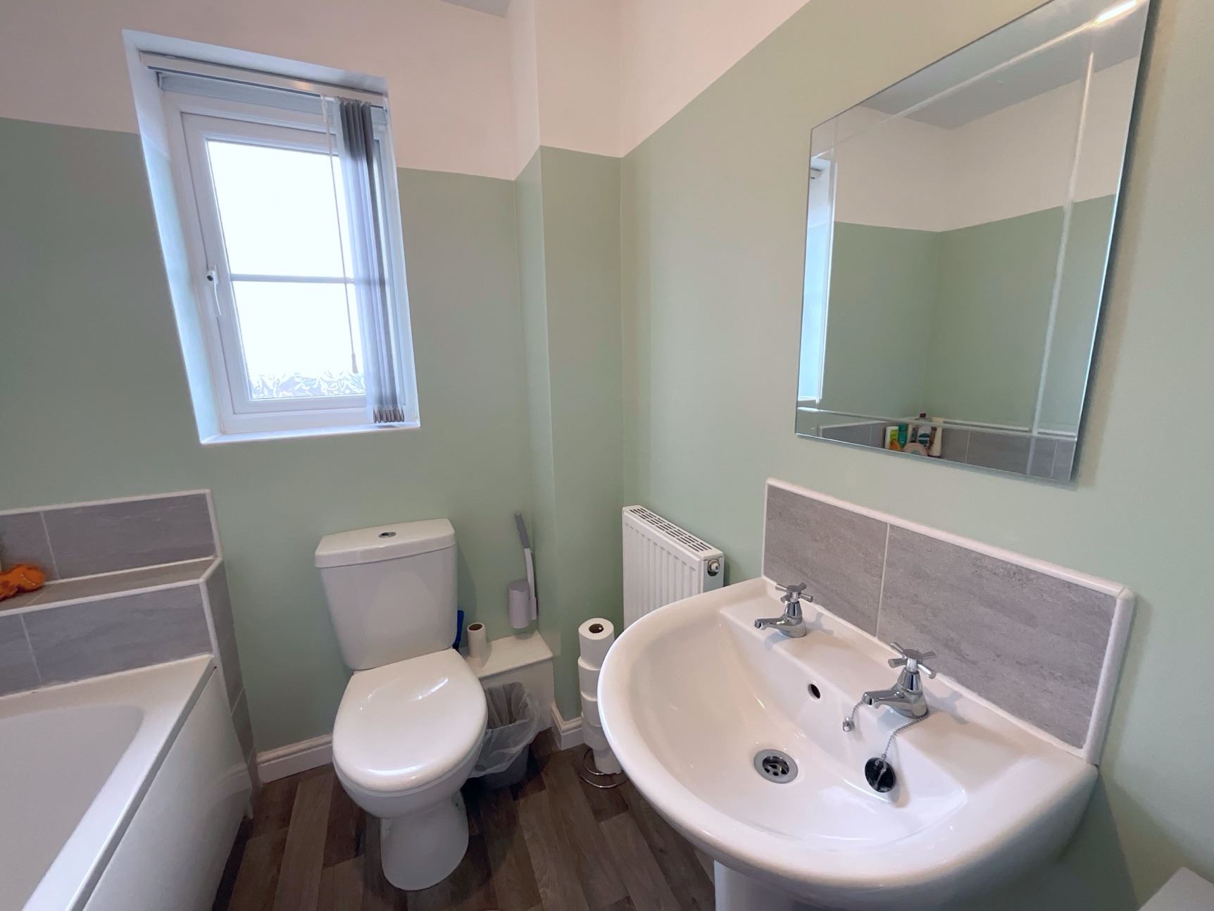 Upstairs, three well-sized bedrooms offer flexibility for family living, guest accommodation, or home office space. Each room comfortably accommodates fitted or freestanding furniture. A modern family bathroom with a stylish three-piece suite completes the first floor.