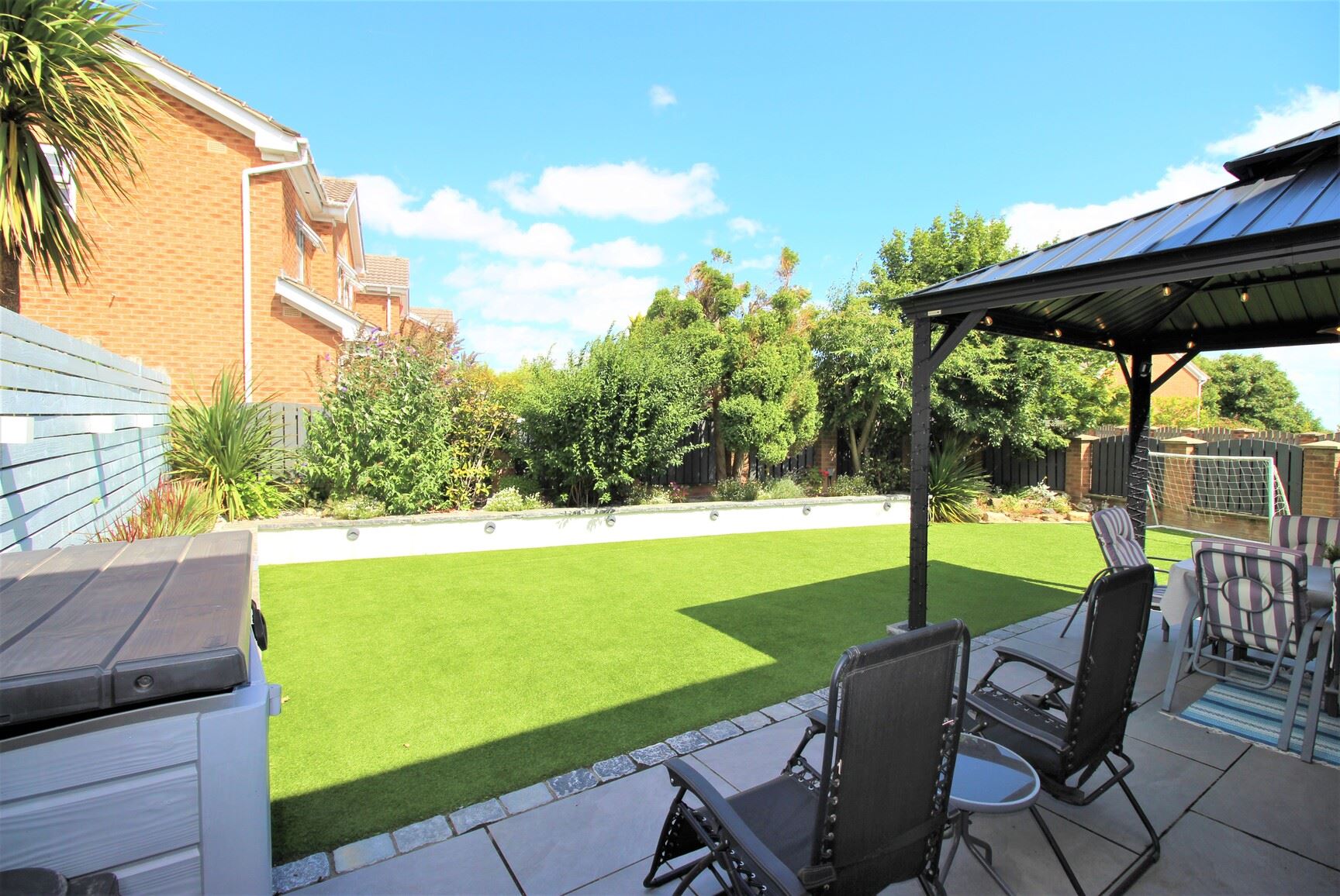 Externally, the property boasts a garage and driveway to the front, providing off-road parking. The beautifully maintained, level rear garden is laid to lawn and features a charming garden arbour, perfect for enjoying shaded outdoor relaxation.