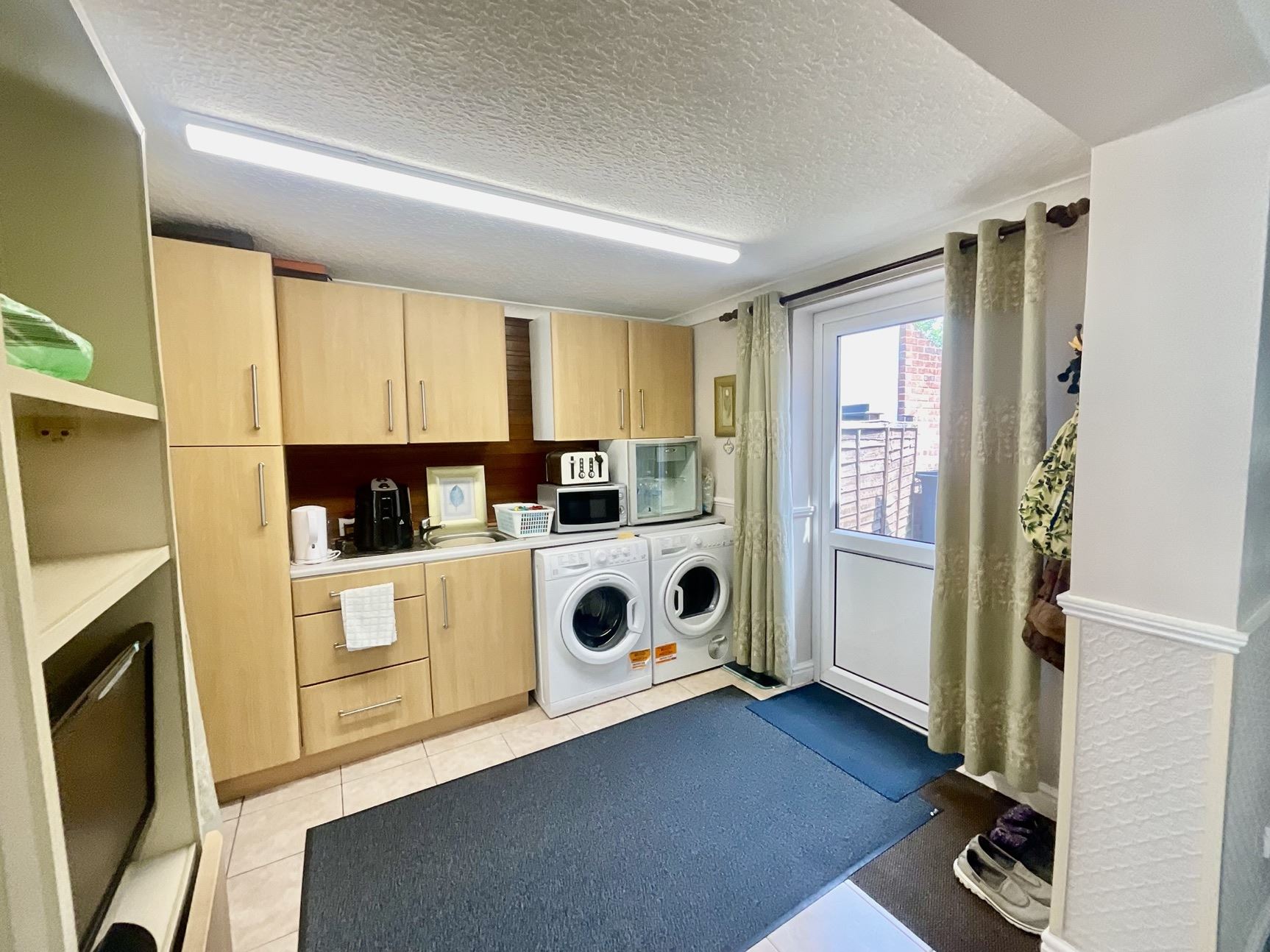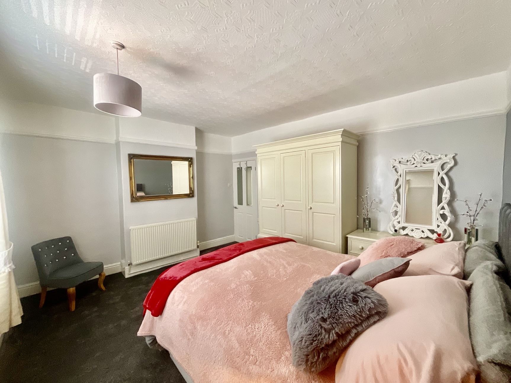 Upon entering the property, you are greeted with a side entrance that leads to the first-floor landing. The front-facing reception room features an fireplace with, while the large dining room boasts s further feature fireplace, an inbuilt storage cupboard, and ample space for a family-sized dining table and chairs. The kitchen benefits from a range of base and wall units with contrasting worktops. The rear extension boasts a utility area along with a wheel chair accessible inner lobby. WC, and bedroom with bath.