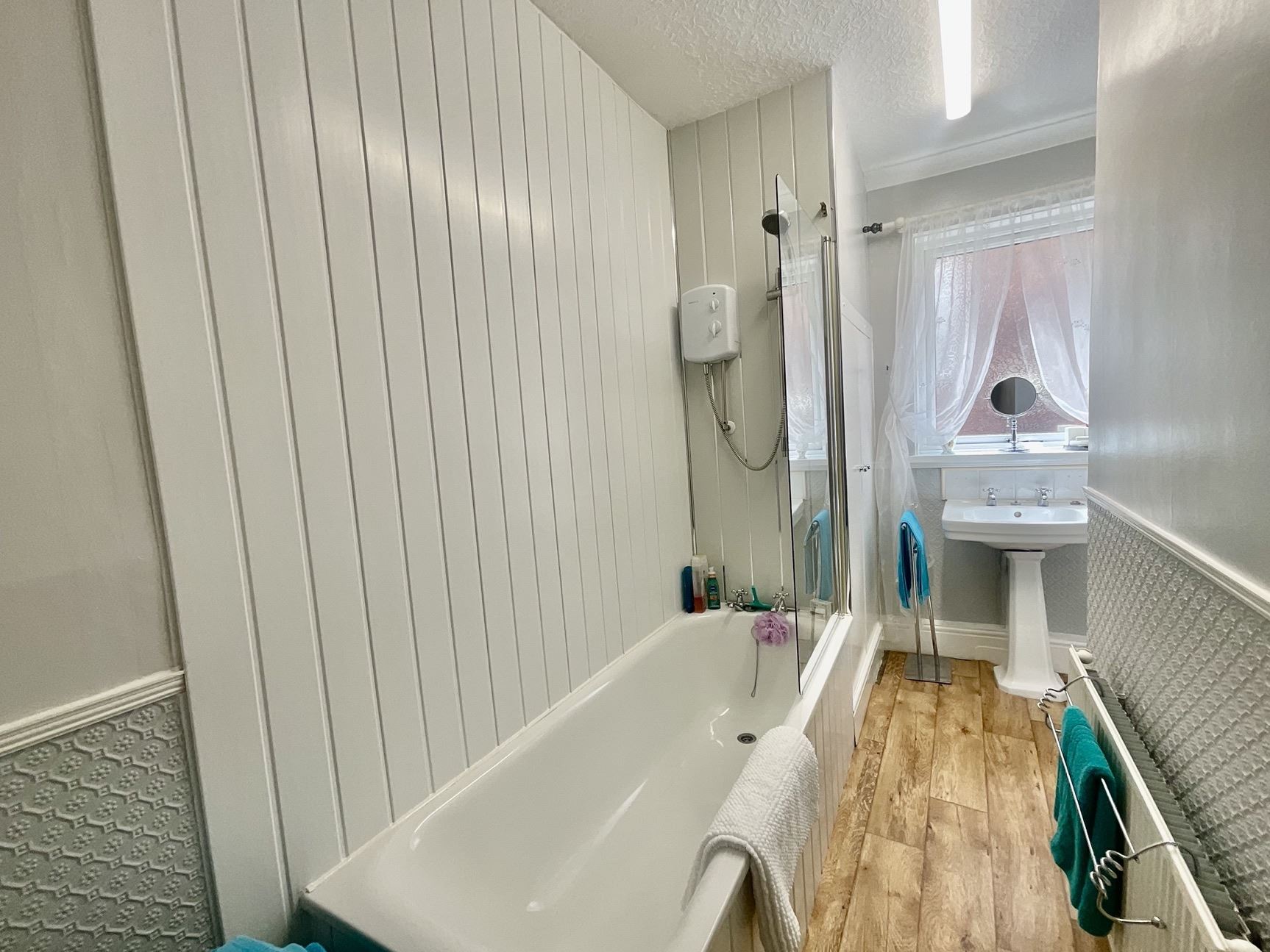 The first floor landing leads to three well-proportioned bedrooms and a family bathroom with a white suite comprising a bath, separate enclosed shower, wash hand basin, and WC. The property benefits from off-road parking for two cars at the front, while the large rear garden is enclosed with timber fencing, complete with two patio's providing ample space for outside dining.
