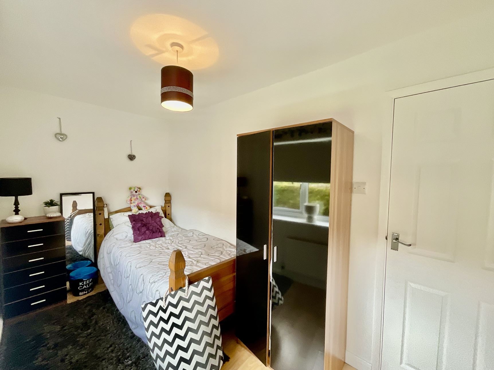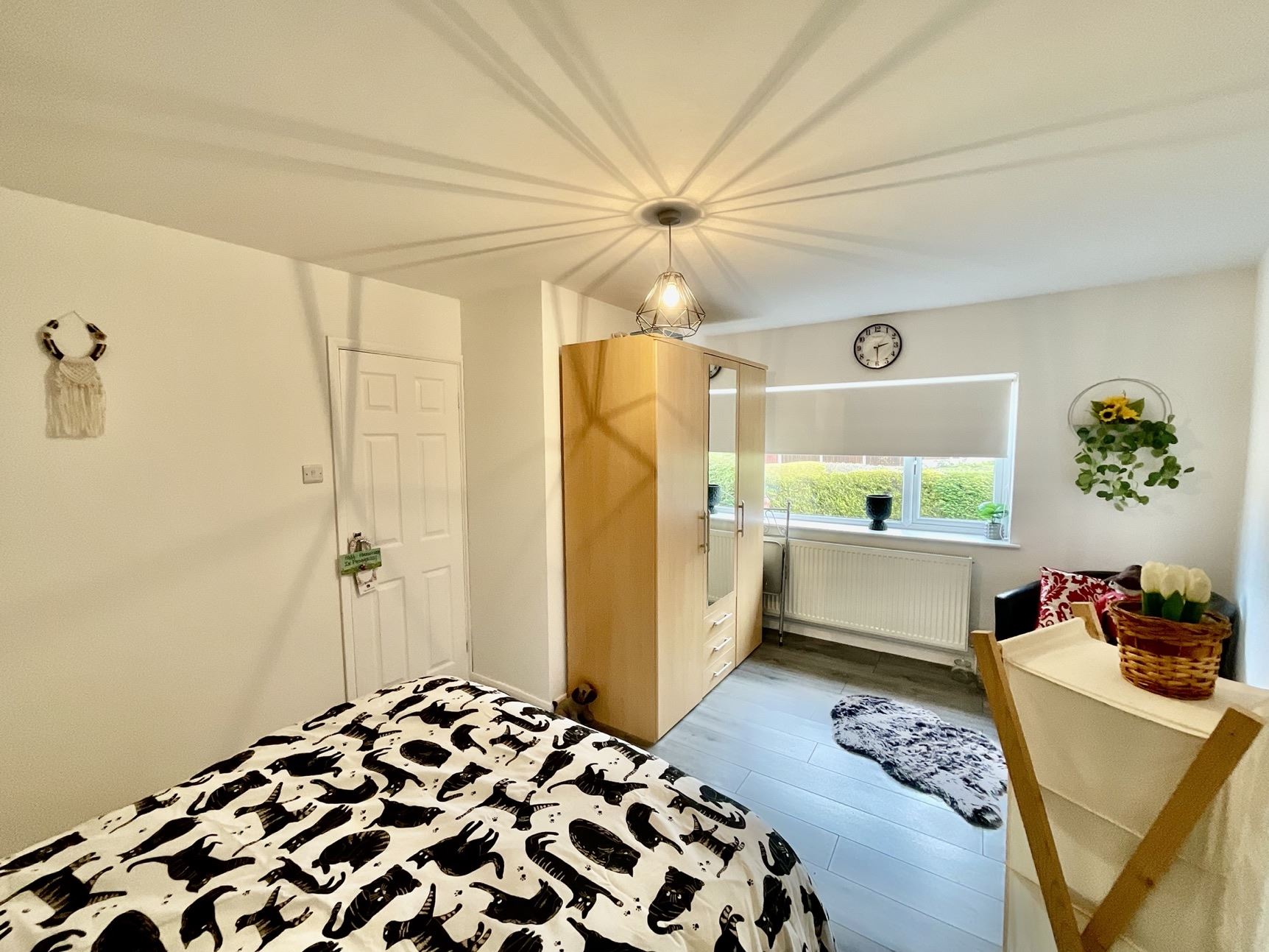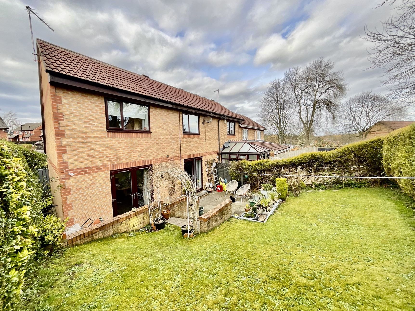 Externally the property has a double driveway to the front, providing ample off street parking for two vehicles, with footpath to the entrance door and out-building store. To the rear of the property is a very well maintained enclosed lawn garden which backs onto the green.