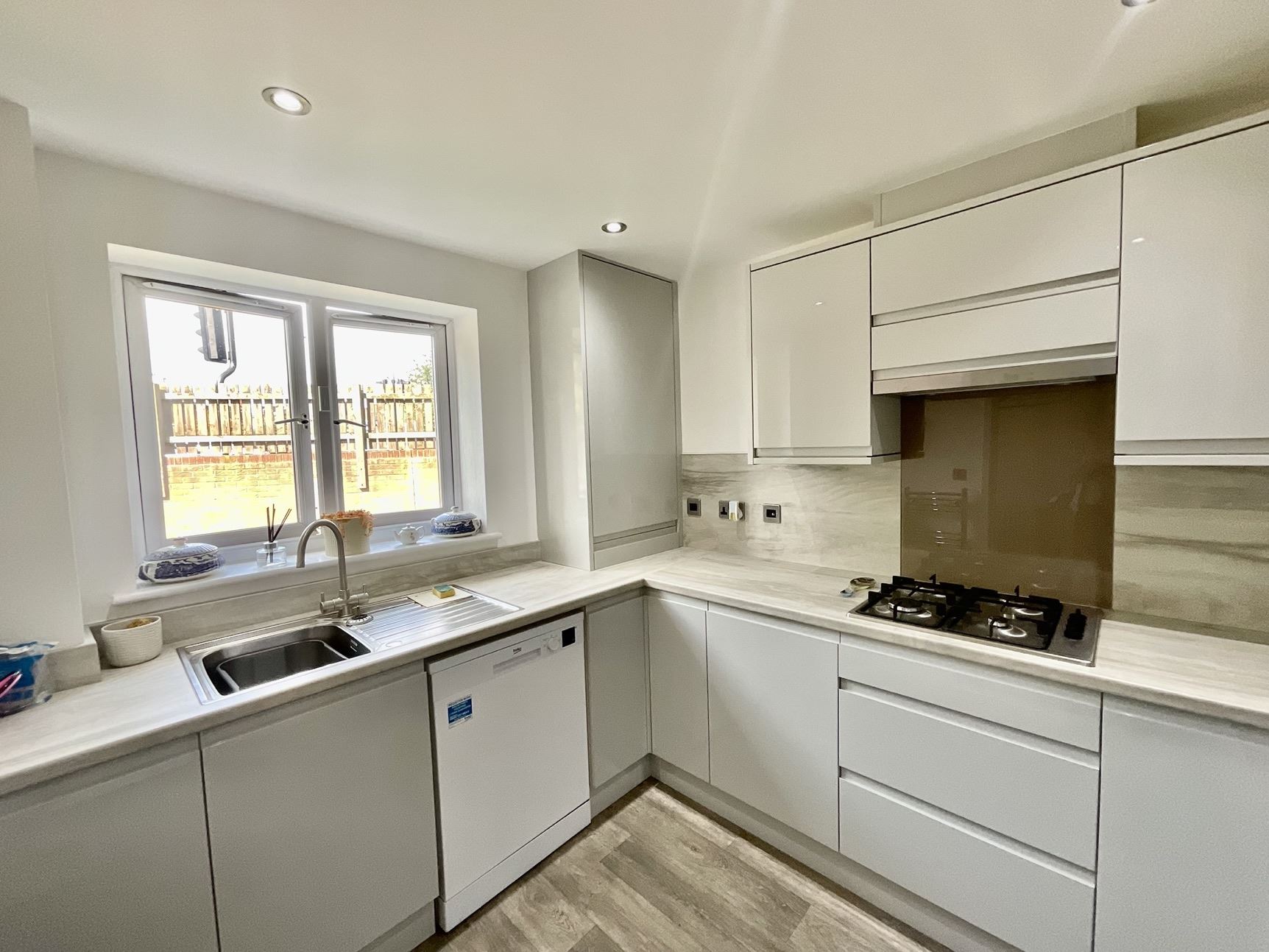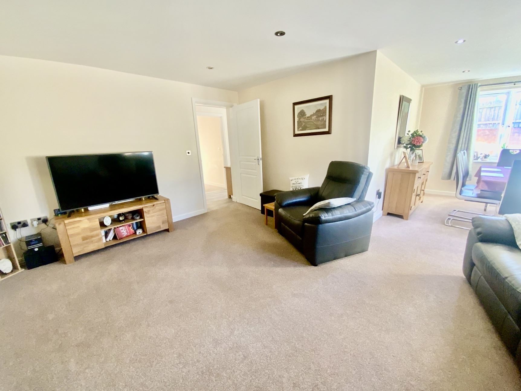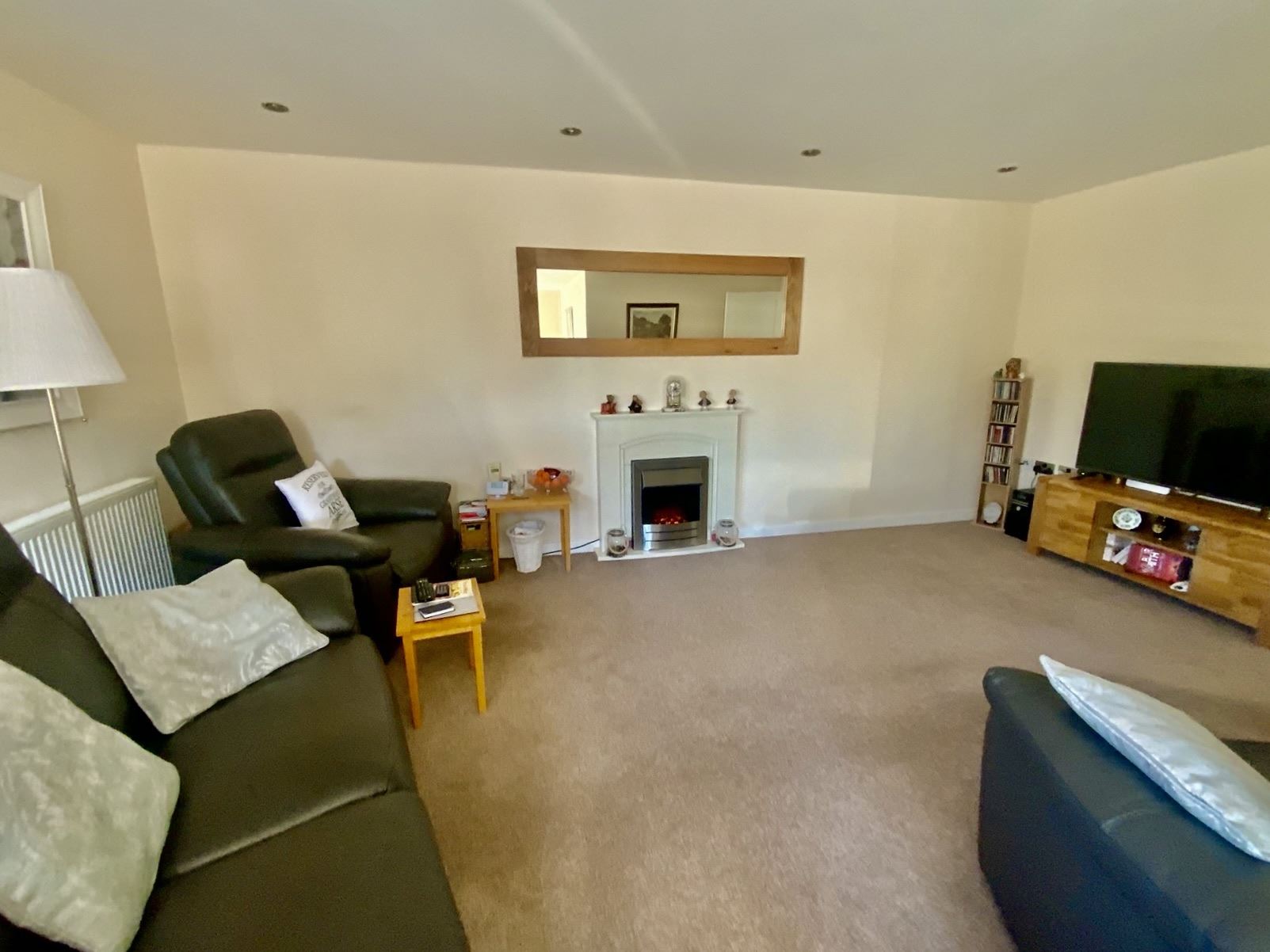 The accommodation briefly comprises Hallway, modern kitchen with a range of walnut style wall, drawer and base cabinets, contrasting work surfaces incorporating hob and oven, central heating boiler installed approximately two years ago. Spacious 'L' shaped lounge / diner with feature fireplace and ample space for family sized dining table and chairs. Generously proportioned master bedroom with recently upgraded en-suite shower room, having enclosed cubicle, wash hand basin and WC inset into combination vanity cabinet. Second double bedroom, and family bathroom having a modern white suite.