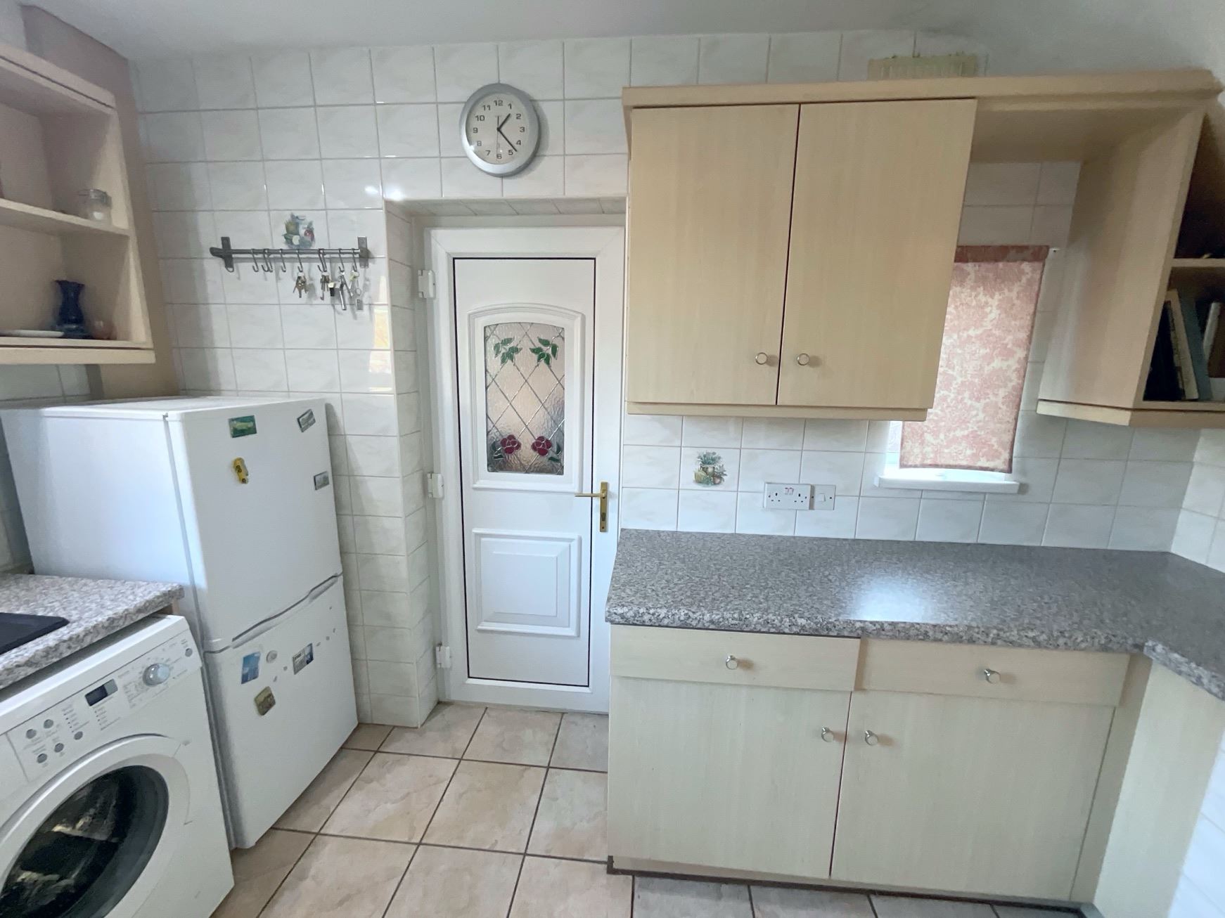 The accommodation briefly comprises a welcoming lounge and a separate dining room with patio doors opening directly onto the rear garden. The fitted kitchen provides space for appliances and gives access to a brick-built attached outbuilding, which in turn leads to the rear garden.
