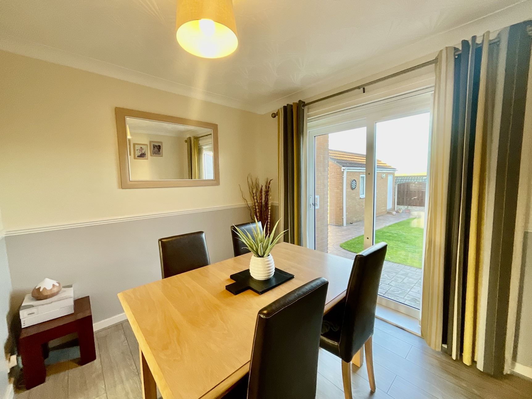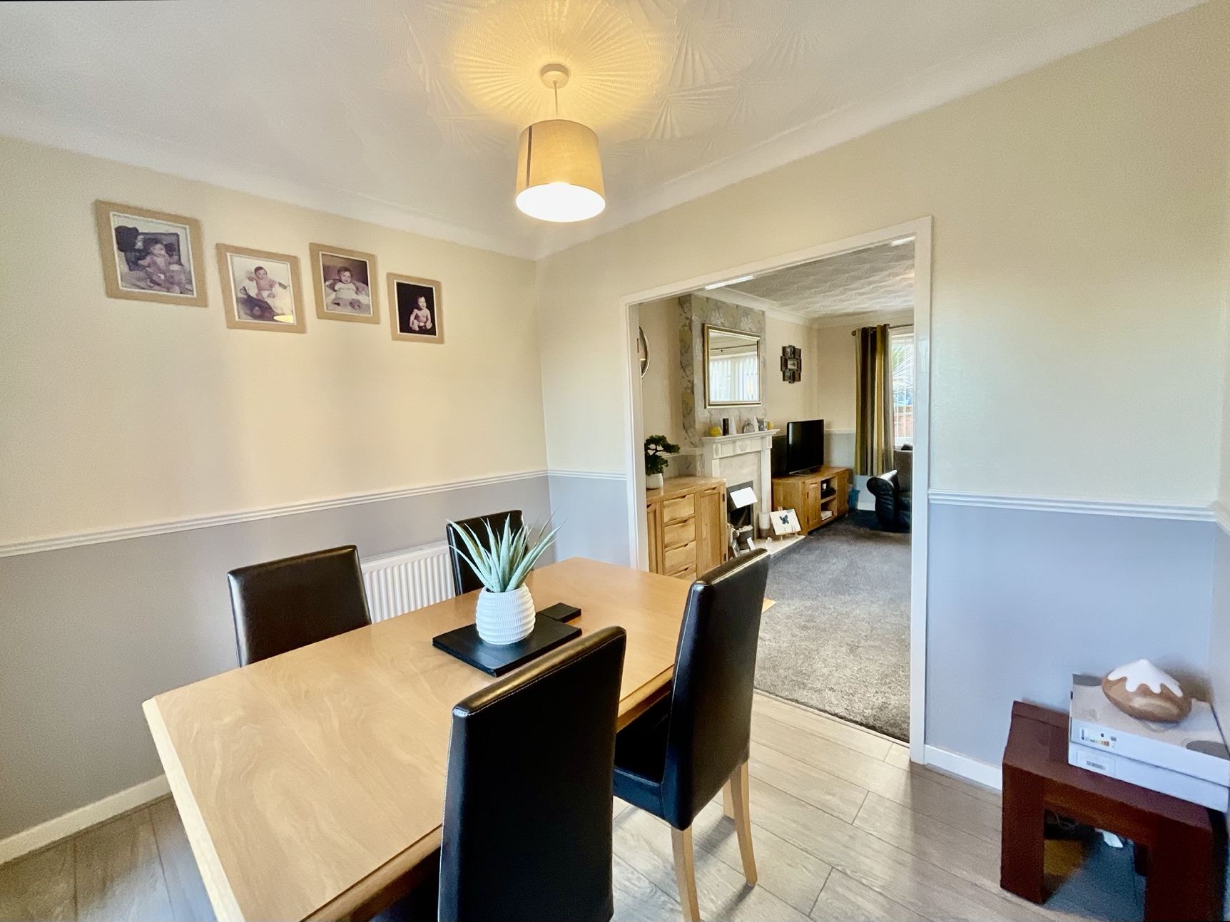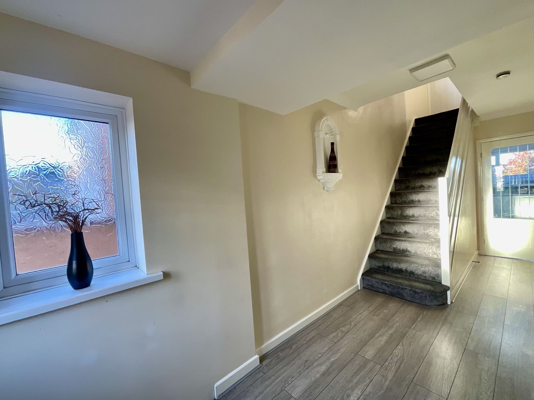 The property opens into the hallway with additional open porch area, with stairs rising to the first floor landing. Spacious lounge with attractive décor and separate dining room with rear doors leading onto the rear garden. Impressive kitchen with a range of wall and base cabinets, contrasting work surfaces incorporating an Hob and oven, There is a side external door and under stairs storage cupboard.