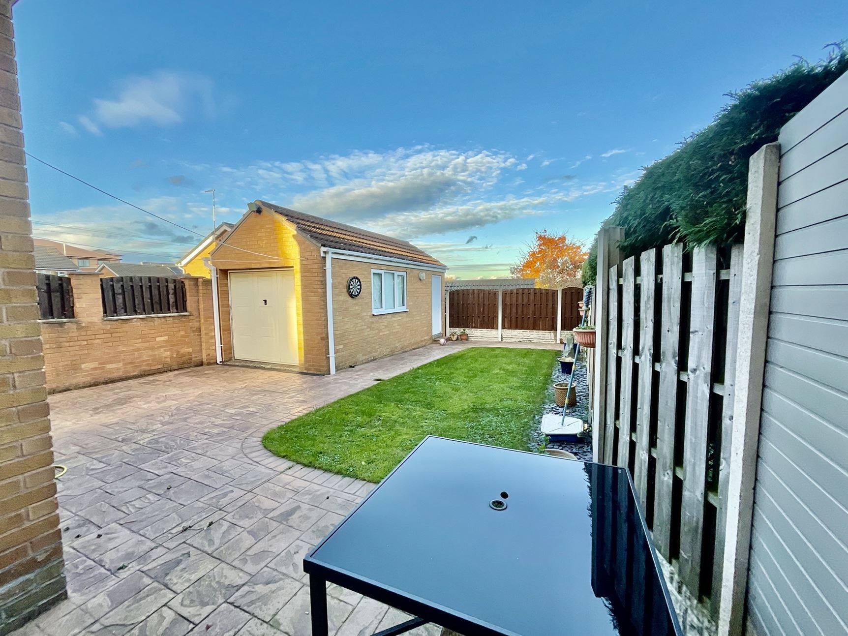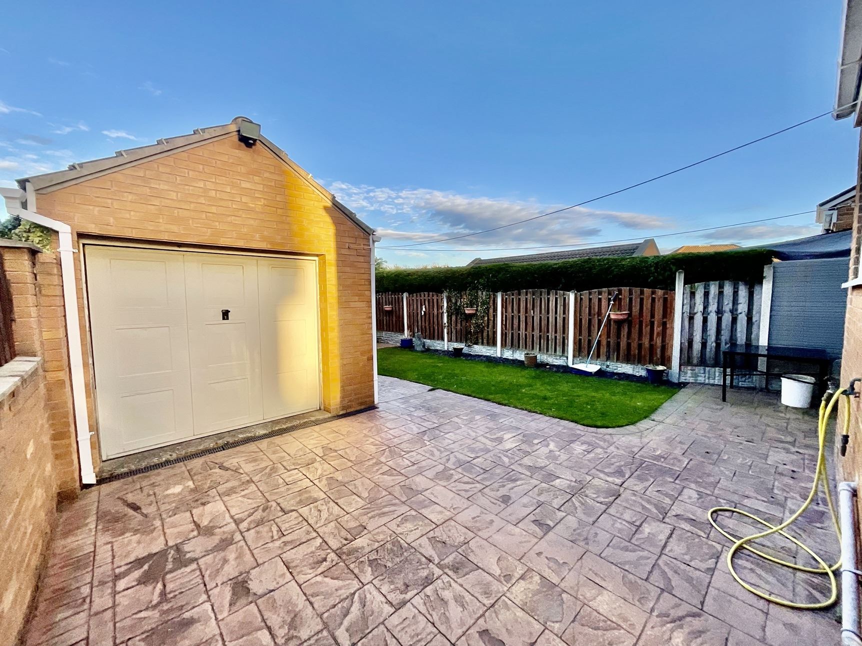 To the front of the property is a driveway providing off road parking for up to three cars, side double gates give access to the detached garage. The rear garden is mainly laid to lawn and there are outside patio area providing space for outside dining.