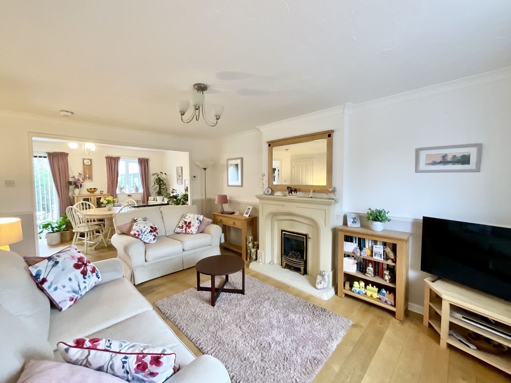 In summary, the property features a welcoming entrance hallway, a generously sized open-plan lounge/dining room, a well-fitted kitchen, and a delightful conservatory. The first floor encompasses three bedrooms and a family bathroom. Outside, the rear gardens offer a picturesque backdrop with open views, complemented by a driveway leading to a garage.