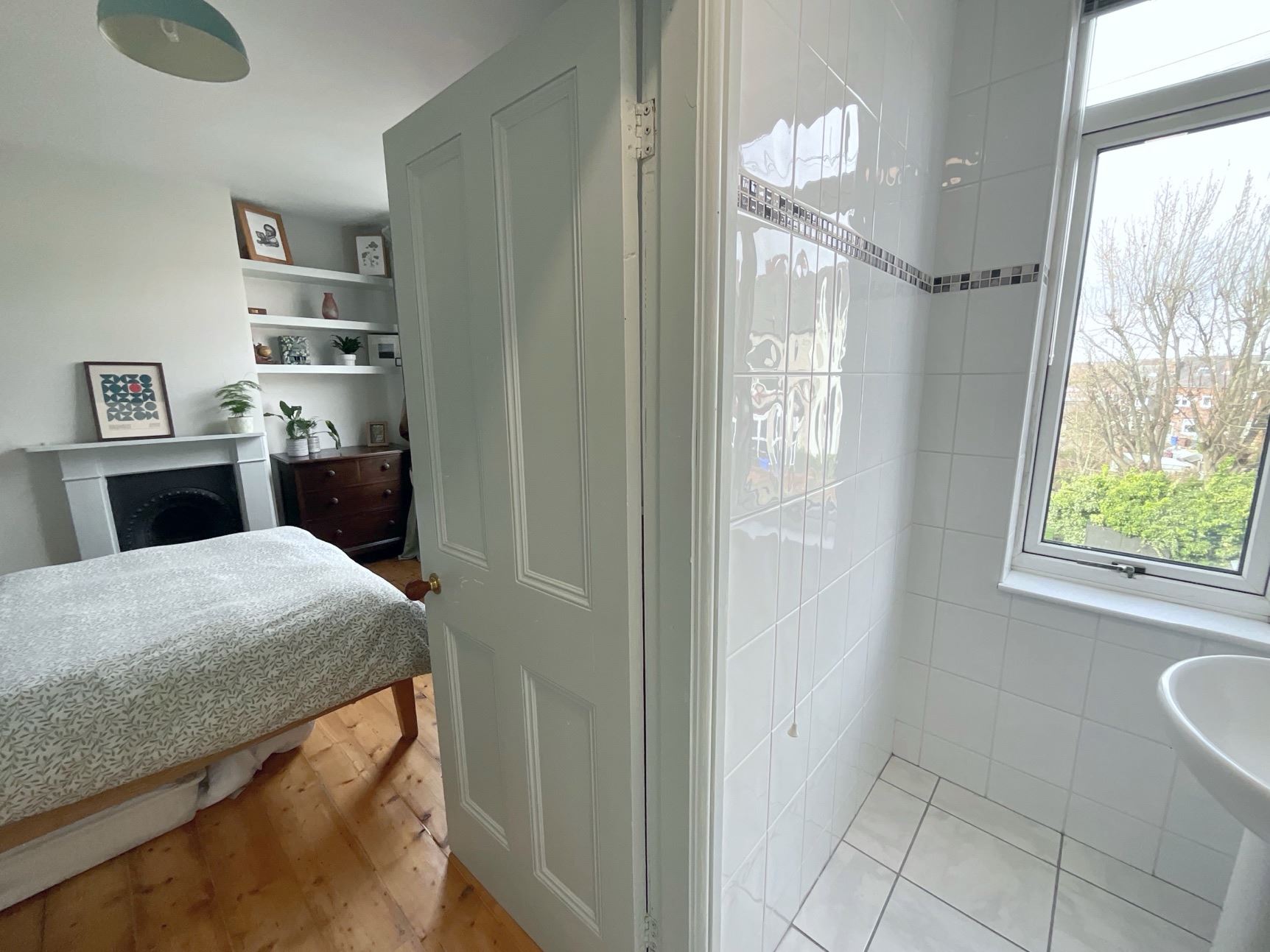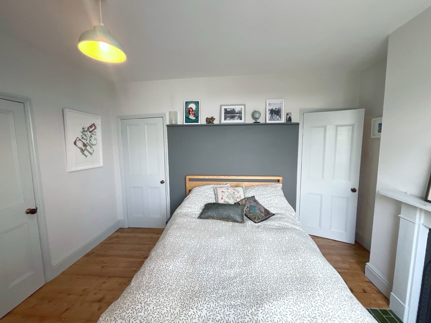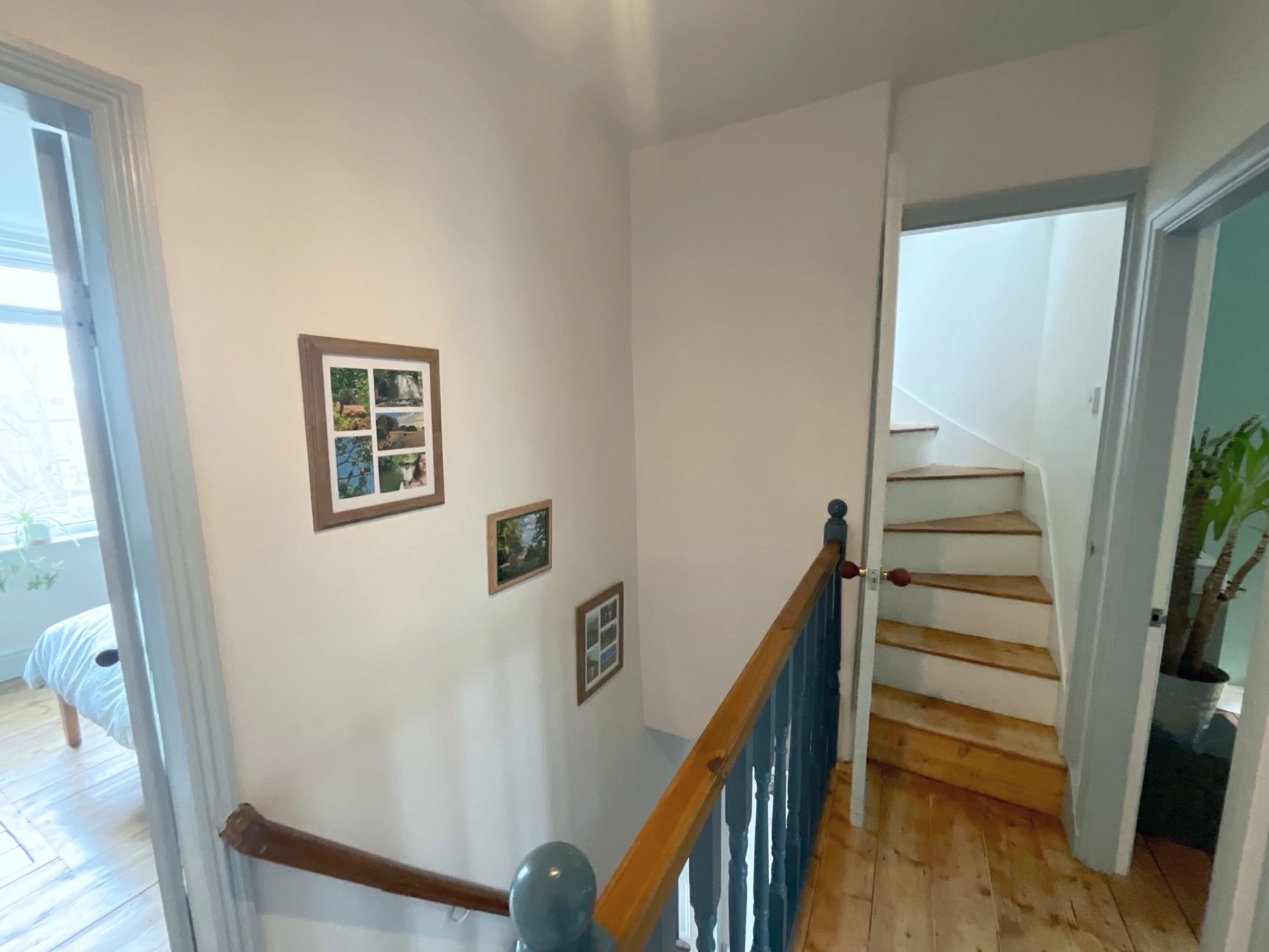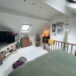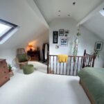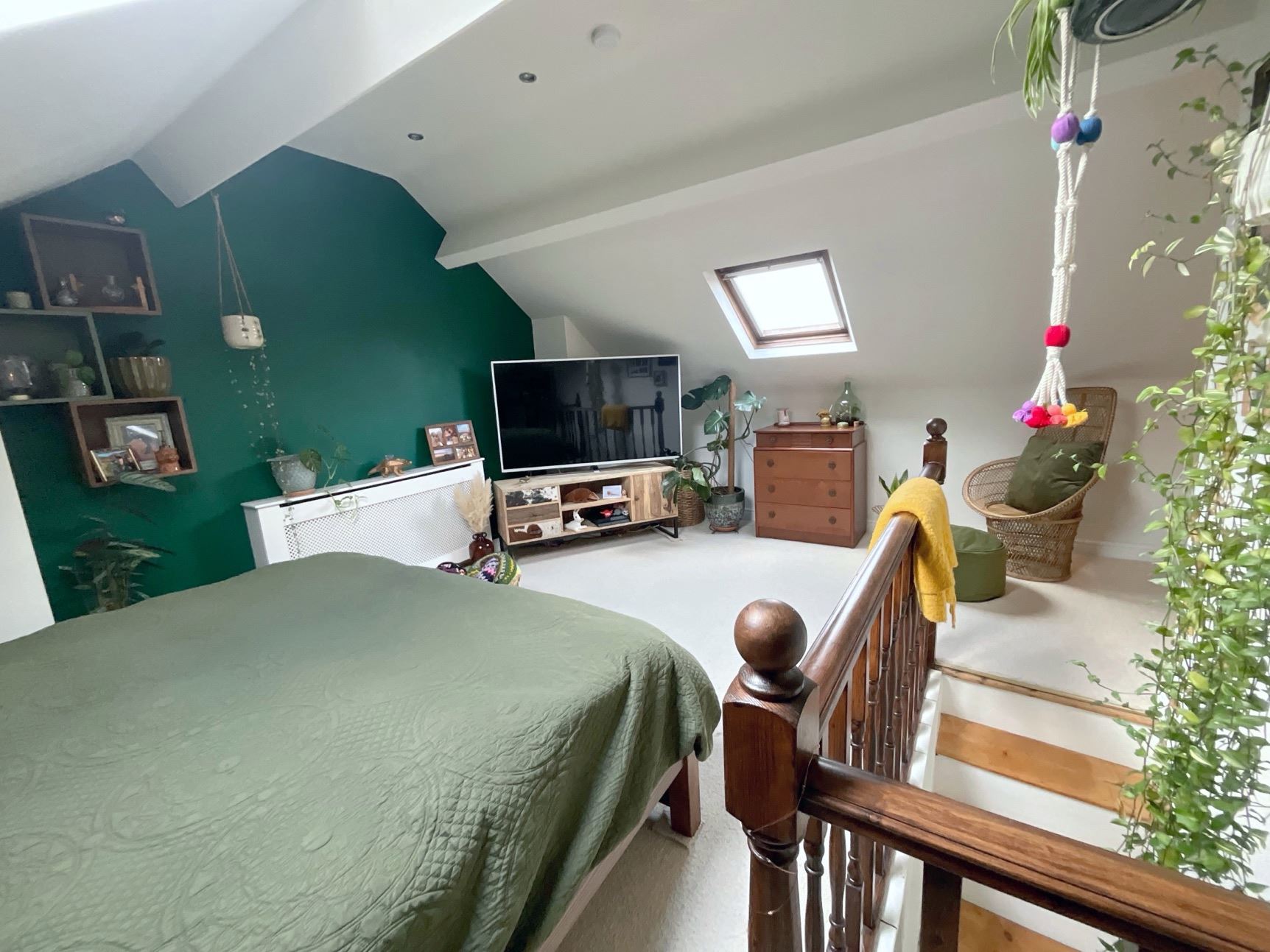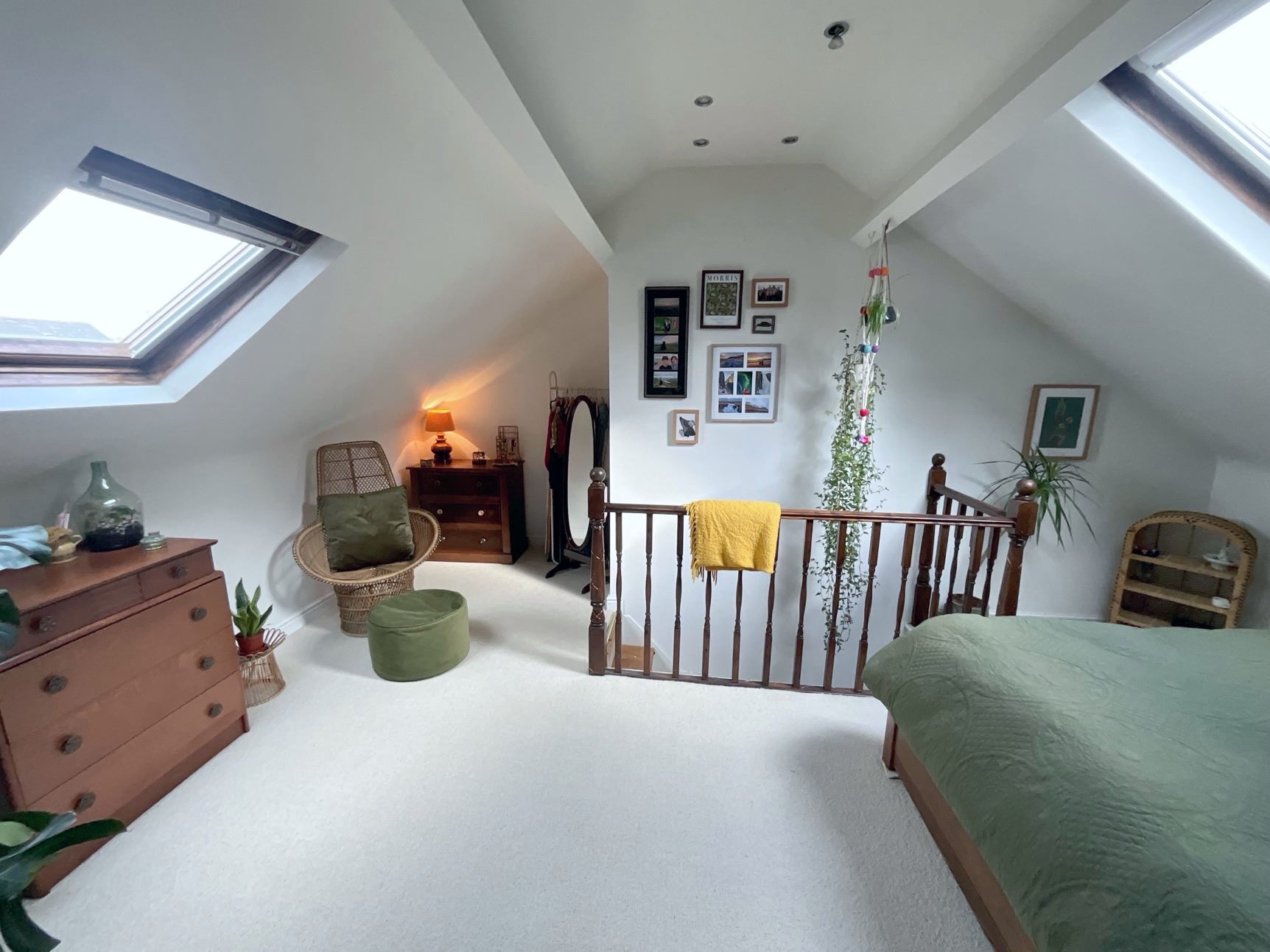 A further staircase leads to the spacious attic bedroom, a wonderful additional living or sleeping space illuminated by Velux skylights, offering flexibility for guests, a home office, or a private retreat.