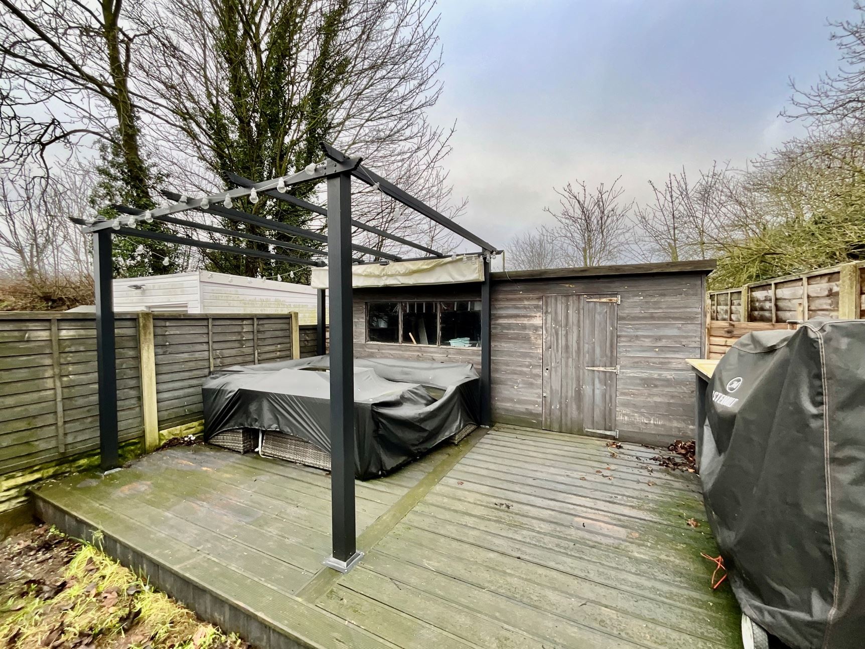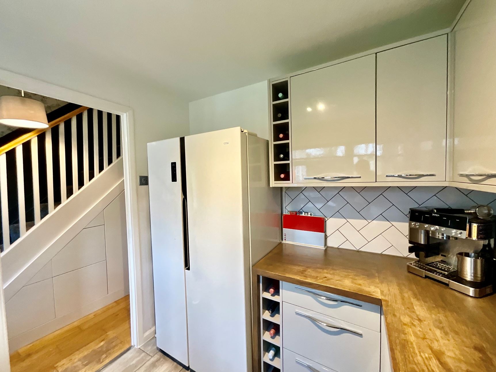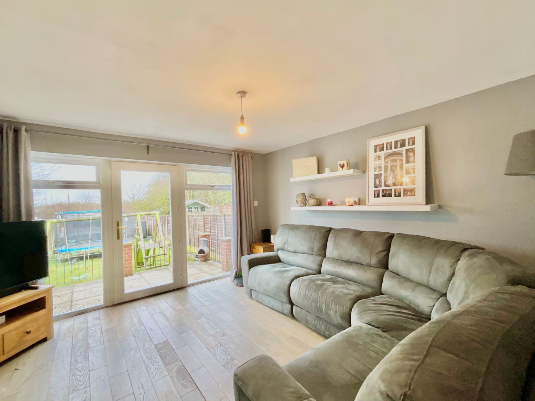 The interior of this well presented property comprises a entrance hallway with modern under stairs storage, spacious lounge with additional storage cupboard and fitted kitchen with a good range of base and wall units. The first floor consists of two good sized bedrooms and the family bathroom. The exterior boasts gardens to the front and rear with patio seating areas and a timer summerhouse benefitting from power and light. The property also benefits from a garage.