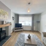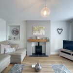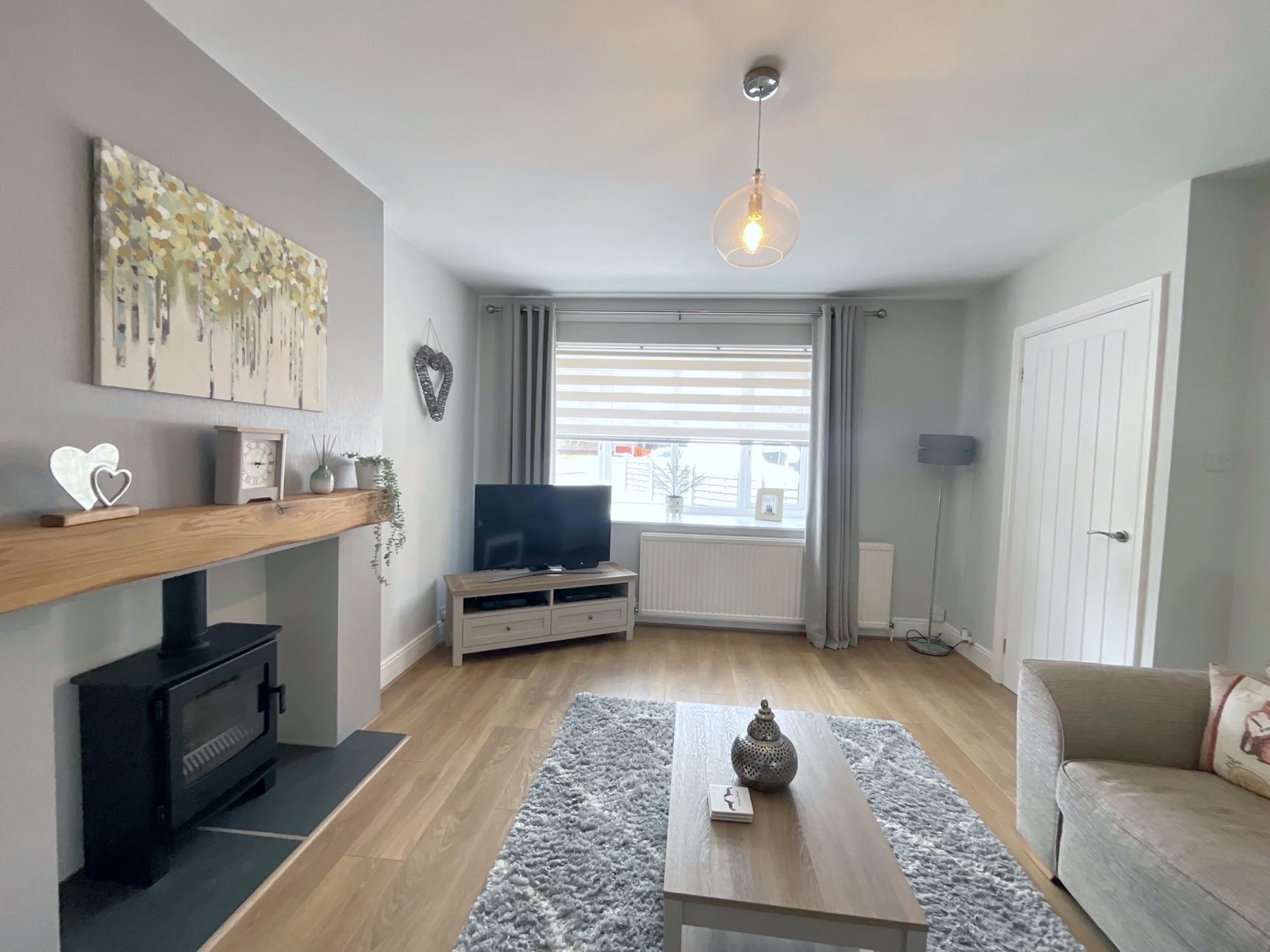 Step inside and fall in love with the bright and welcoming hallway, where natural light pours in through a tall side window. A sleek staircase leads to the first floor, while to the front, a stylish lounge awaits — featuring luxurious Karndean flooring, a striking modern fireplace with electric fire, and a handy under-stairs storage cupboard.