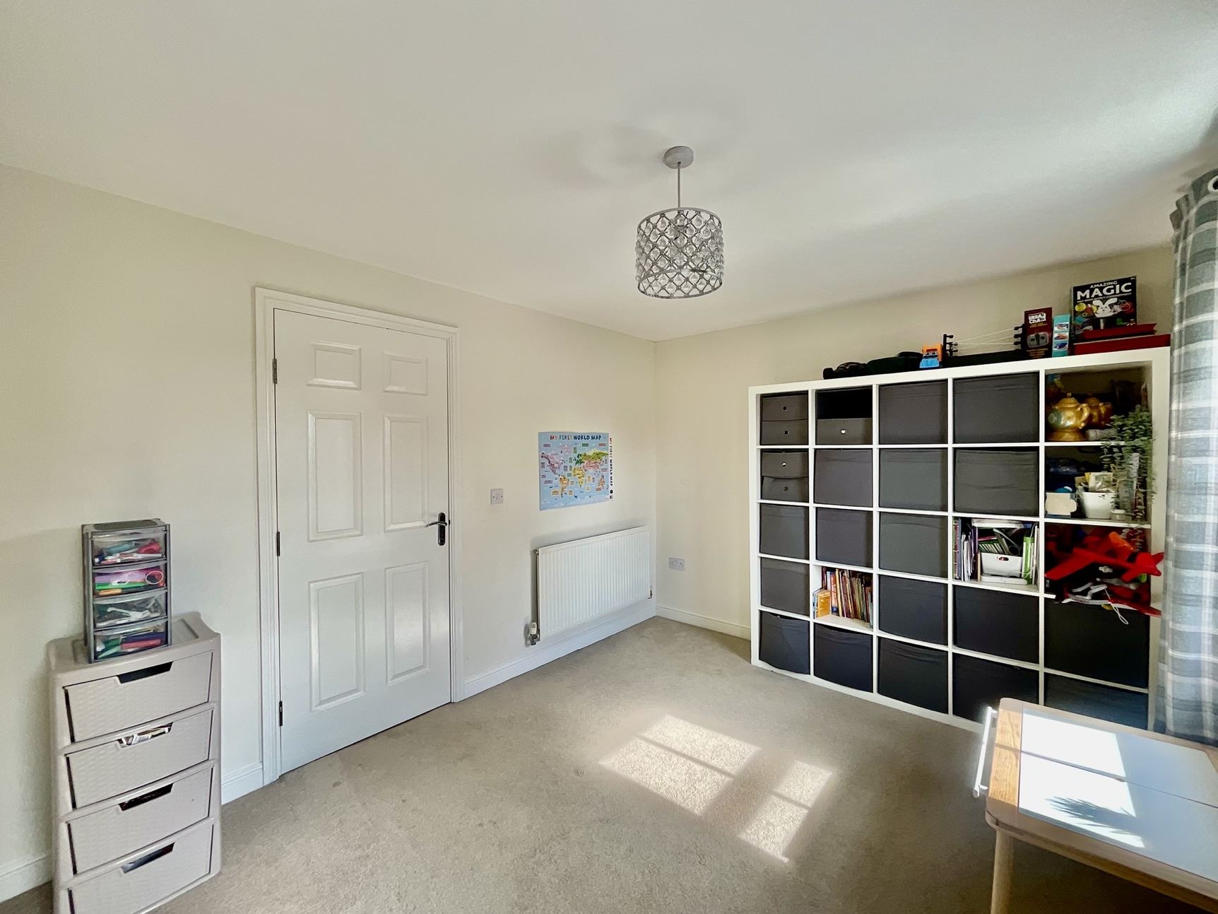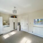 Rear facing room with double glazed window, carpet flooring and radiator.