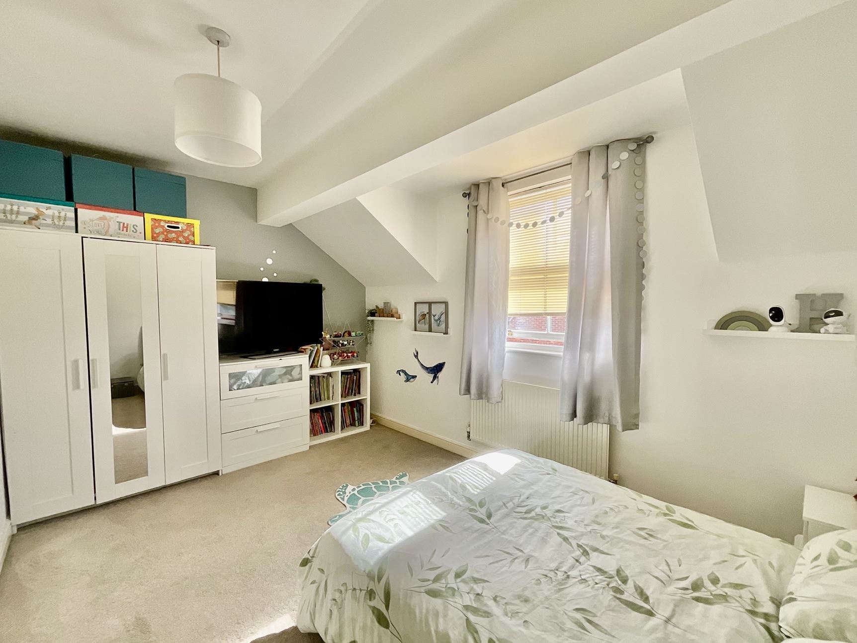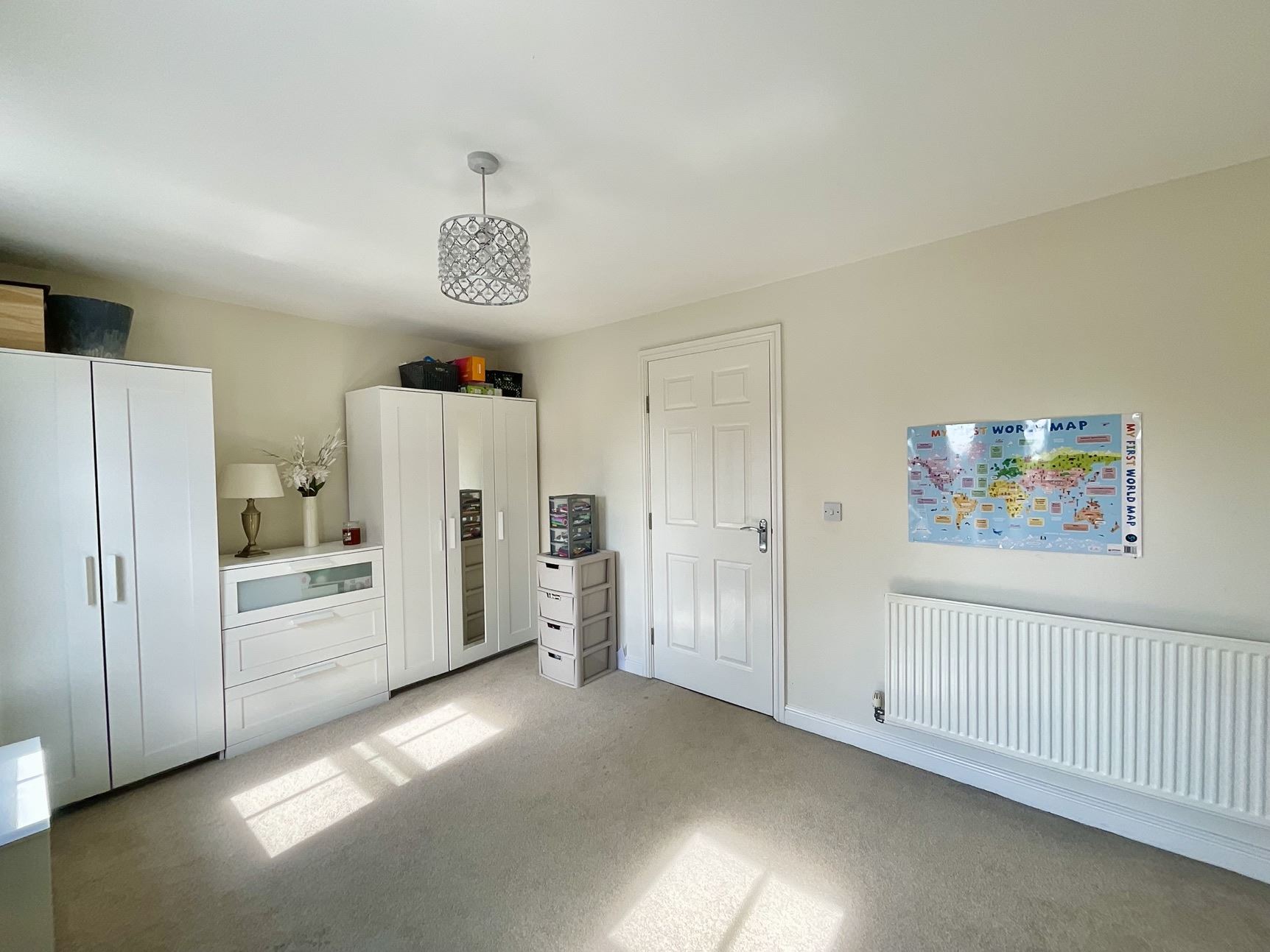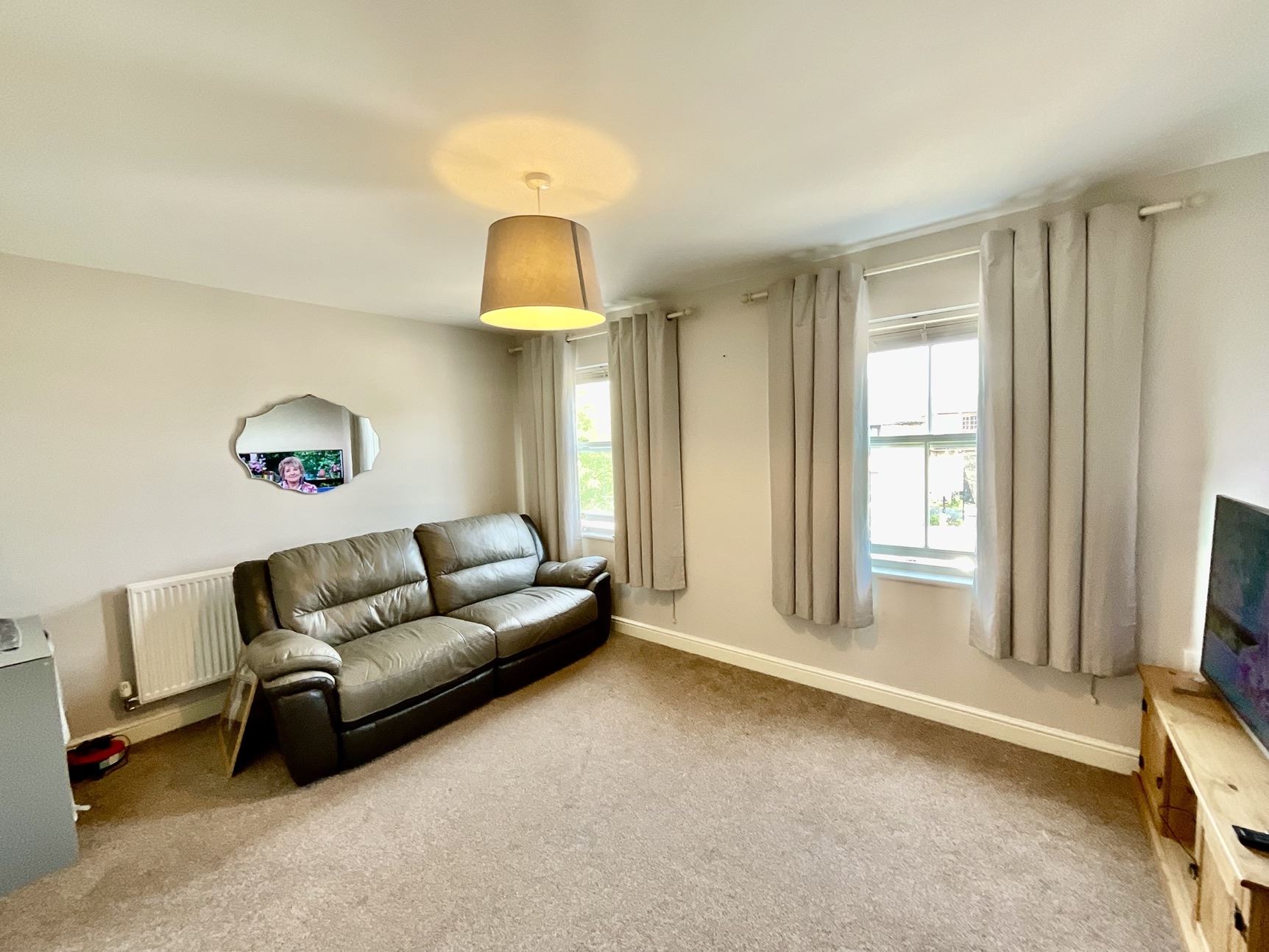 Double third room with carpet flooring, radiator and two double glazed windows.