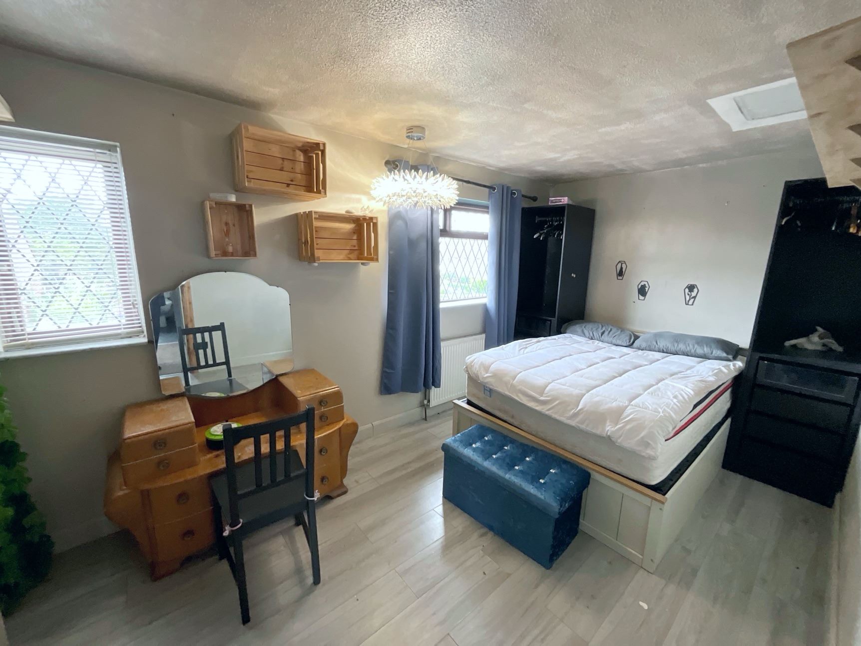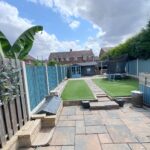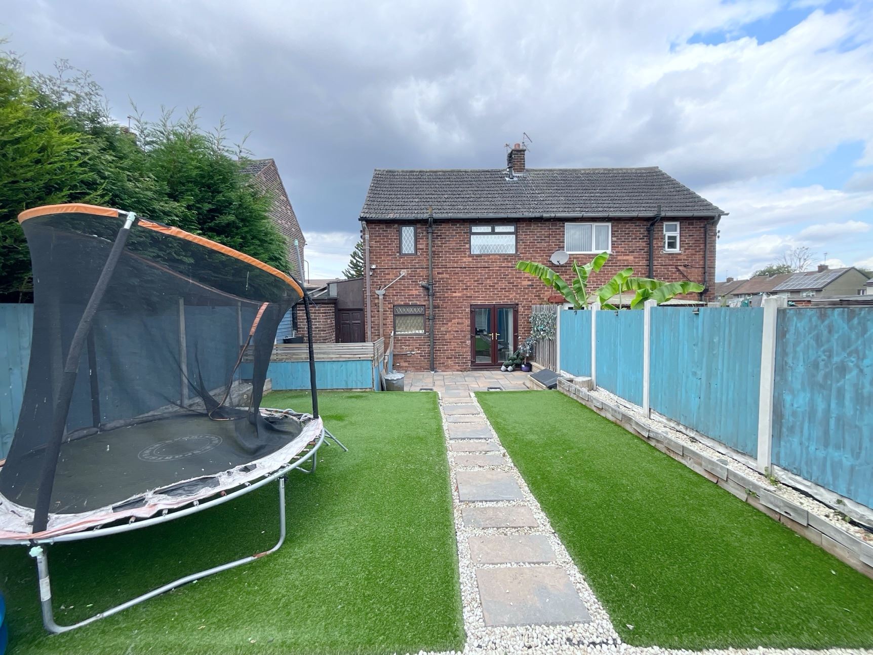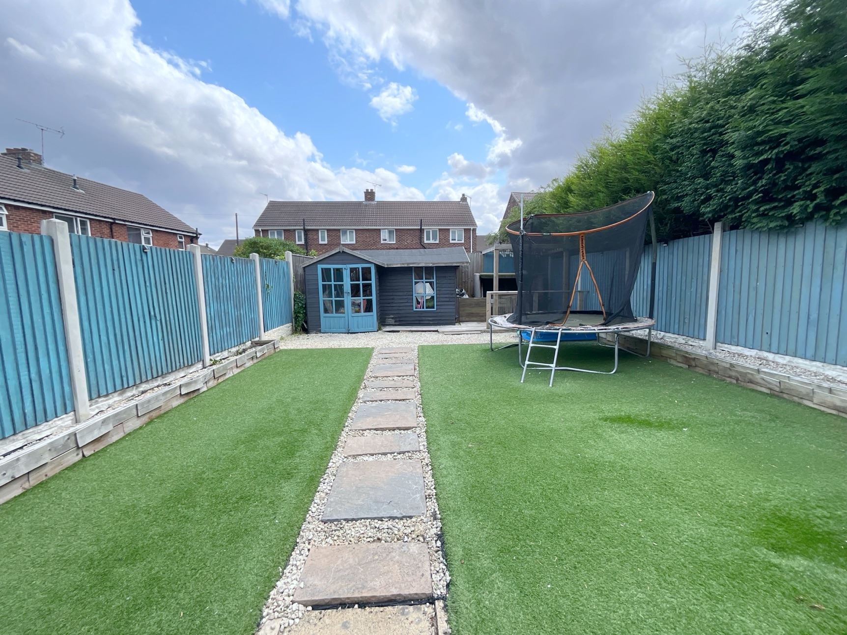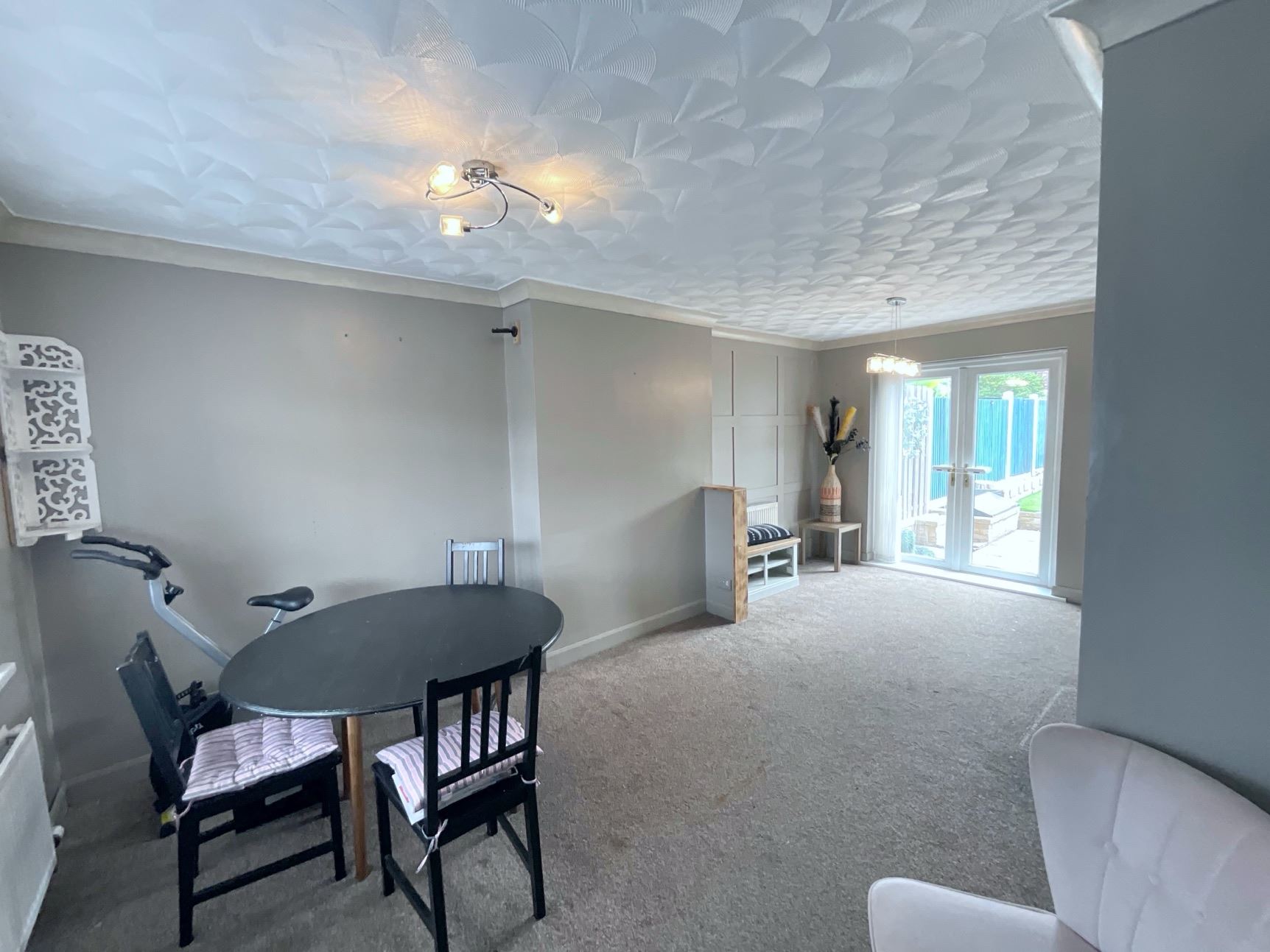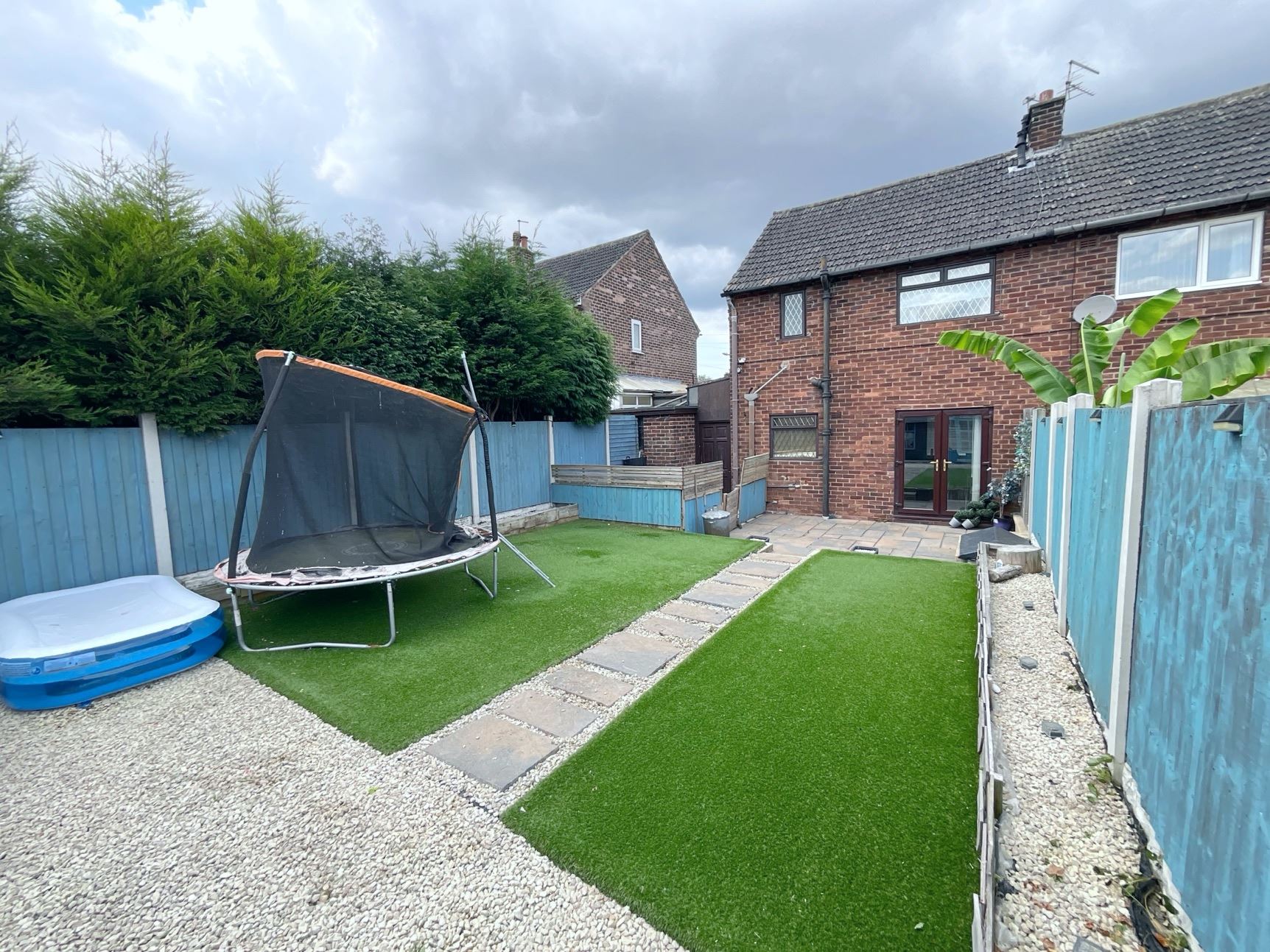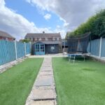 Externally, the property features a large front garden that offers scope for conversion into off-road parking, subject to the necessary consents. To the rear is a generously sized garden, predominantly laid with artificial turf and complemented by a variety of mature trees and shrubs. A patio area provides an ideal space for outdoor dining and relaxation.