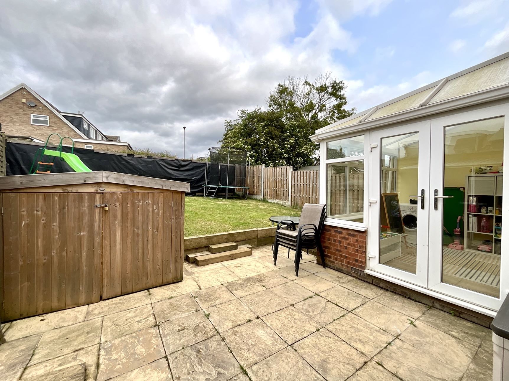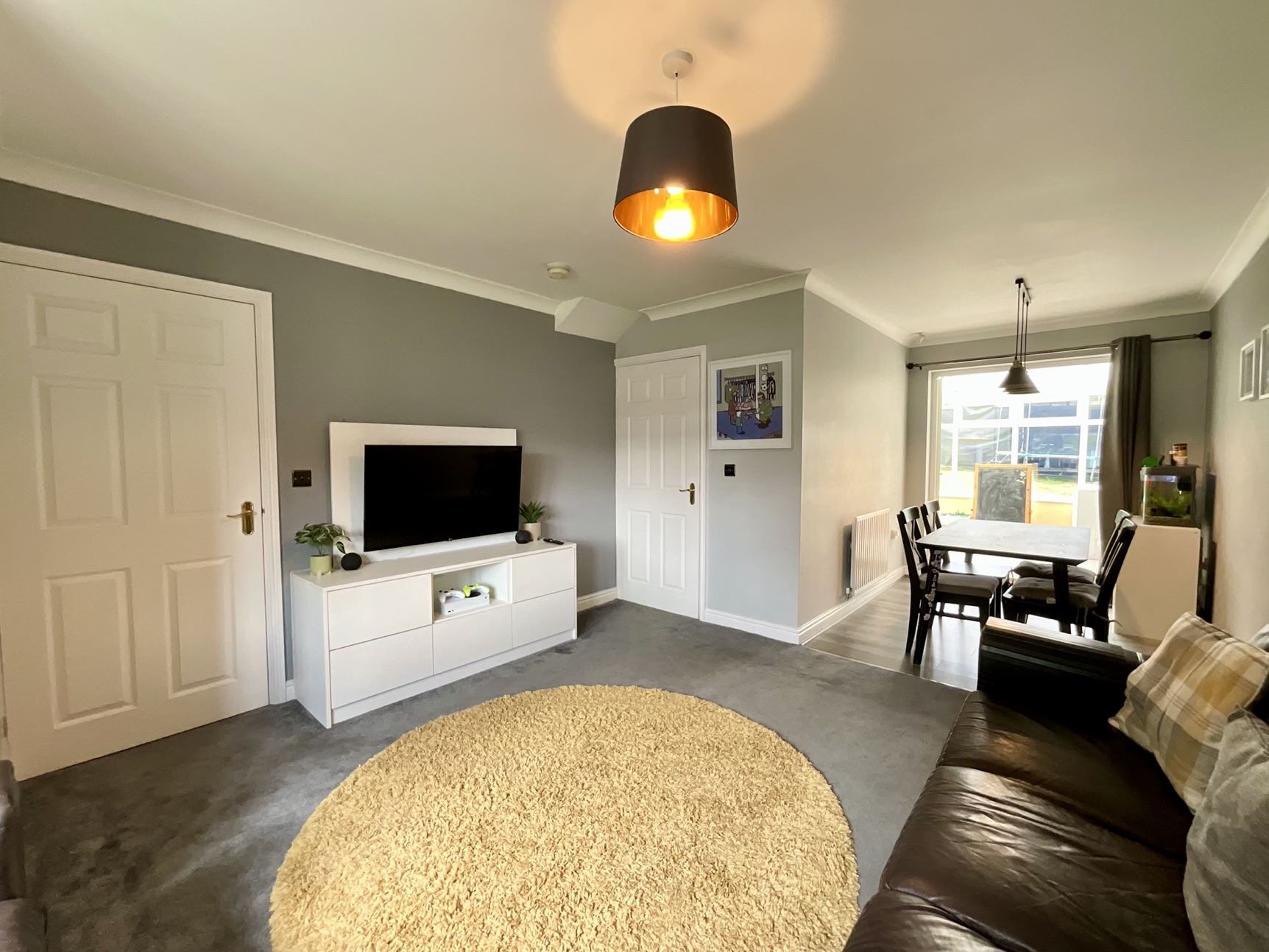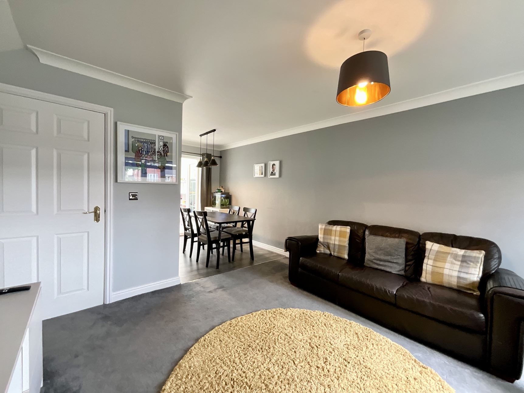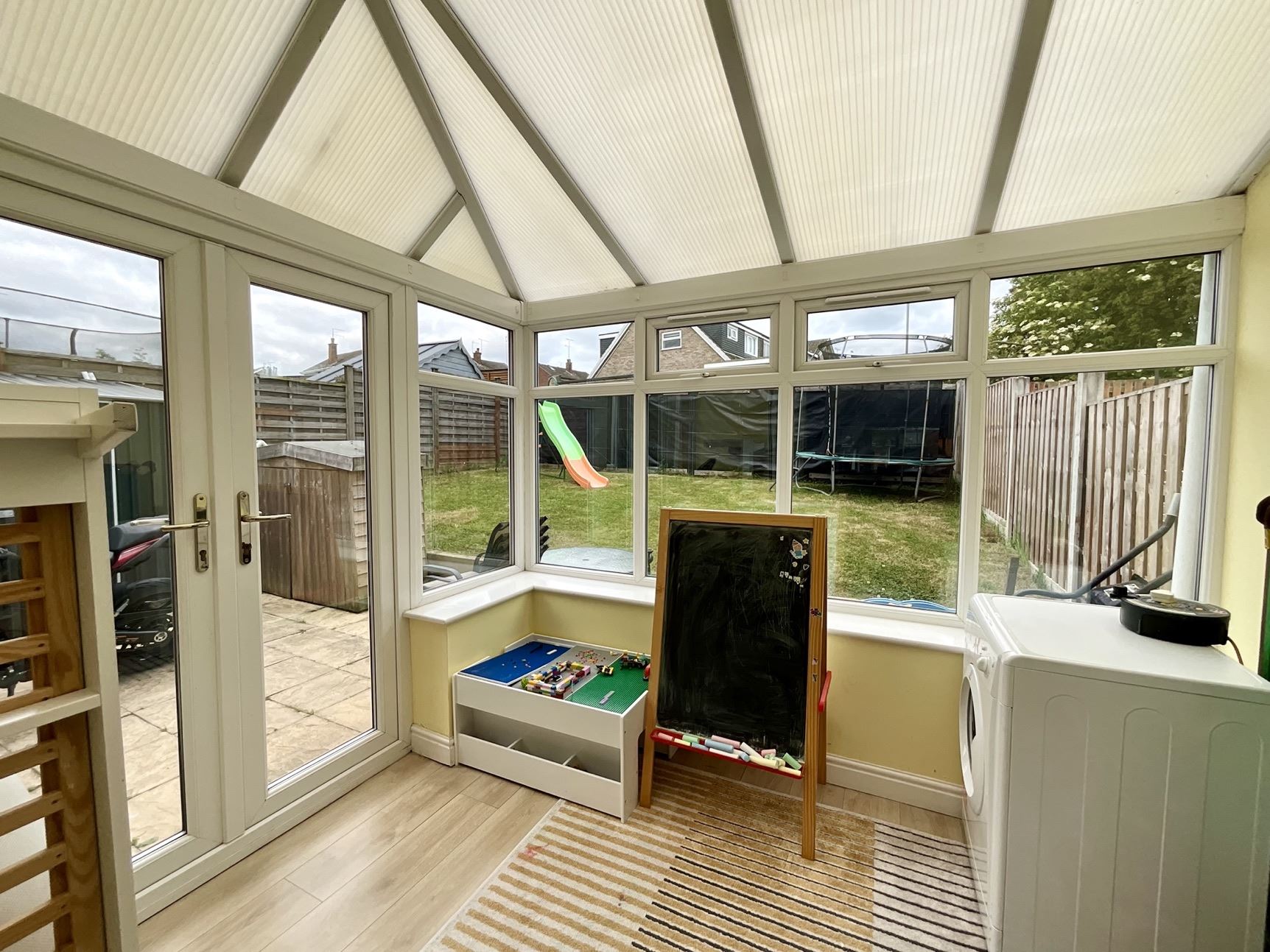 The home features a welcoming entrance hallway with stairs rising to the first-floor landing. The spacious open-plan lounge/diner enjoys a front-facing aspect and offers ample space for both relaxation and dining. French doors lead into a bright and versatile conservatory, which provides additional living space and opens onto the rear garden.