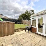 Externally, the property boasts a driveway and an adjacent lawned garden to the front, while the generous rear garden features a lawn and a patio area—perfect for outdoor entertaining with space for a table and chairs. A garage offers additional storage or parking.