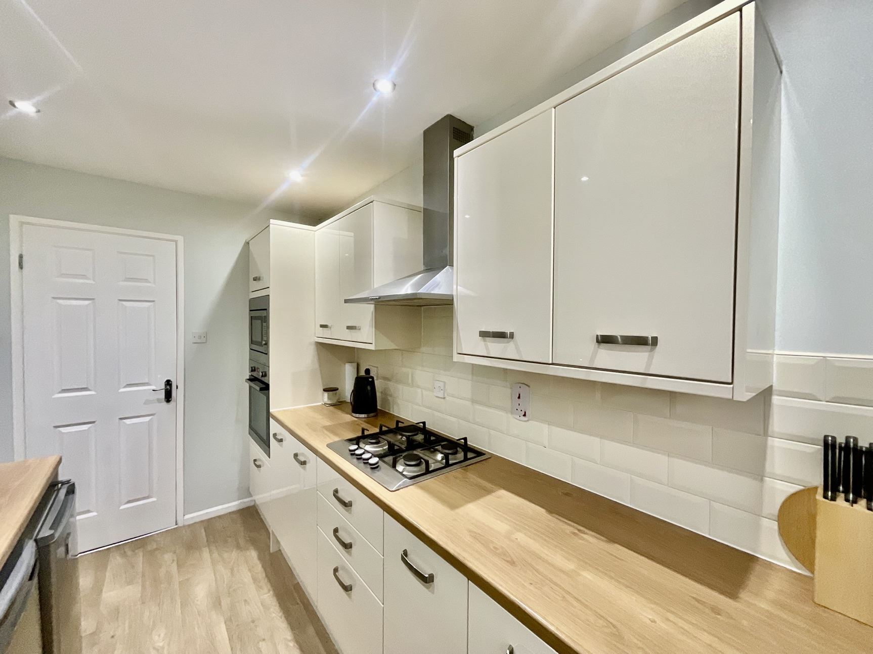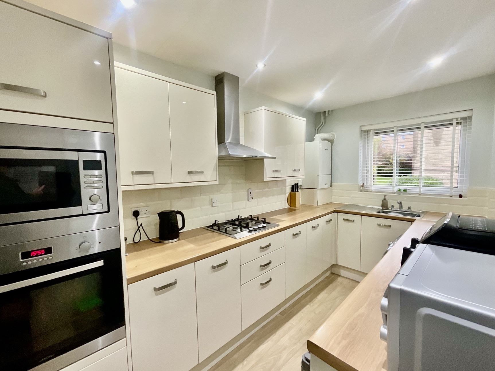 The accommodation comprises: Entrance lobby with stairs rising to the first floor. Inner hallway with multiple cloakroom storage cupboards. Modern bathroom with a bath with shower over, wash basin, W.C. Leading off the inner hallway are two generously proportioned bedrooms. The main family lounge/diner provides ample reception space, with plenty of natural light from the floor to ceiling window. Separate modern kitchen having a range of wall, drawer and base units with space for a fridge, freezer, washing machine and cooker with hob above.