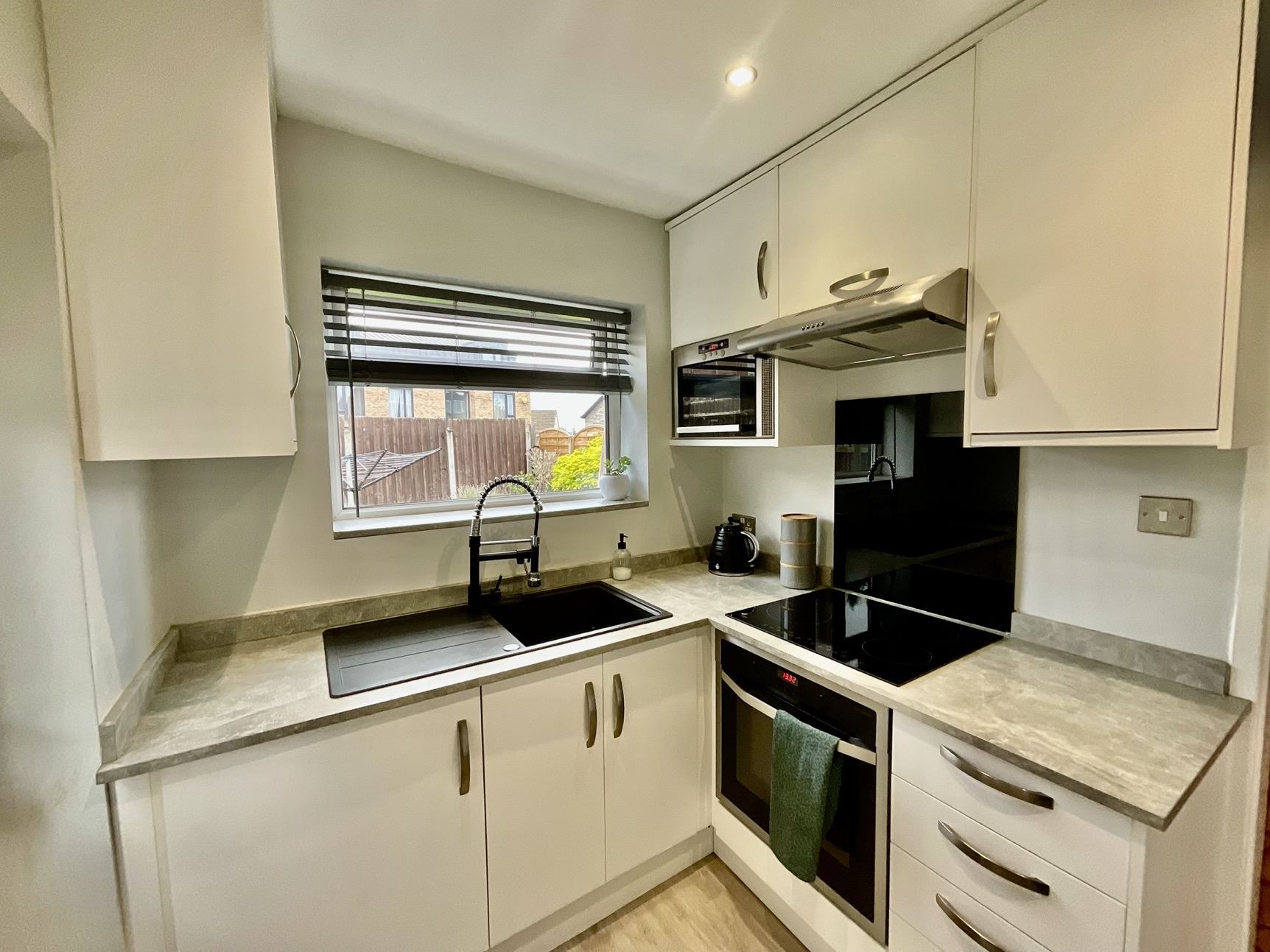 • A stunning modern kitchen with sleek finishes.