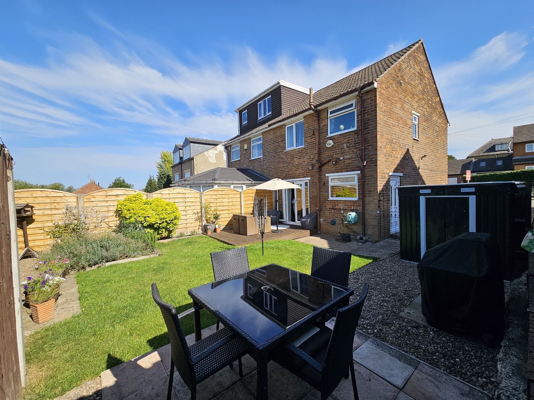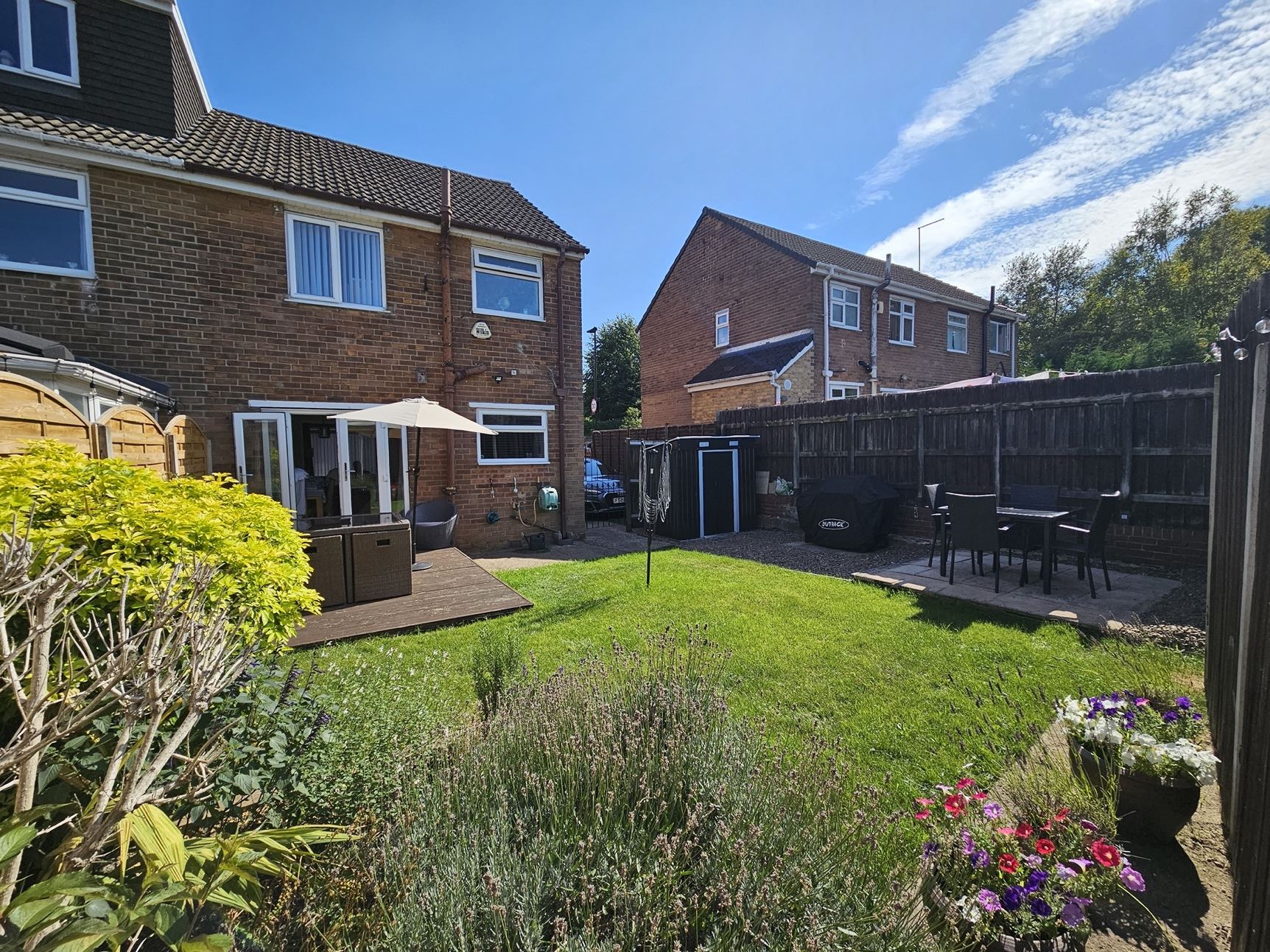 • An enclosed rear garden, mainly laid to lawn, perfect for outdoor enjoyment whilst capturing the sun.