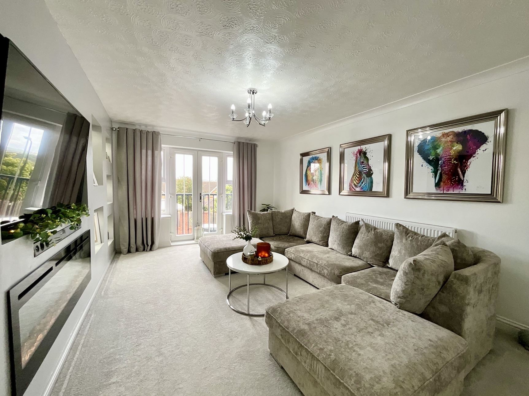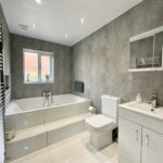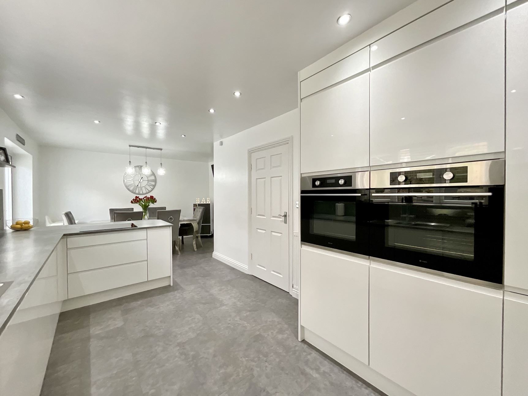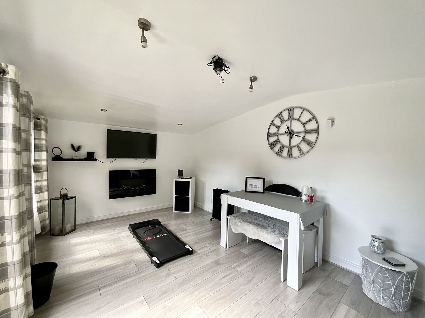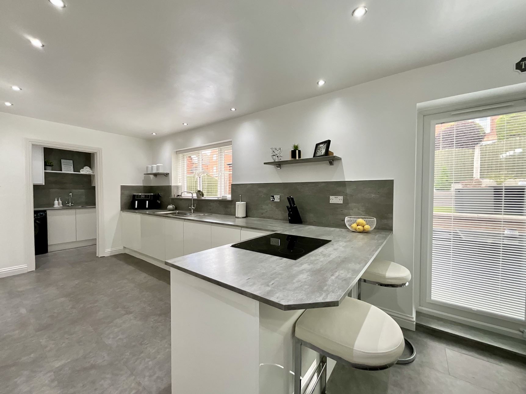 The ground floor features a beautifully presented lounge with an impressive media wall, a striking contemporary kitchen/diner perfect for family life and entertaining, a useful utility room, and a stylish downstairs WC. Across the three floors, the property offers five generously sized bedrooms and three bath/shower rooms, providing ample space for growing families or those seeking a home with adaptable living arrangements.