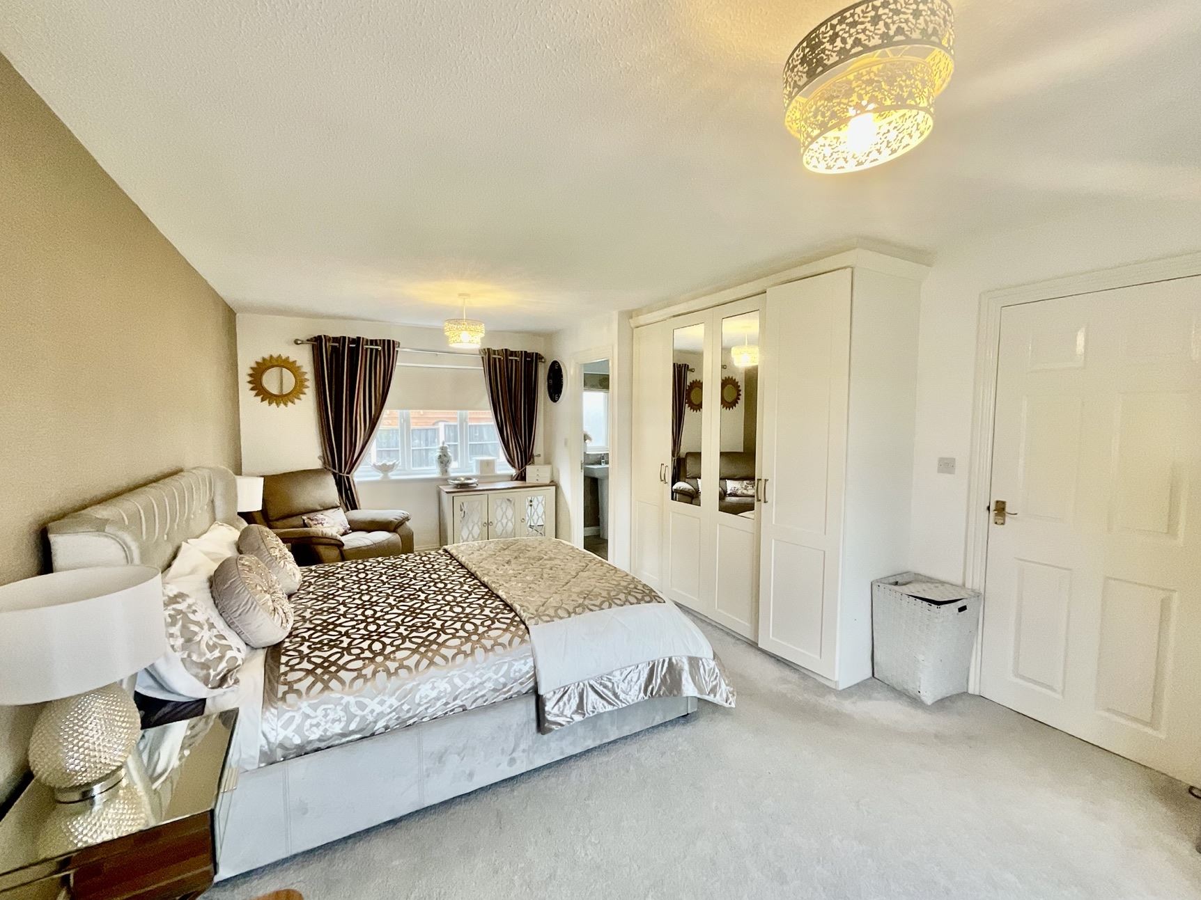 To the front of the property is a small lawned garden and double driveway leading to the double integral garage.