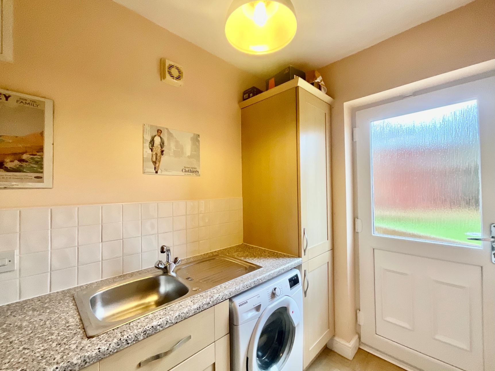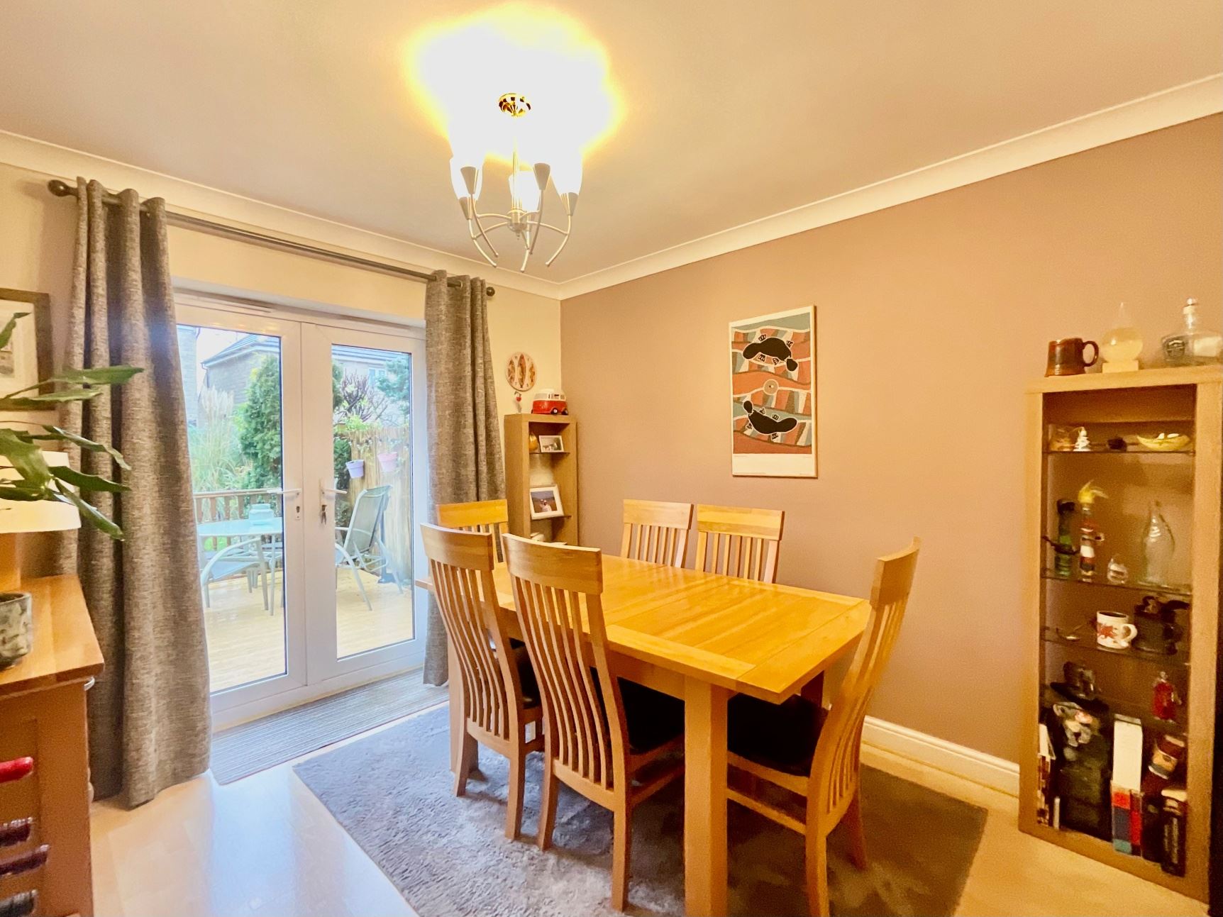 Upon entering, into a welcoming hallway with downstairs WC and stairs lead up to the first floor. The ground floor features a beautiful lounge with a feature fireplace, creating a cosy yet airy feel. French doors open up into the separate dining room with further doors onto the enclosed rear garden. The kitchen with a good range of base and wall units with additional utility room.
