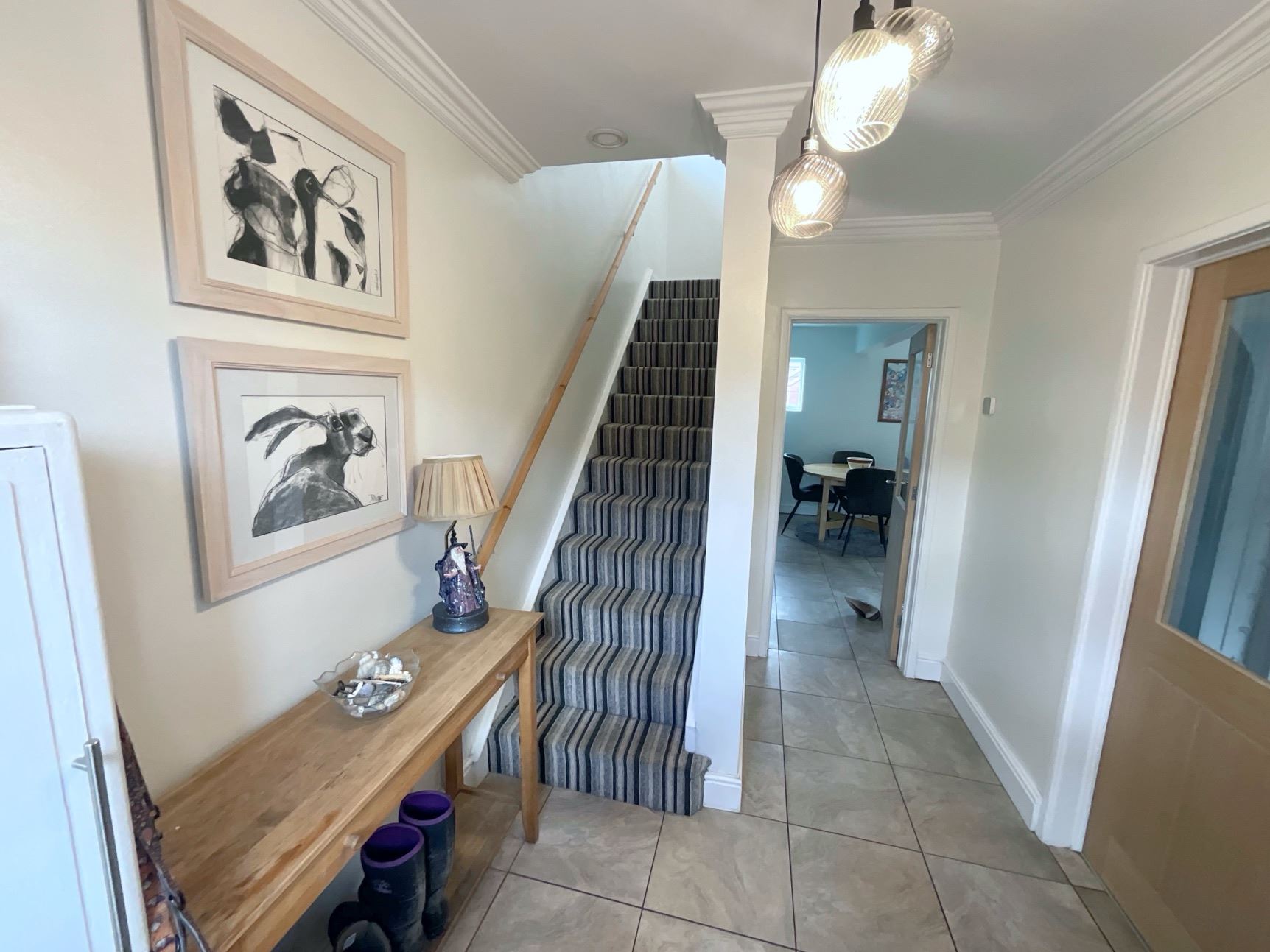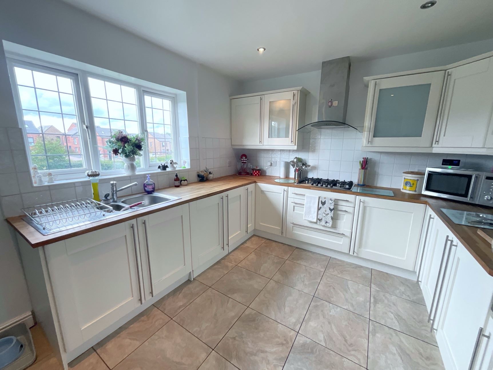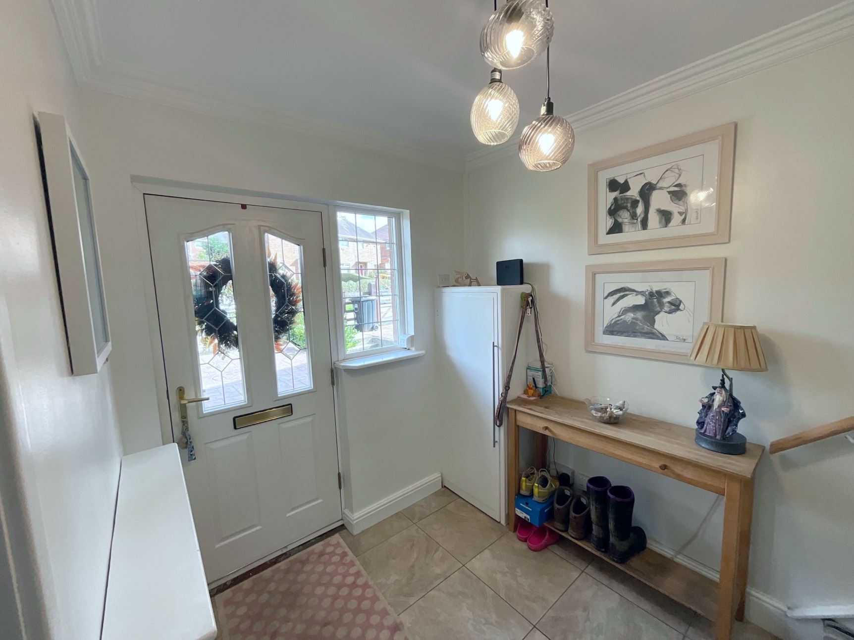 The spacious accommodation briefly comprises: welcoming entrance hallway, modern breakfast kitchen with built in appliances, useful side entrance lobby, downstairs WC, utility/store room, generously sized lounge, three well-proportioned bedrooms, and a stylish family shower room. Externally, the property enjoys well-tended front and rear gardens, offering excellent outdoor space for families and entertaining.