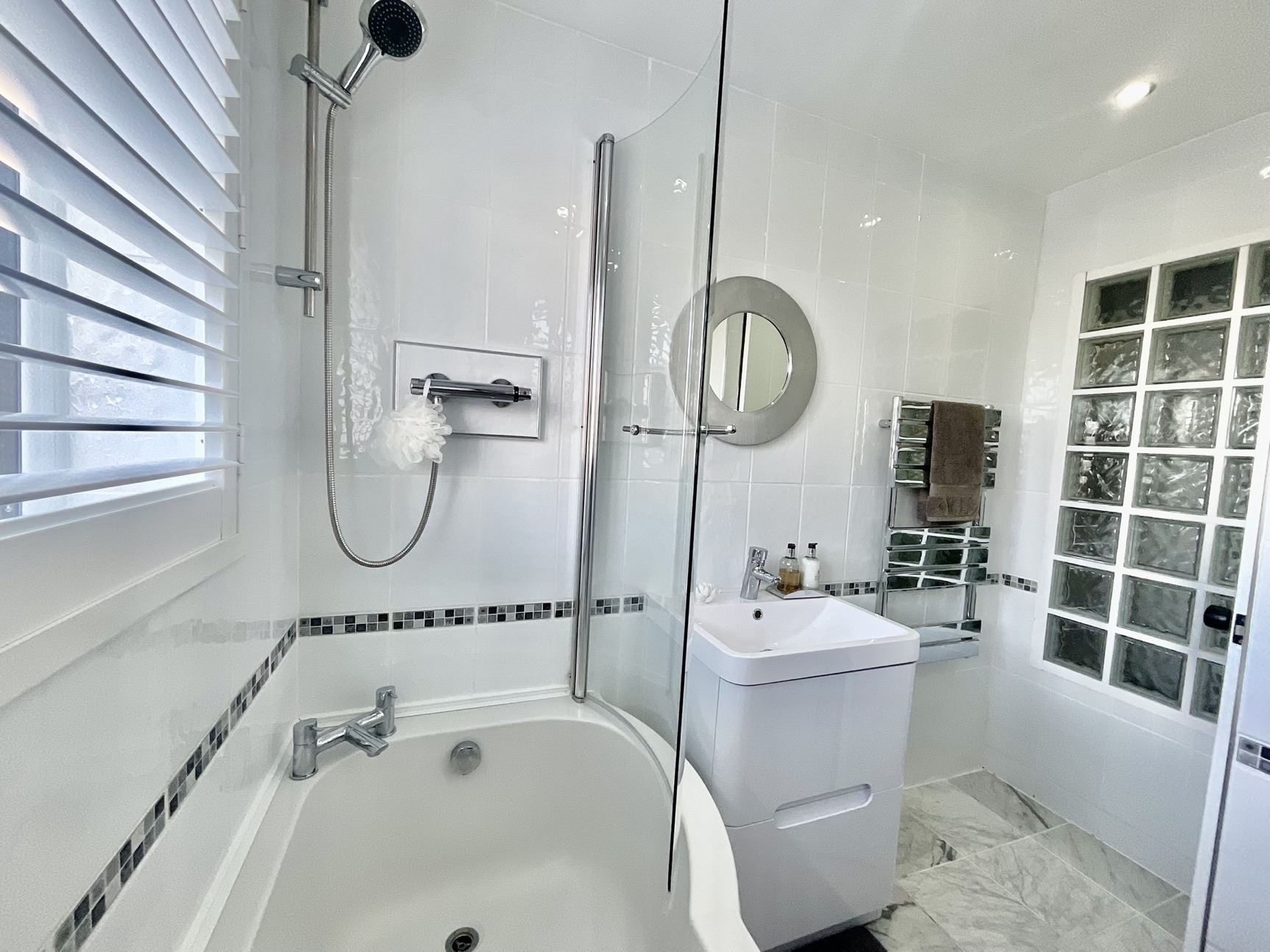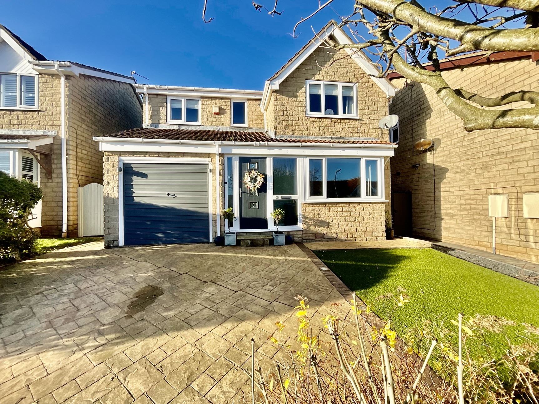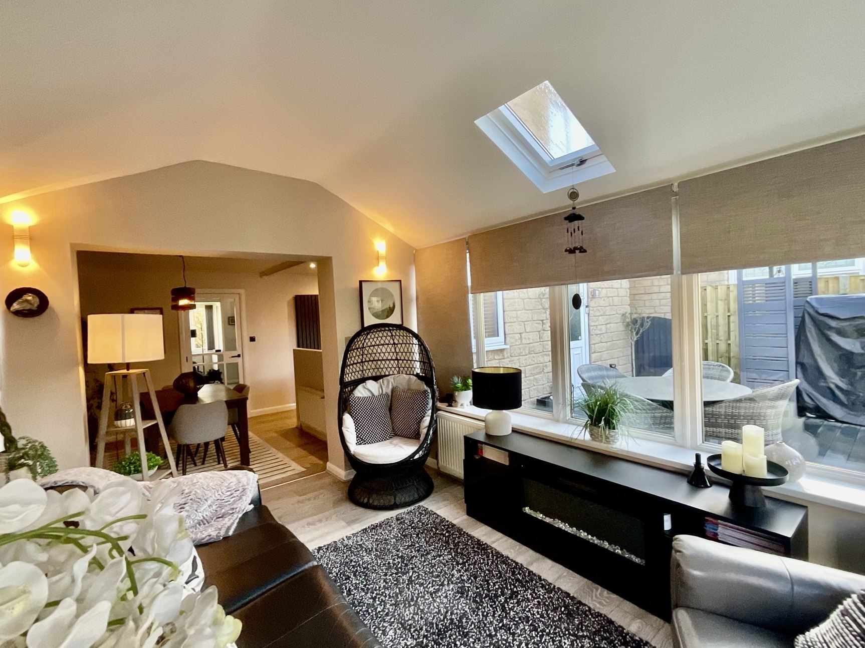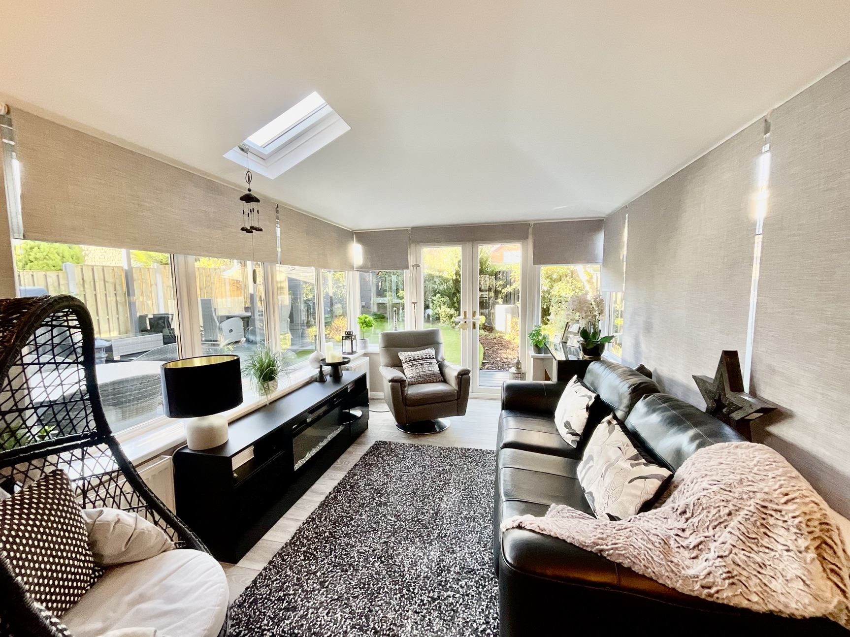 The property is situated on a large plot with a generous sized lawn to the front, a driveway and garage. Path to the good sized enclosed rear garden which has an artificial lawn, composite decking, pergola and timber shed