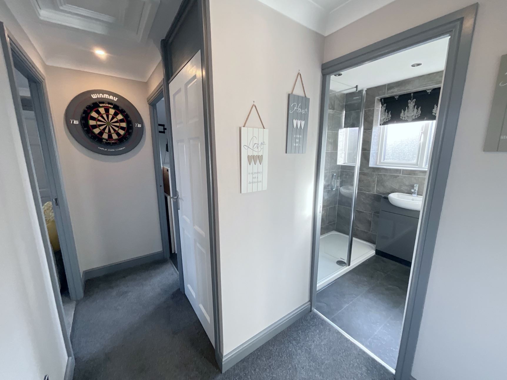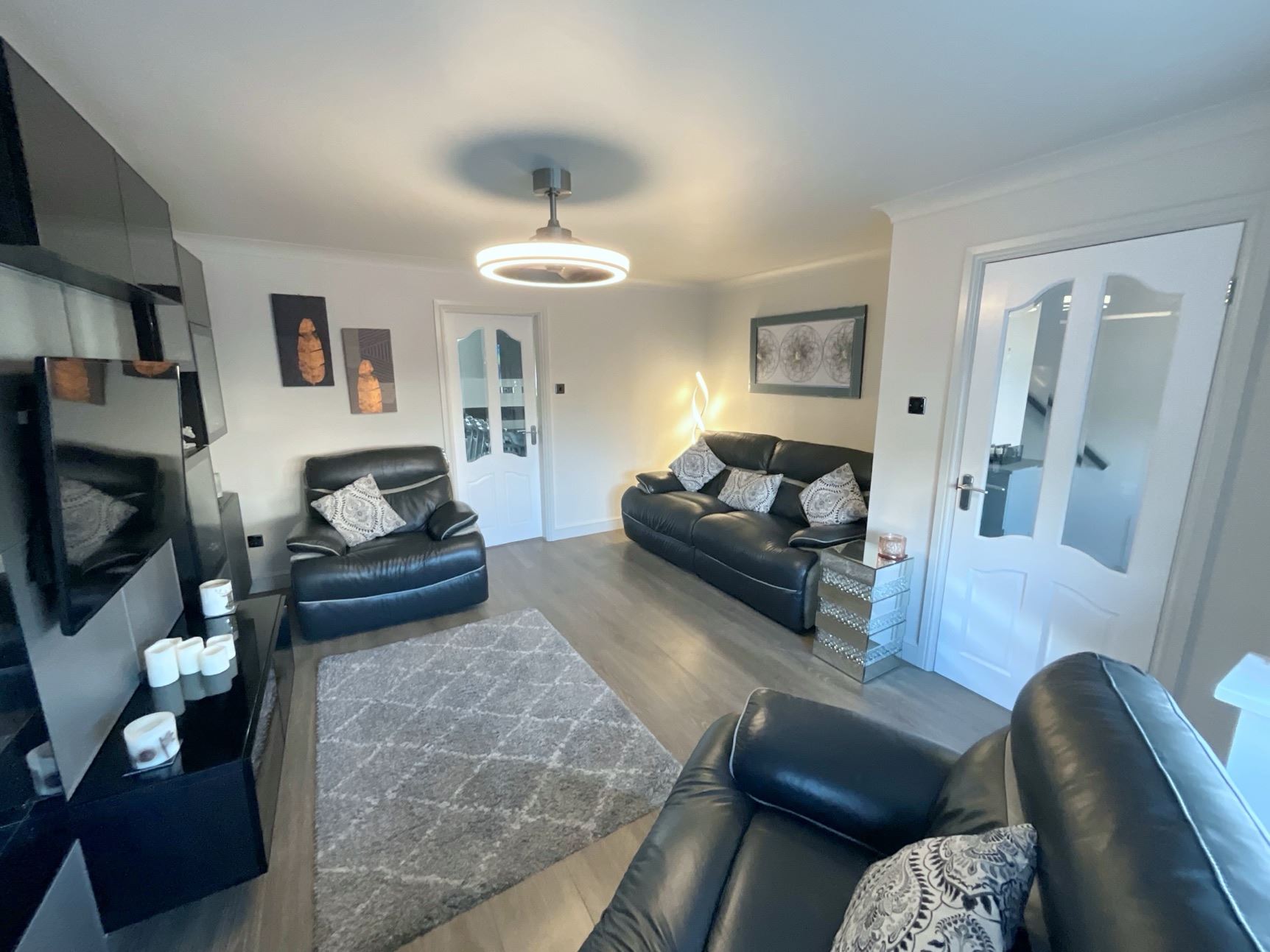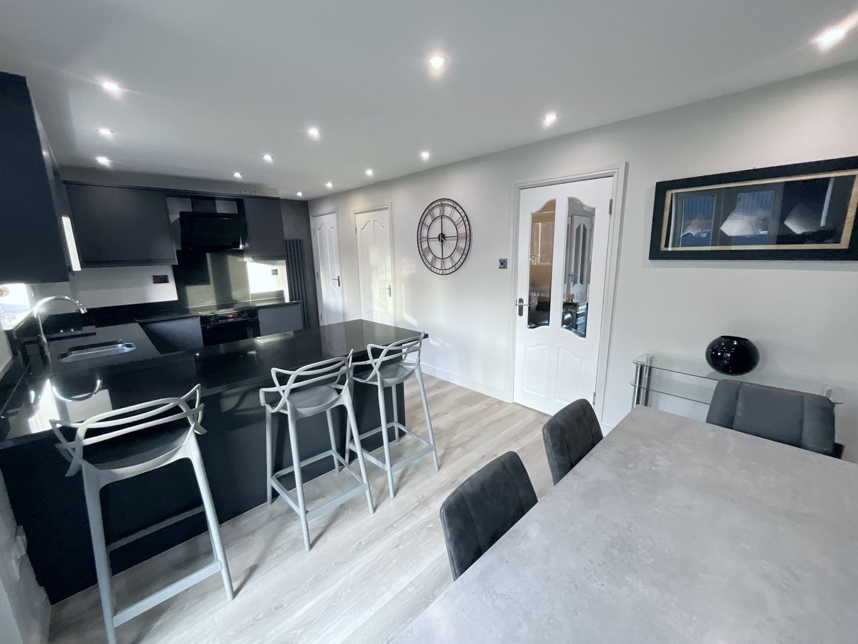 The elegant lounge provides a warm and inviting space to relax, while the contemporary high-gloss kitchen truly steals the show — sleek, stylish and complete with integrated appliances, it's perfect for everyday living and entertaining alike. A practical utility room and convenient downstairs W/C complete the well-planned ground floor.