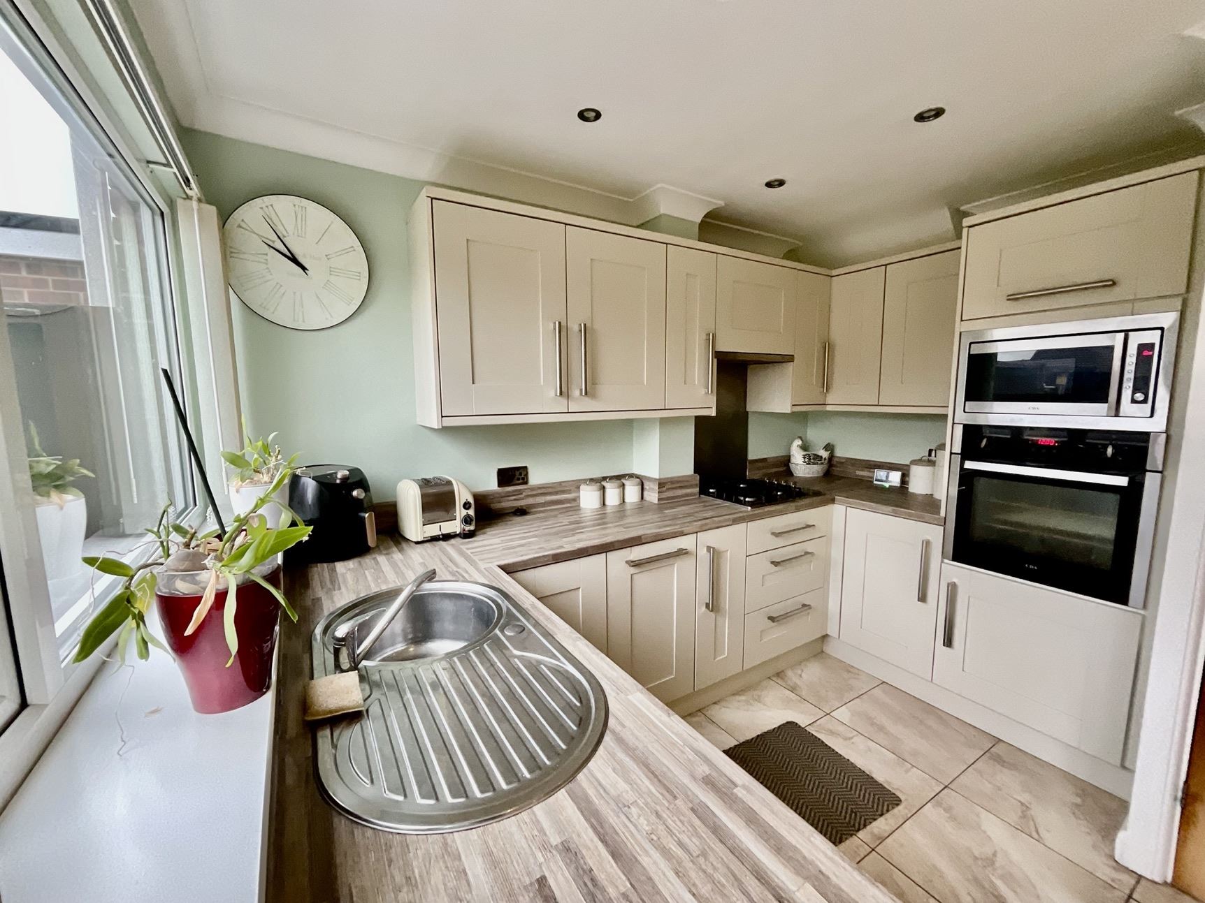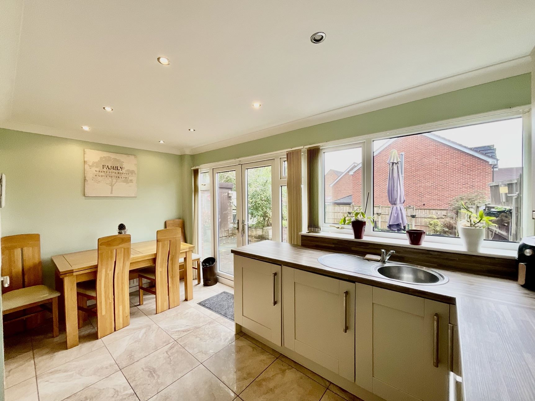 Upstairs, three generously sized bedrooms provide plenty of space for a growing family, with fitted wardrobes to two bedrooms. A stylish family bathroom with a three-piece suite completes the first-floor accommodation.