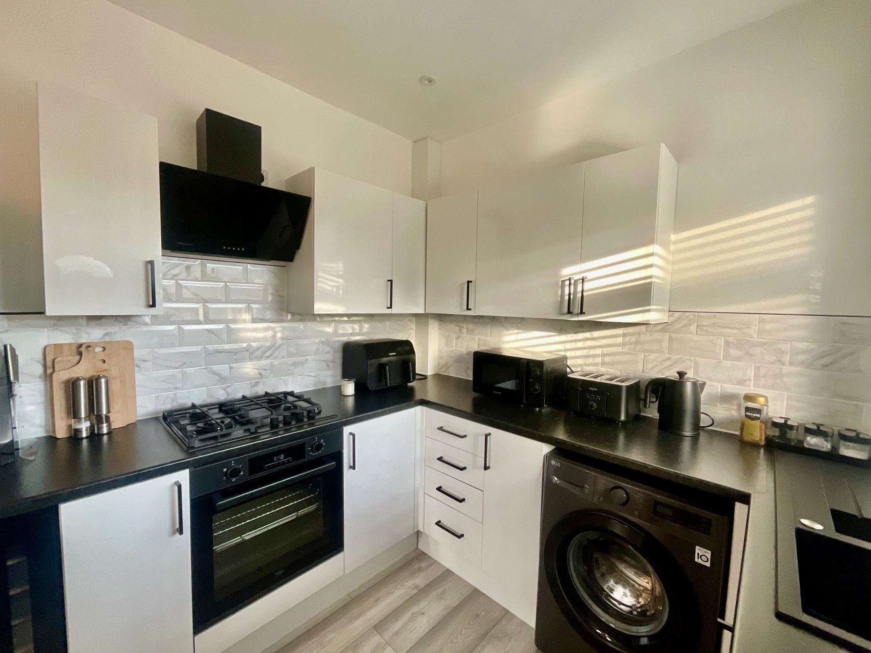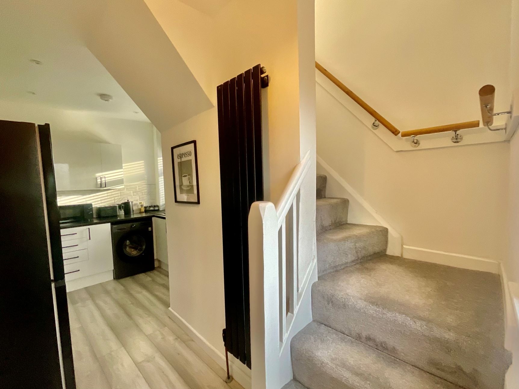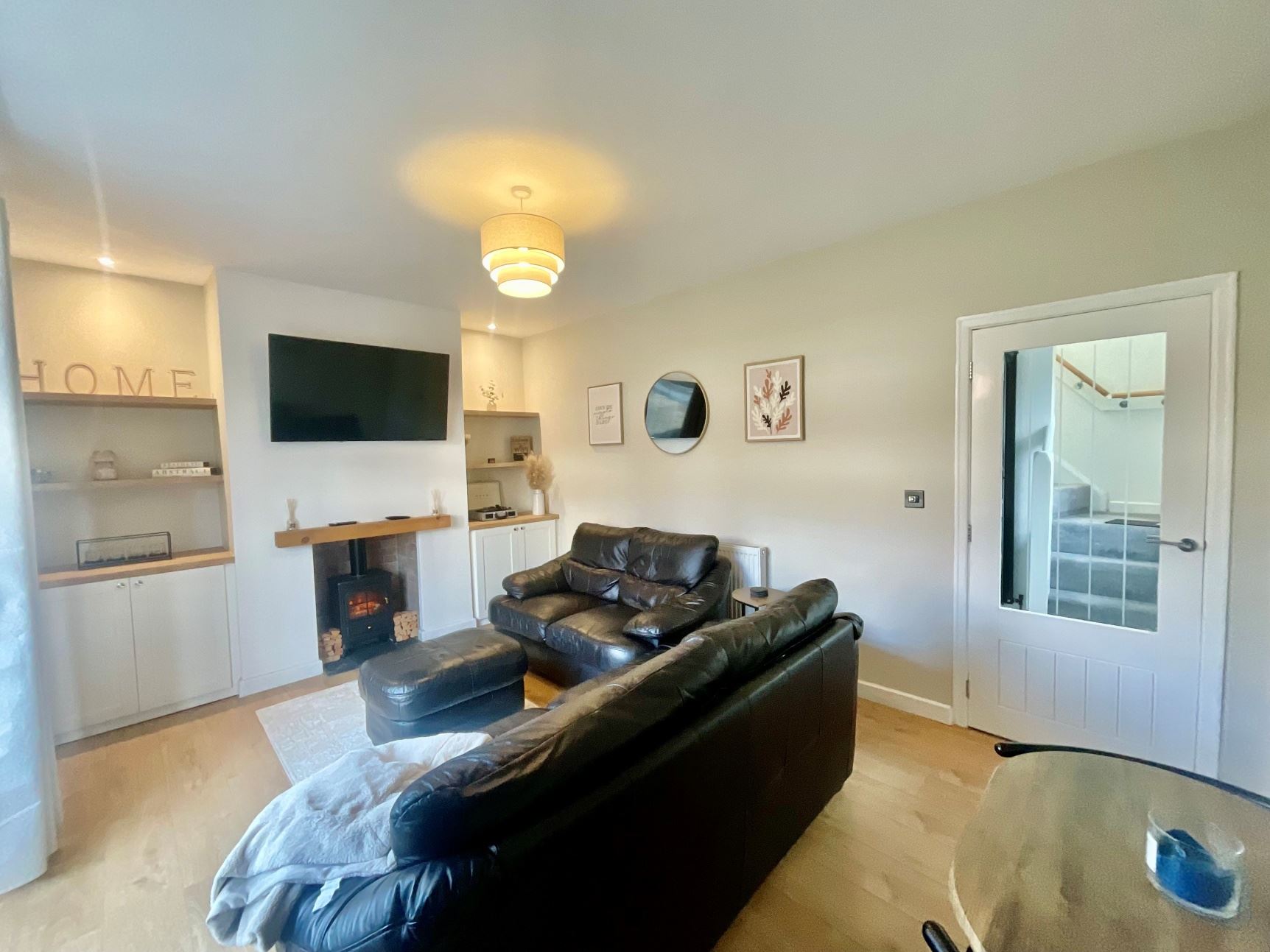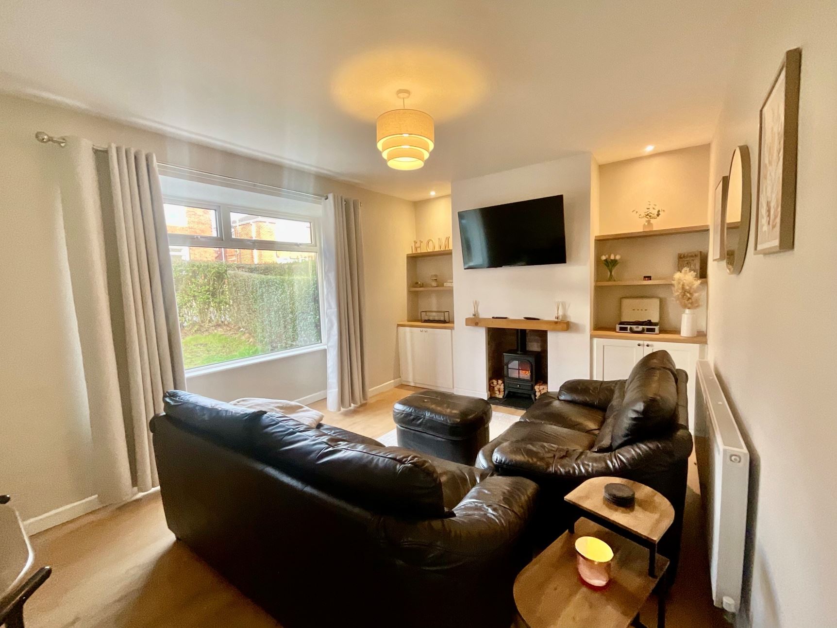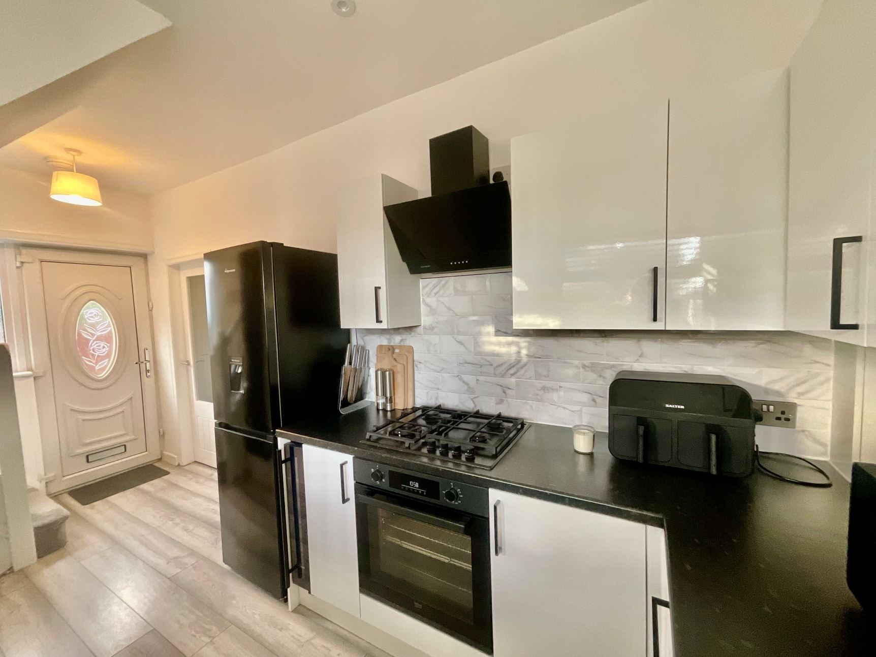 A side uPVC door opens into the newly fitted kitchen with stairs rising to the first floor landing. Kitchen with a range of wall and base cabinets, complementing work surfaces incorporating a four point hob and inbuilt oven; back door opening onto the rear garden. Beautiful lounge with bay window and feature fireplace.