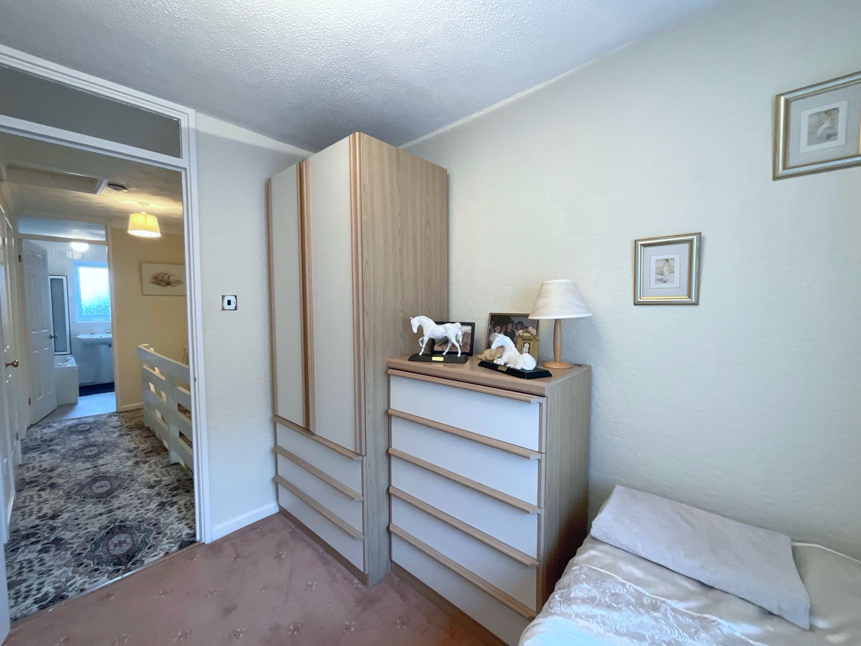 To the first floor, the property offers a generous master bedroom with built-in wardrobes, providing excellent storage and comfortable space for a double bed. Bedroom two, also featuring built-in wardrobes, offers similar versatility and floorspace. The third bedroom is a well-proportioned room, ideal for a child's bedroom, home office, or guest accommodation. All bedrooms enjoy access to a well-presented family bathroom.