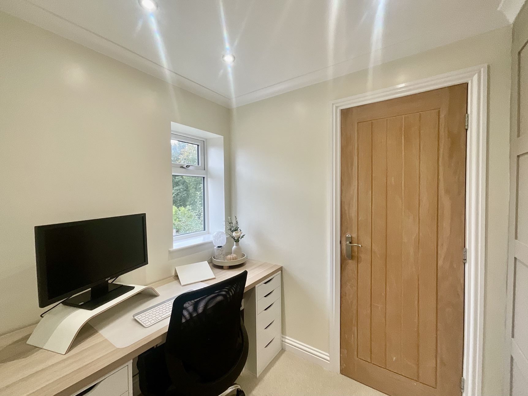 To the first floor landing are three bedrooms, the master having substantial built in wardrobes. A family bathroom and a fantastic office space again with built in storage.