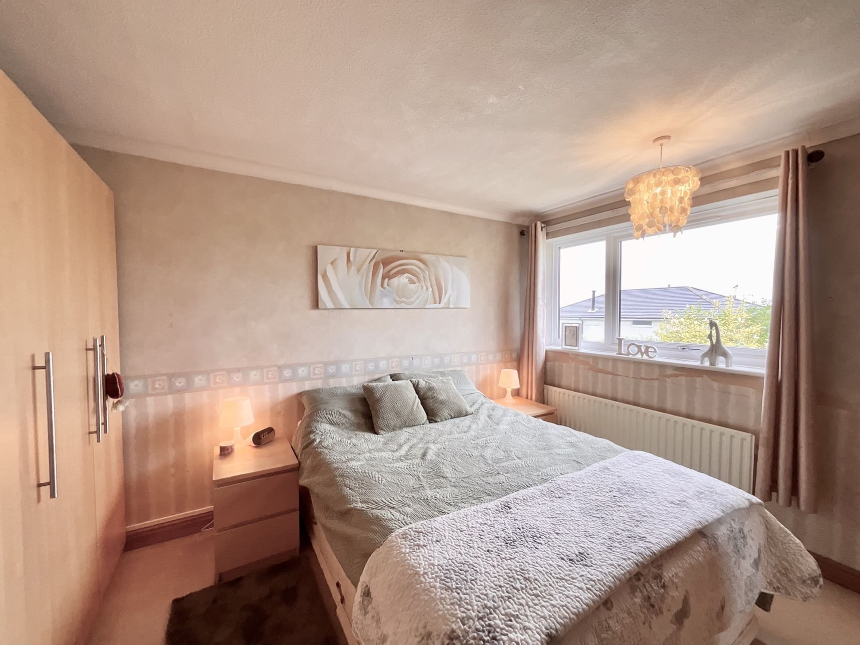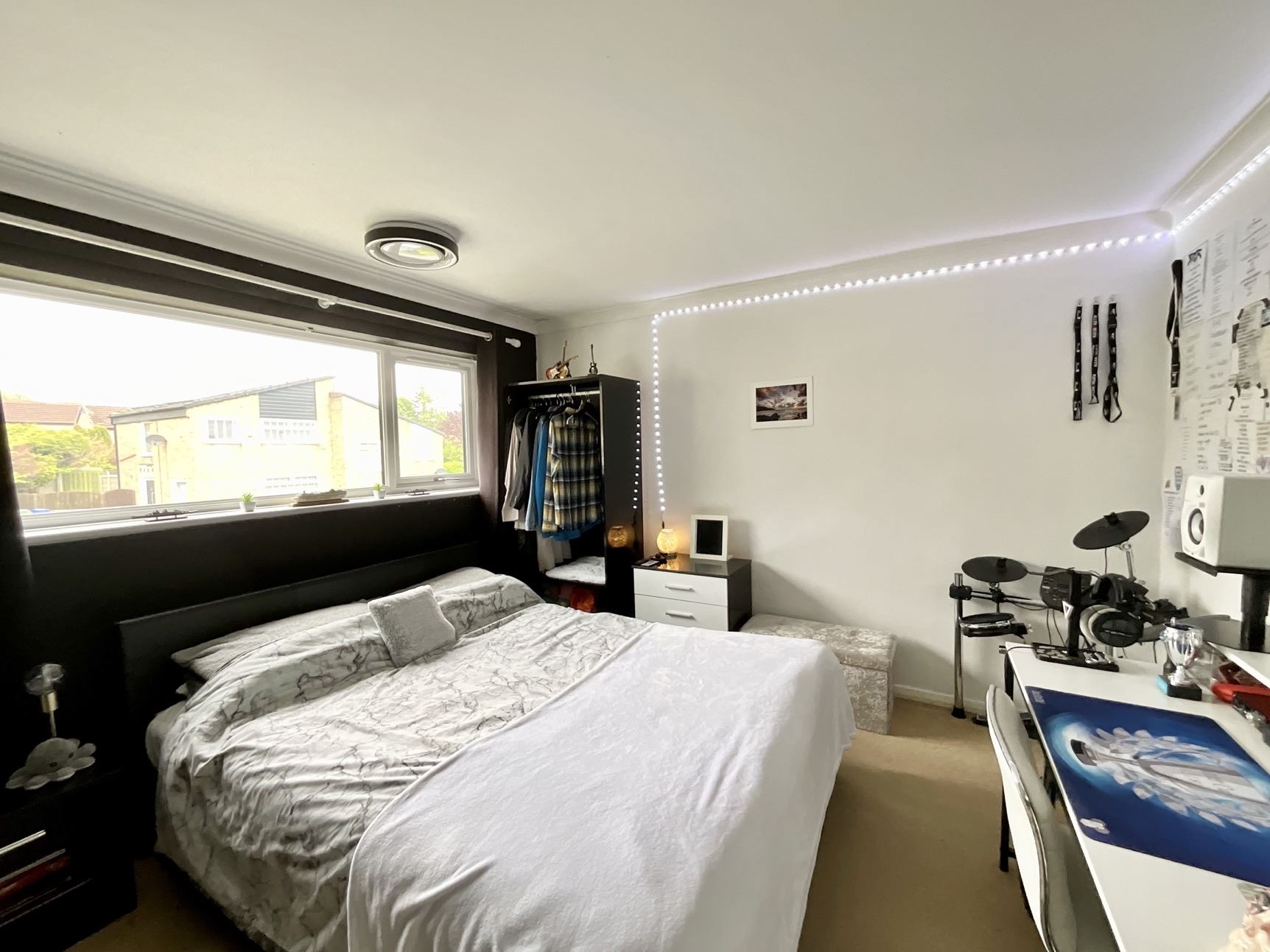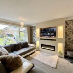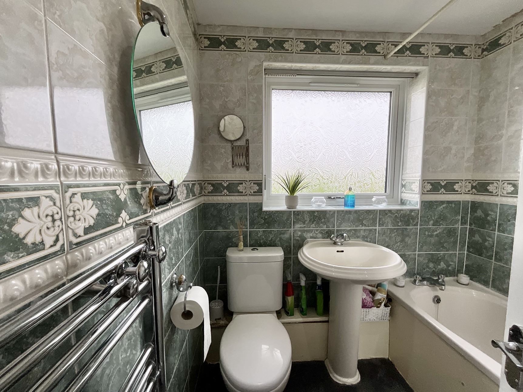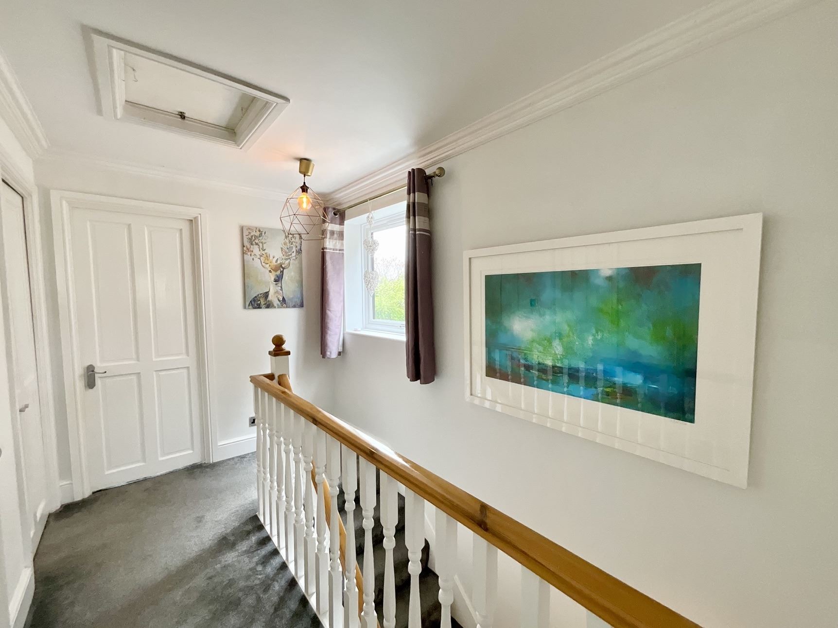 The welcoming front porch leading into a hallway with staircase rising to the first floor landing. The lounge/dining room is a standout feature, boasting contemporary décor and a media wall, double aspect, complemented by patio doors opening onto the rear garden. The kitchen with a range of wall and base cabinets together with contrasting work surfaces. The inclusion of a playroom and downstairs WC adds convenience and versatility to the living space. Upstairs, three bedrooms and a family bathroom offer comfortable accommodation. Outside, the property impresses with a driveway, front garden with mature trees for privacy, and an enclosed rear garden featuring a summerhouse and artificial lawn. Overall, this property promises both style and practicality, making it an attractive prospect for potential buyers.