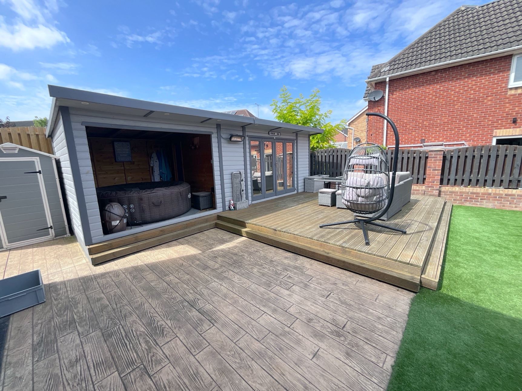 Step outside to discover a private, landscaped rear garden—your very own tranquil retreat. Whether you're enjoying a morning coffee, hosting summer barbecues, or simply unwinding after a busy day, this garden has something for everyone. It even features a charming garden room with electricity and an eco-friendly outdoor toilet, adding a unique and practical touch for year-round use.
