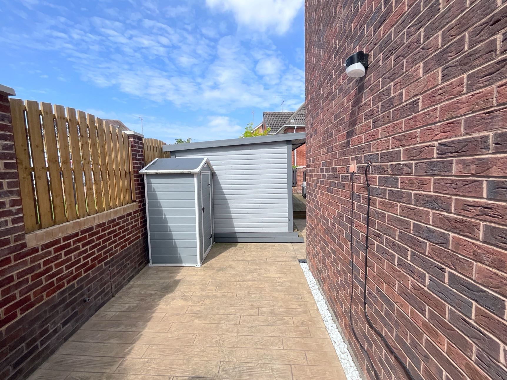 To the front, a block-paved driveway offers ample off-road parking with integral garage with remote controlled electric roller shutter door.