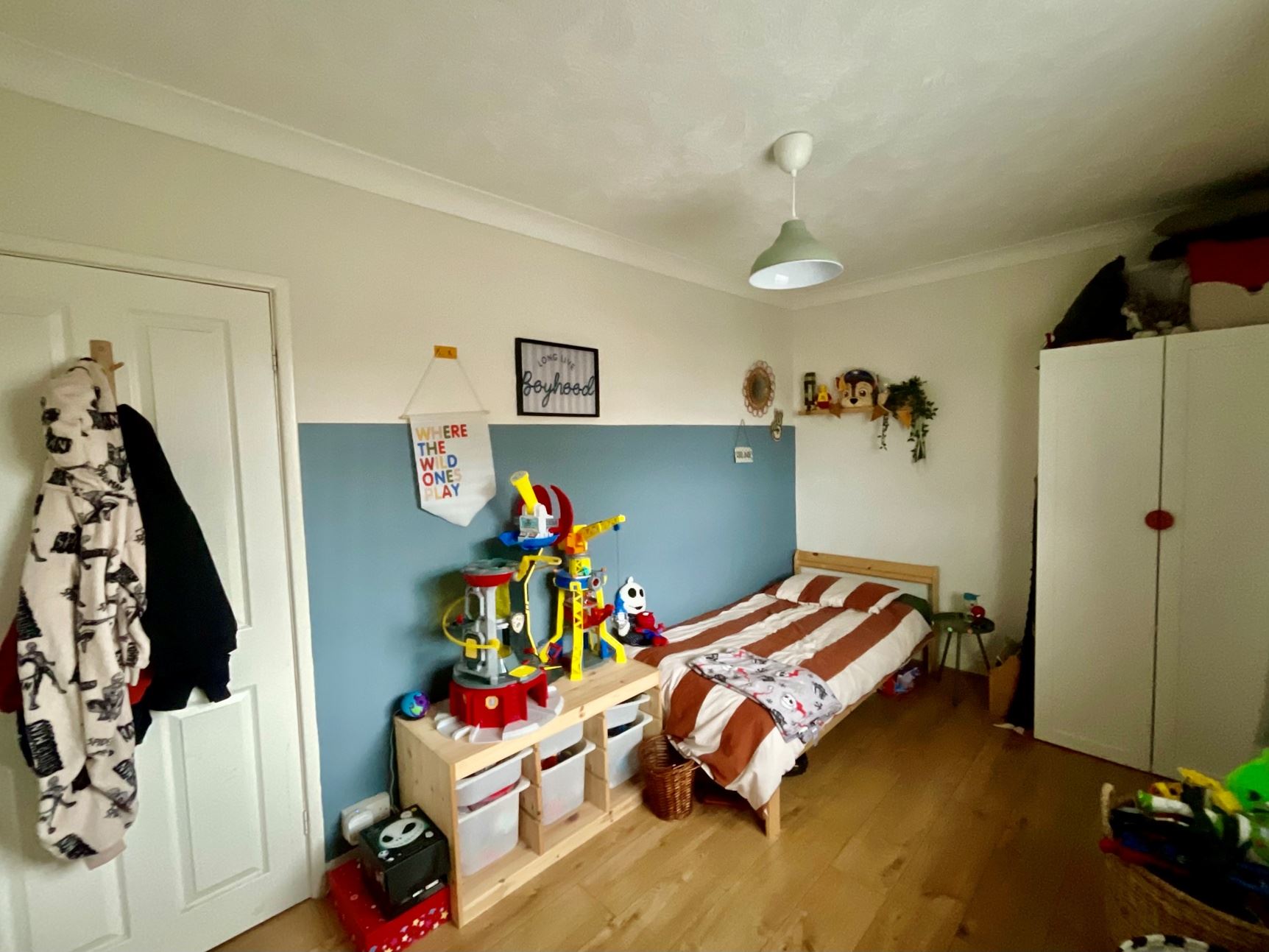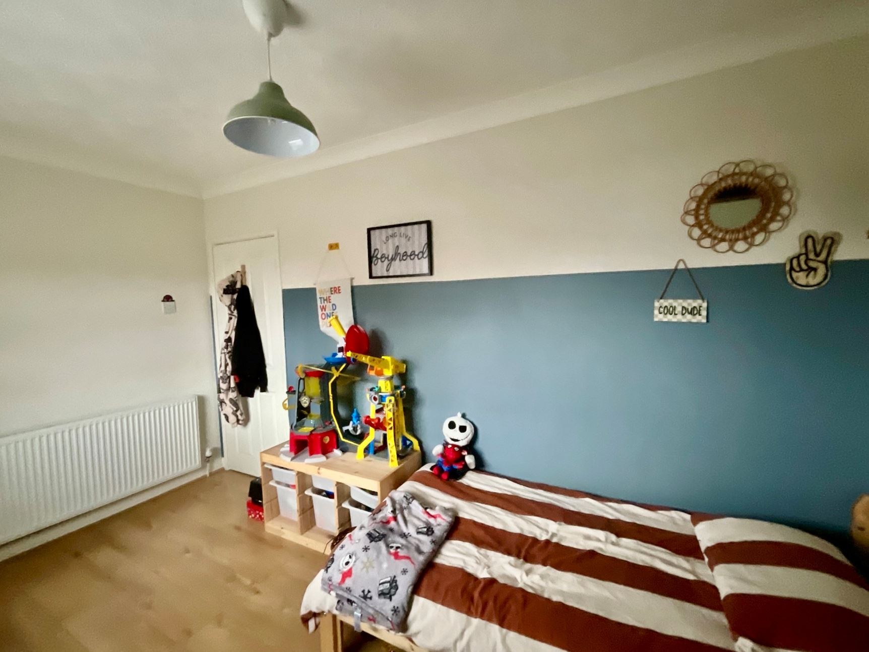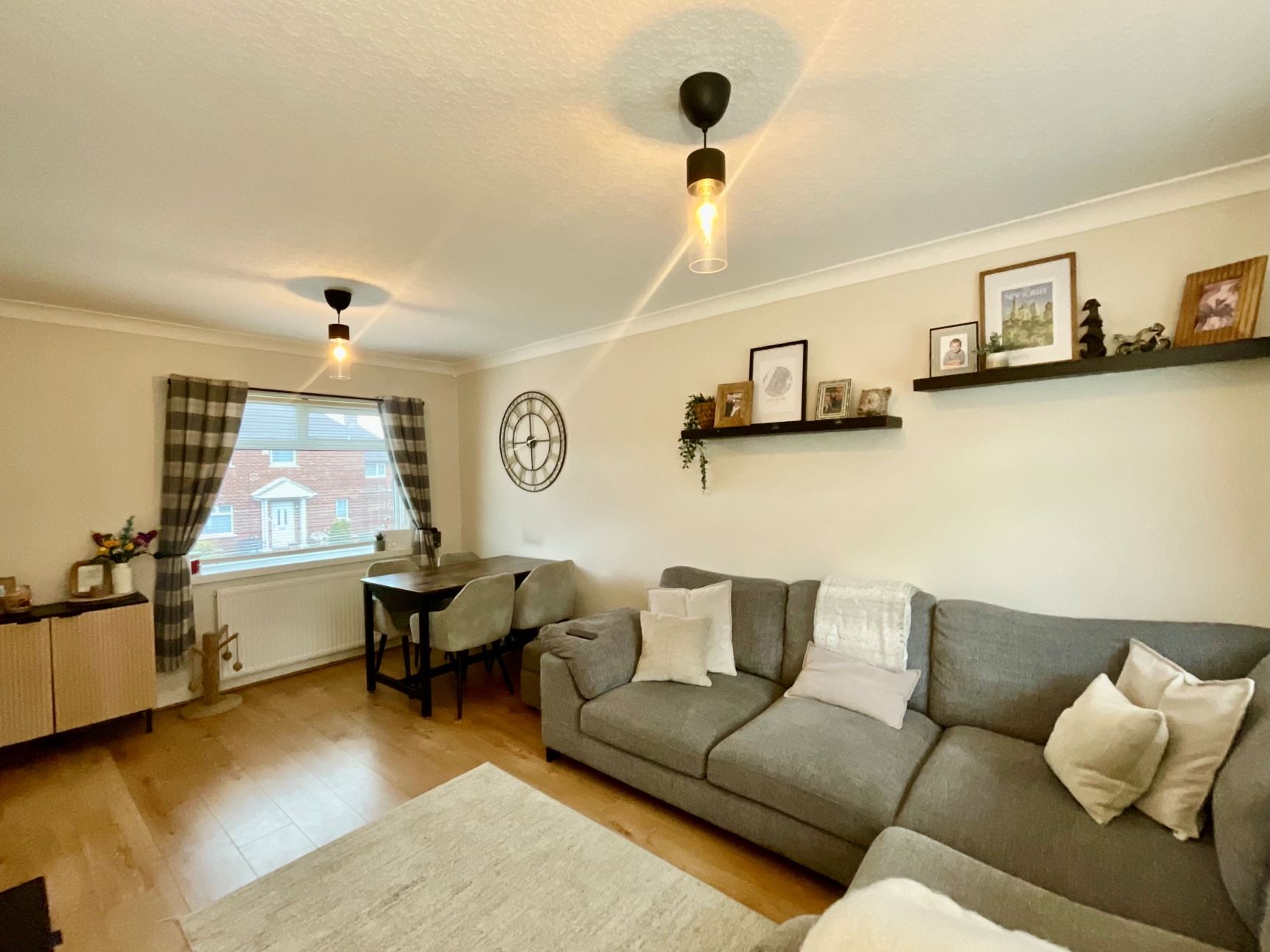 Upstairs, the property comprises of two generous bedrooms (with bedroom 2 having the additional benefit of built-in storage), a storage cupboard and a family bathroom featuring a three-piece suite.