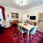 This exceptional four-bedroom semi-detached residence boasts a welcoming front entrance hall, two elegant reception rooms, including a spacious living room and a formal dining room that seamlessly connects to the breakfast kitchen. The kitchen is outfitted with integrated appliances set within a range of fitted base, wall, and drawer units, featuring contrasting work surfaces and a cozy breakfast seating area. A door from the kitchen opens to the expansive cellar area.