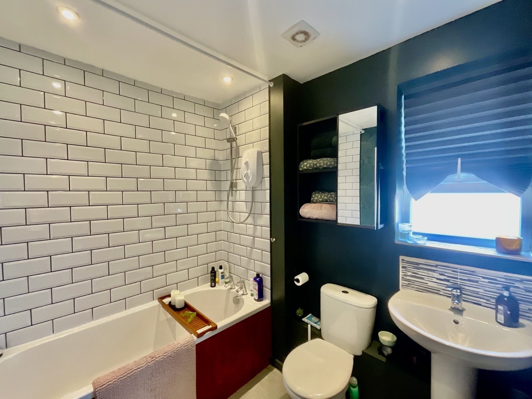 There are two generously sized double bedrooms, with the master bedroom benefitting from a modern en-suite shower room. The main bathroom features a contemporary white suite comprising a bath with shower over, wash hand basin, and low flush WC.