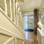 The first-floor landing leads to four generously sized double bedrooms, each featuring fitted wardrobes. The master bedroom includes an en-suite shower room, while a modern family bathroom serves the remaining bedrooms.