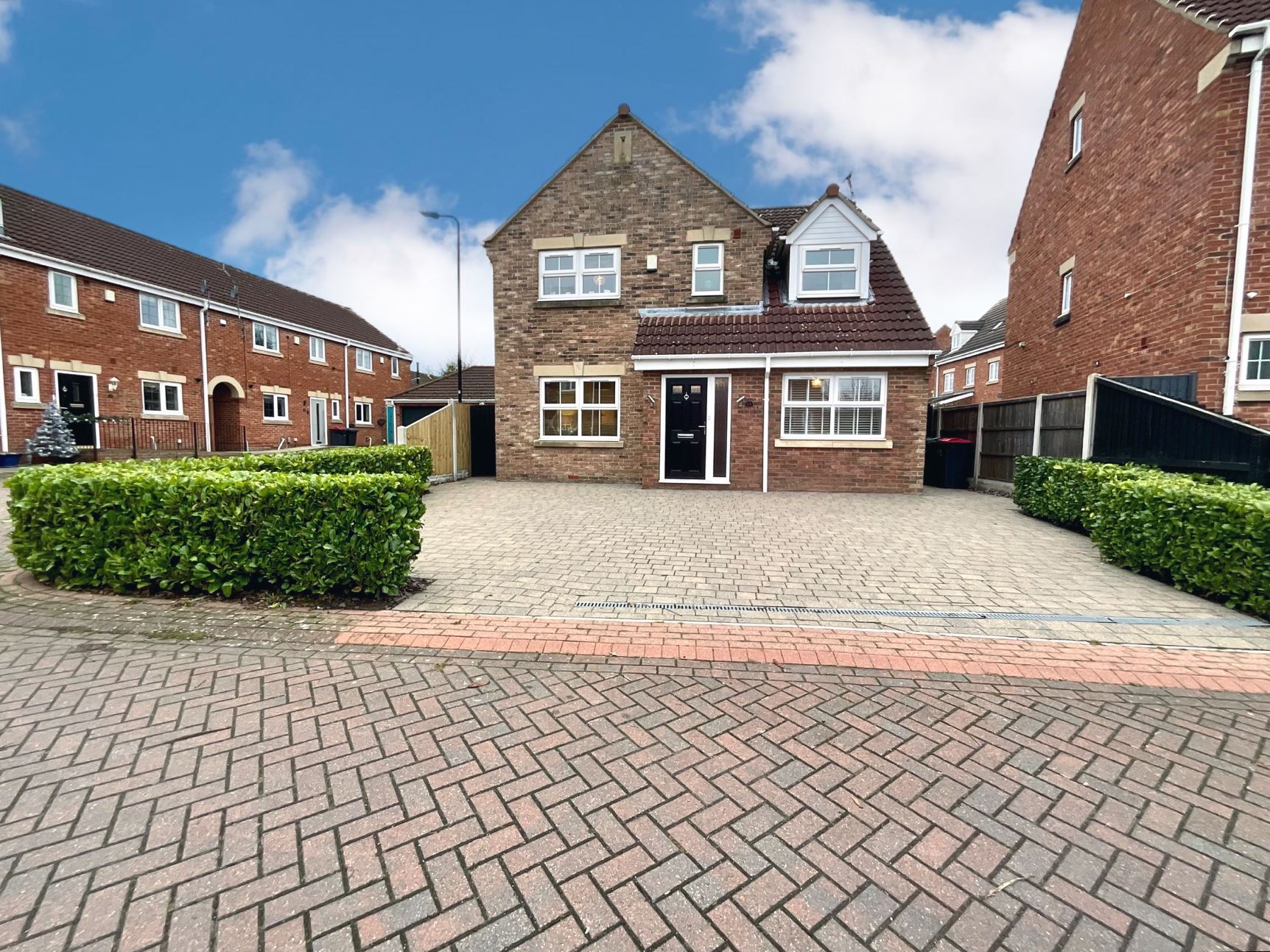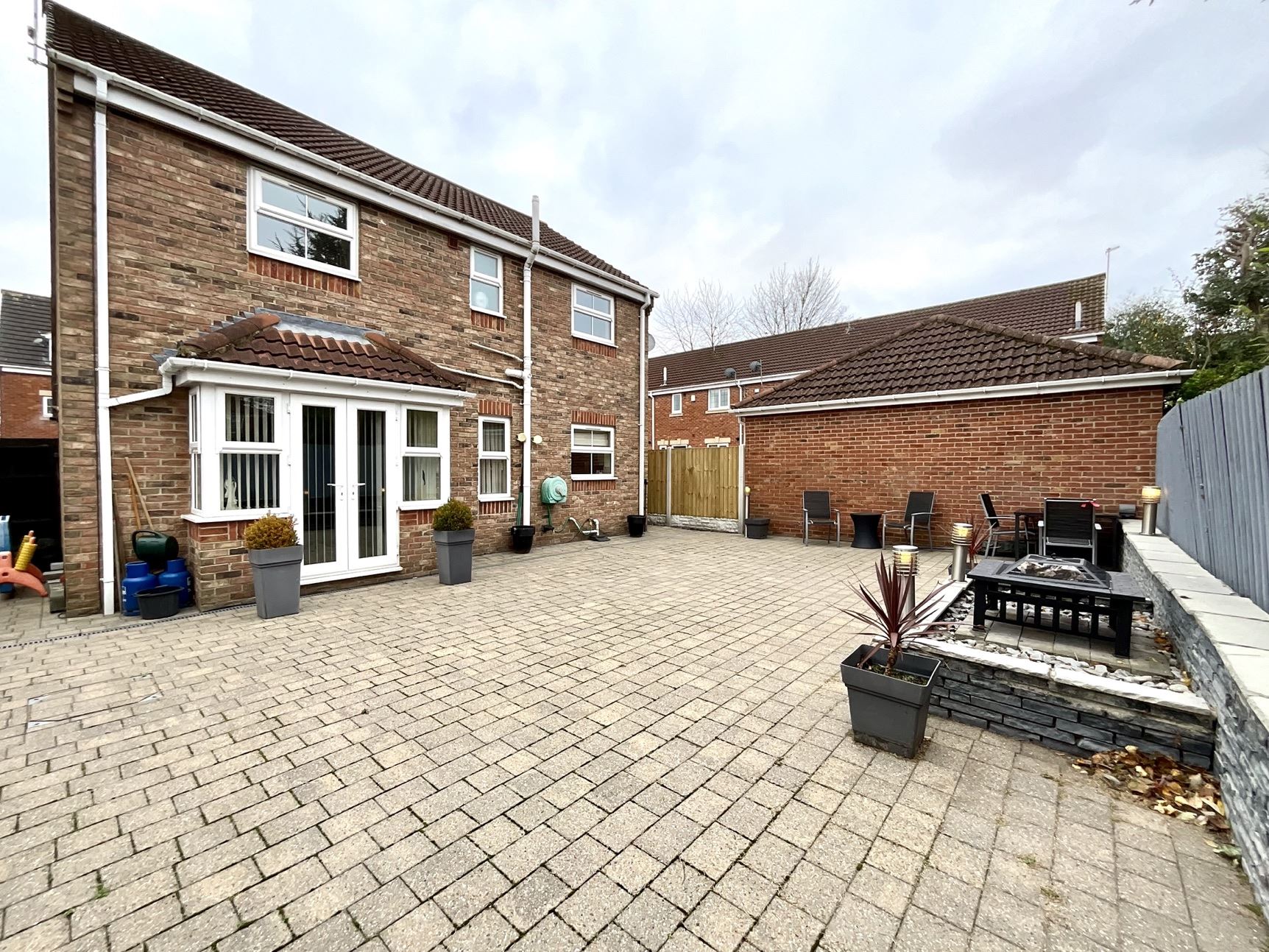 Outside, the block-paved driveway at the front offers ample off-road parking. The generously sized rear garden is fully fenced and gated, continuing the block paving for low maintenance and providing a safe and spacious area for outdoor activities.