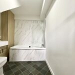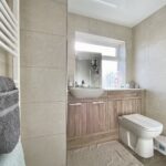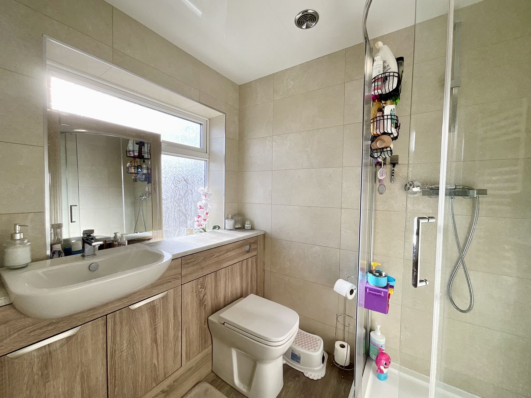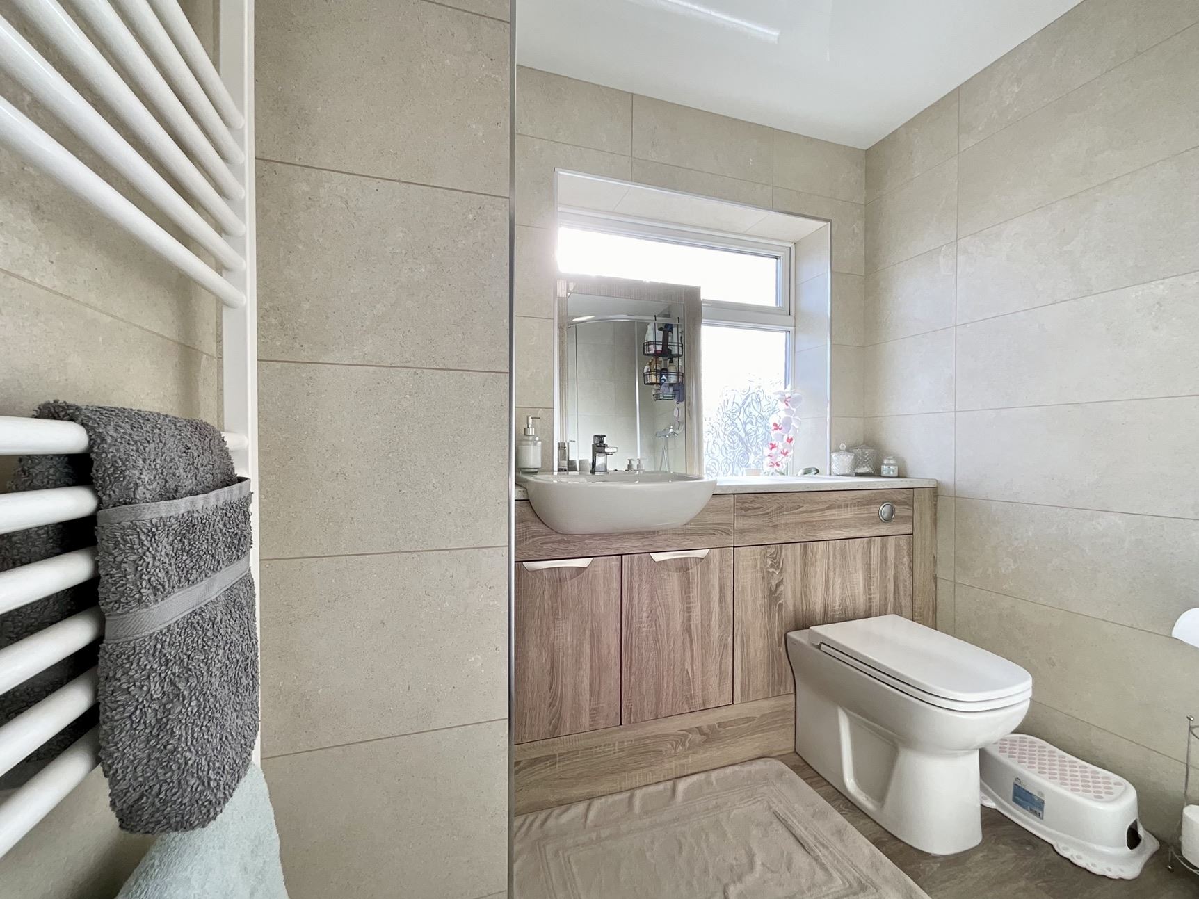 To the first floor are three well-presented bedrooms and a contemporary bathroom, comprising a shower, wash hand basin, and WC inset into a sleek combination vanity cabinet.