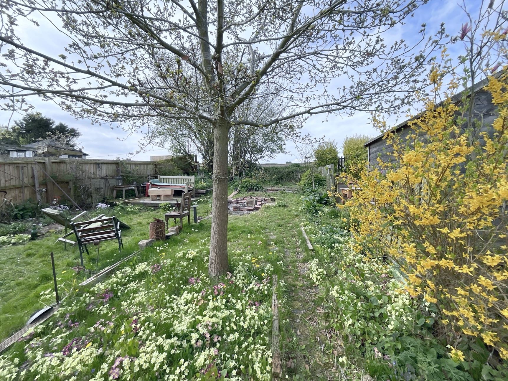 The property is tucked away from the main road, offering privacy and a sense of tranquility. The long front garden has been lovingly maintained and provides a lovely green space to relax or entertain. To the rear, a private road separates the house from an additional garden area and allocated parking, with plenty of on-street parking available for visitors.