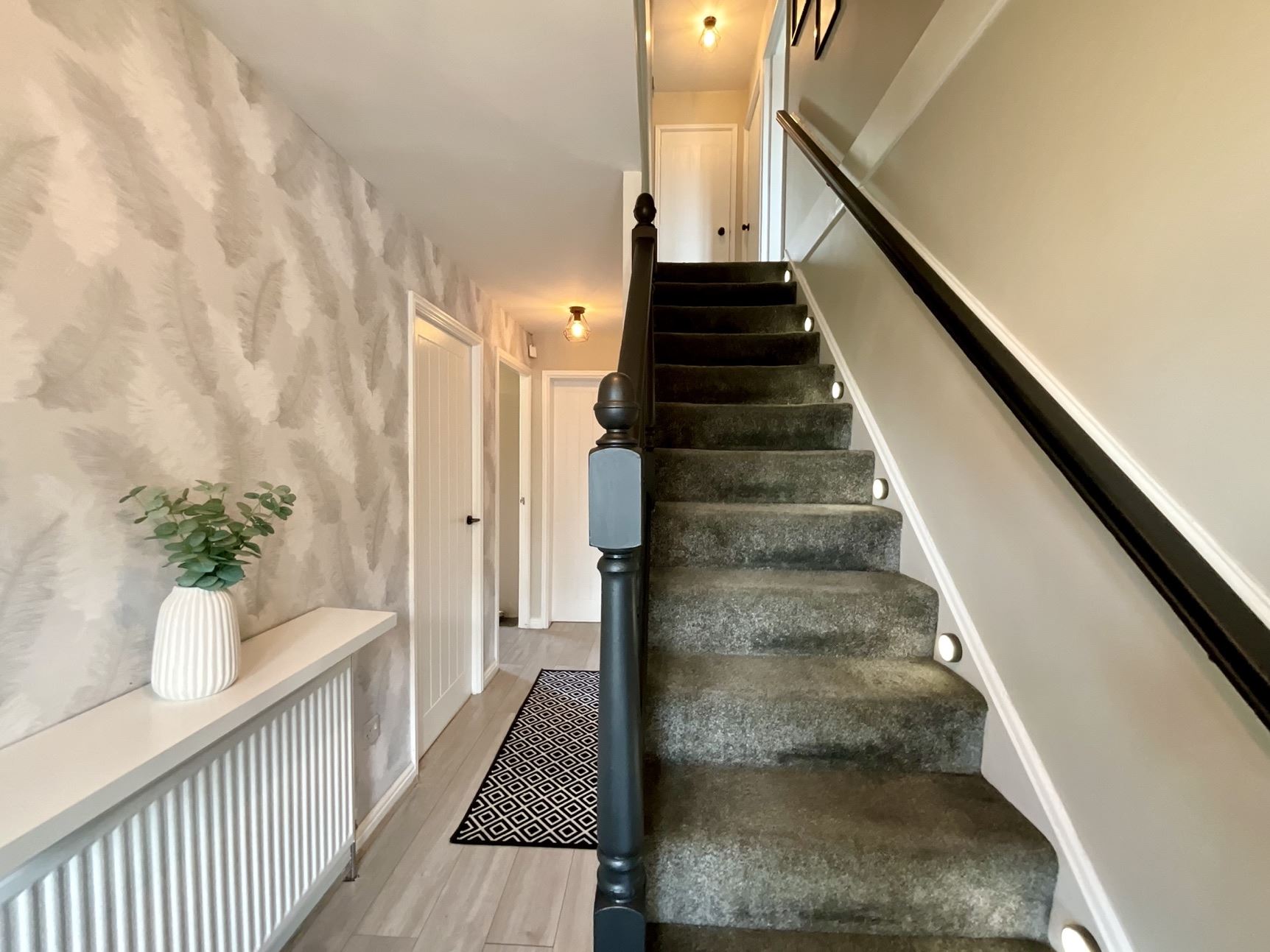 To the first floor are four well-proportioned bedrooms. The stunning master suite features stylish wall panelling, inbuilt wardrobes, and a modern en-suite shower room. Bedroom two also benefits from fitted wardrobes. The family bathroom is appointed with a white suite comprising a bath with shower over, wash hand basin, and WC.