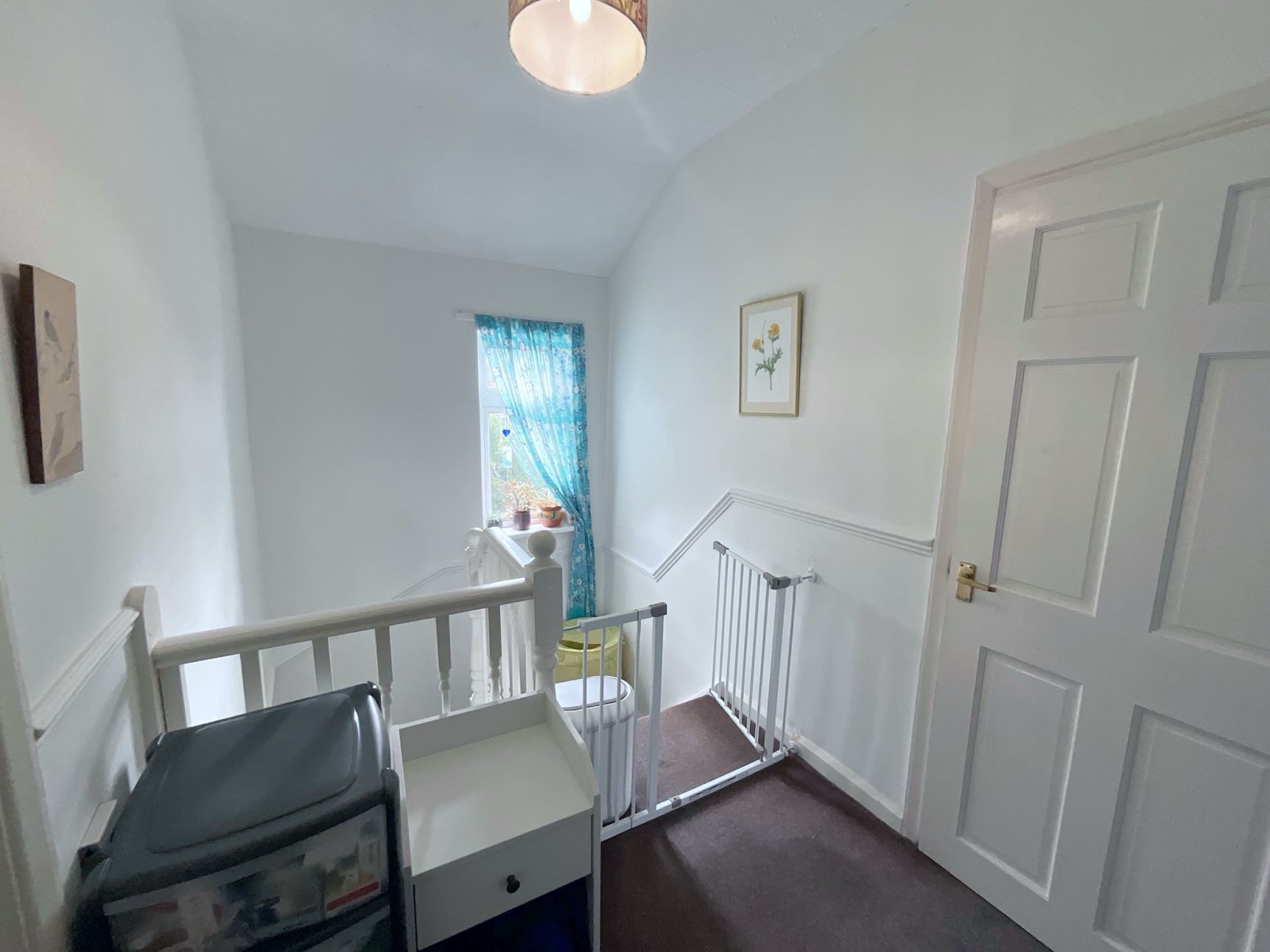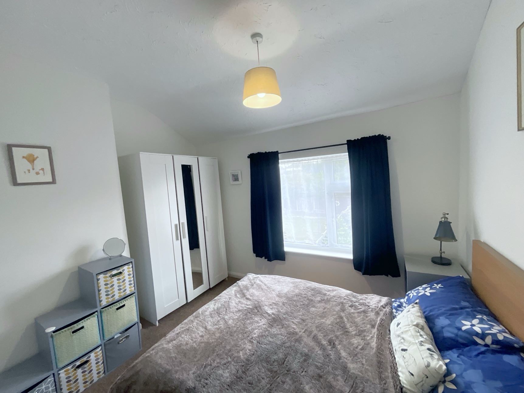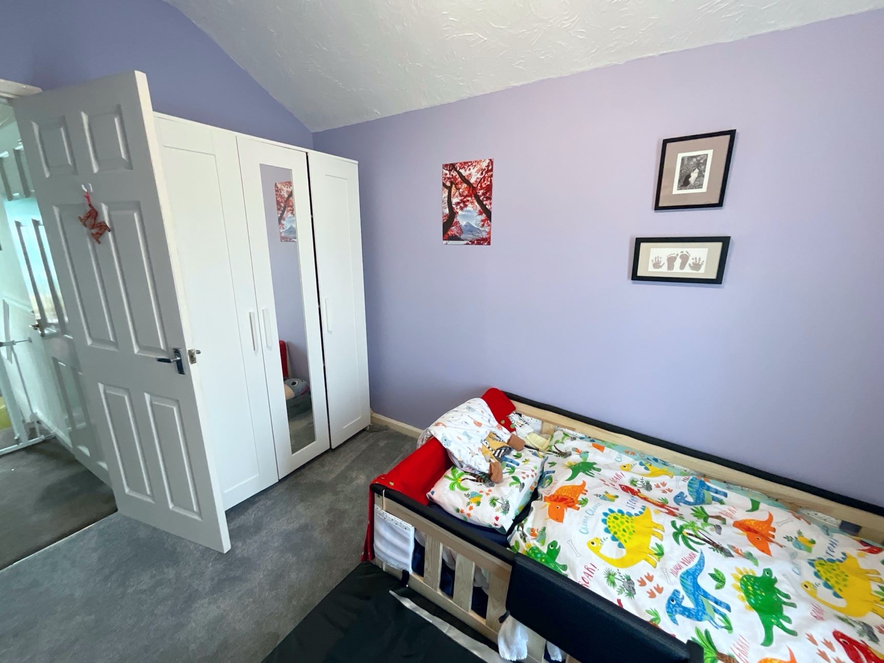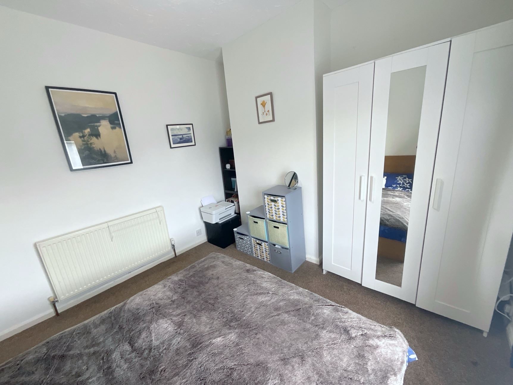 Upstairs, you'll find three generously sized bedrooms and a contemporary bathroom, fully tiled and featuring a white suite including a bath with shower over, a freestanding vanity unit with wash hand basin, and a low flush WC.