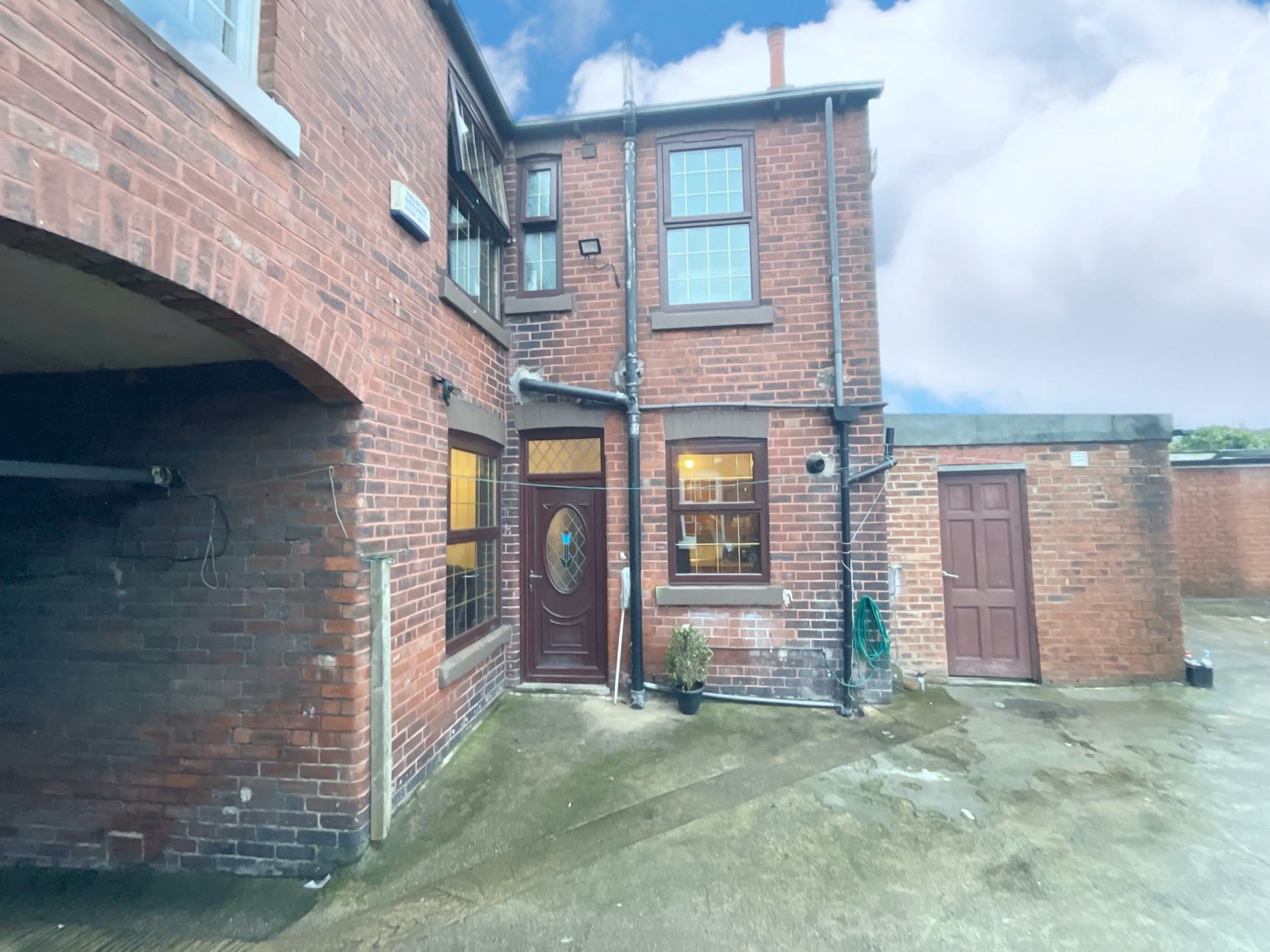 Externally, the property sits on spacious grounds featuring a courtyard area, accessible via a shared driveway—perfect for outdoor social gatherings. or additional parking. Further enhancing the appeal is a brick-built attached outbuilding complete with a shower, providing flexible additional space.