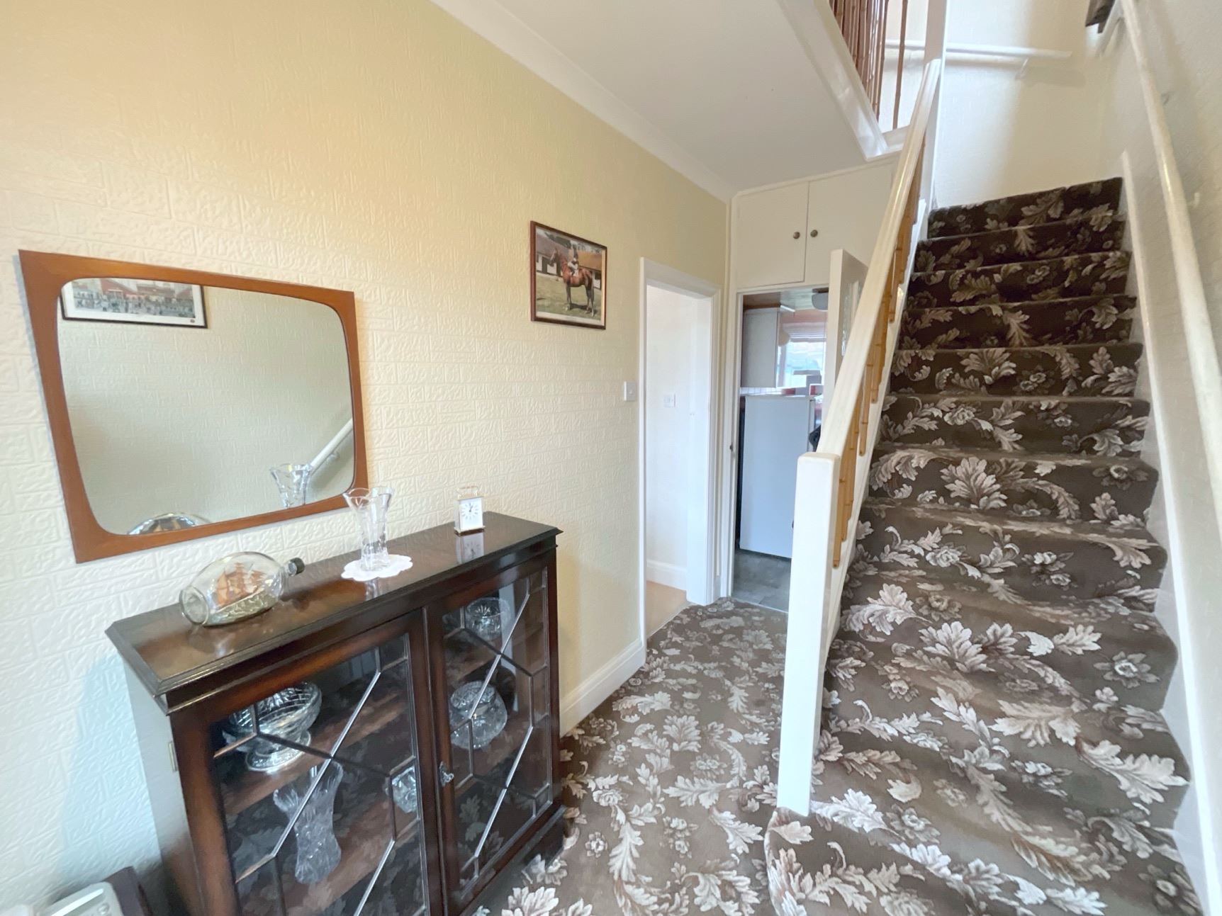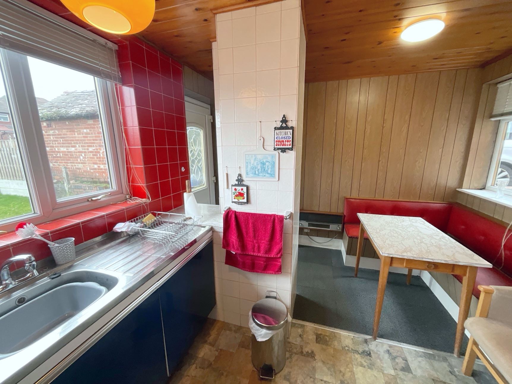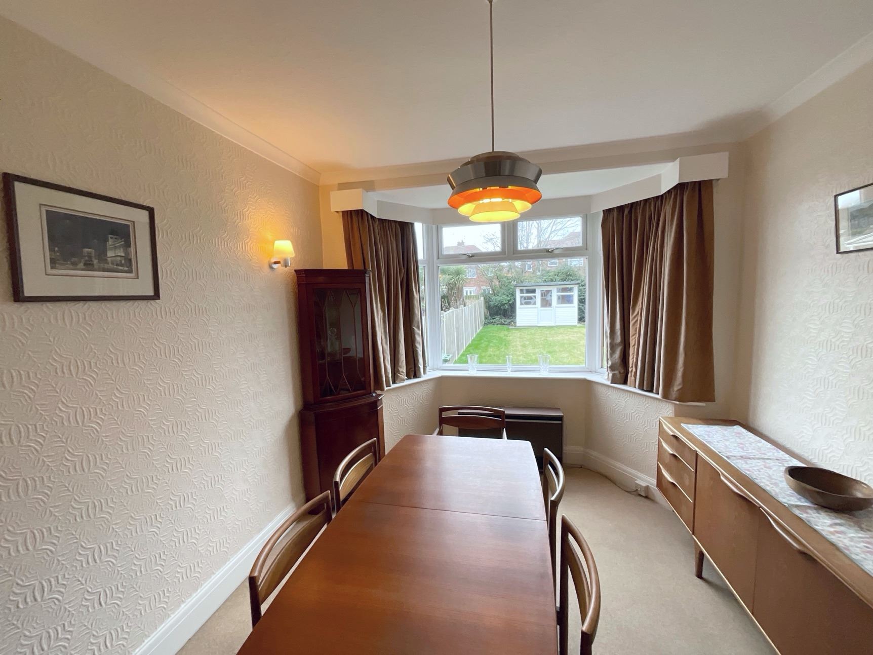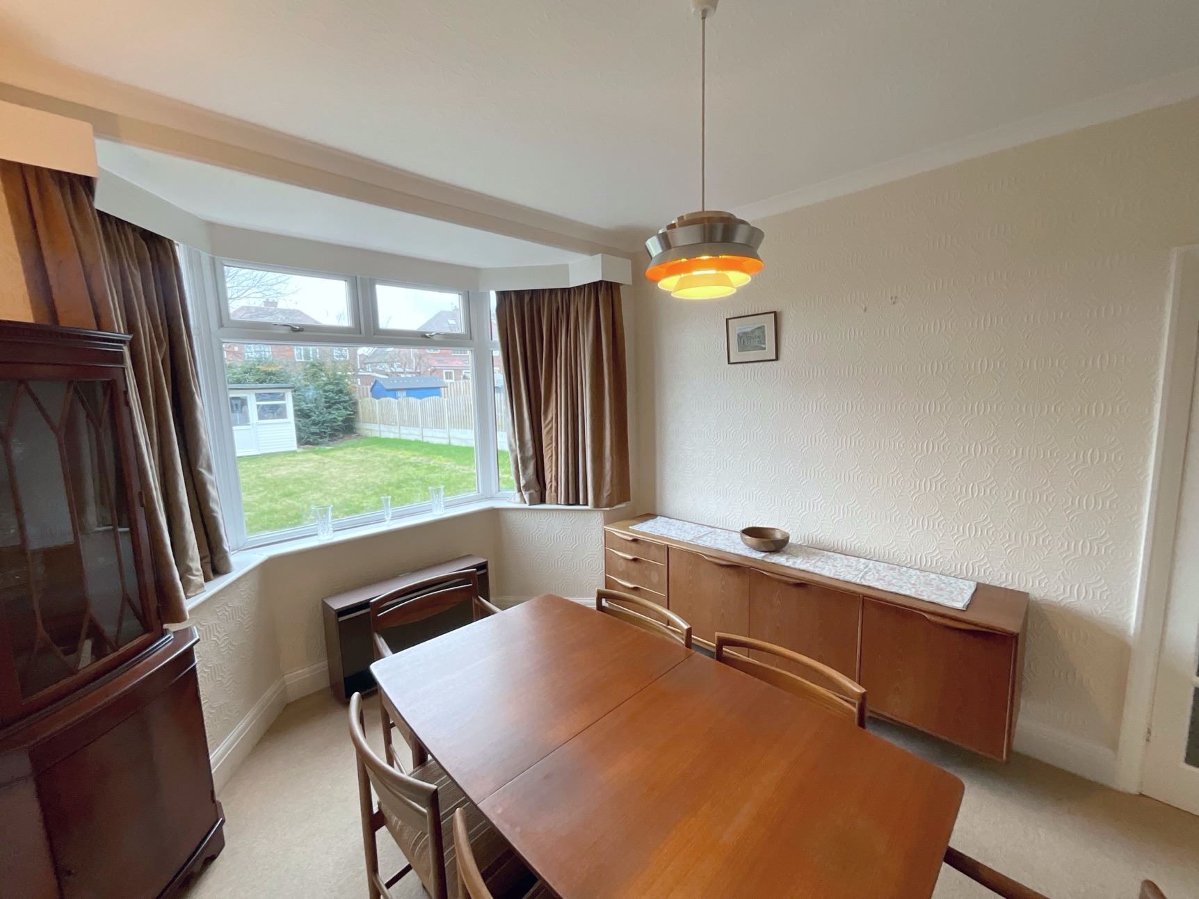 The property welcomes you with a spacious entrance hallway providing access to the main living areas and stairs rising to the first floor. The lounge is bright and airy, enhanced by a bay window and feature fireplace, while a separate dining room with a rear-facing bay window offers an excellent space for family dining and entertaining. The kitchen is fitted with a range of wall and base units with contrasting work surfaces and includes a built-in seating area and table, presenting great scope for redesign or open-plan living if desired.