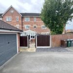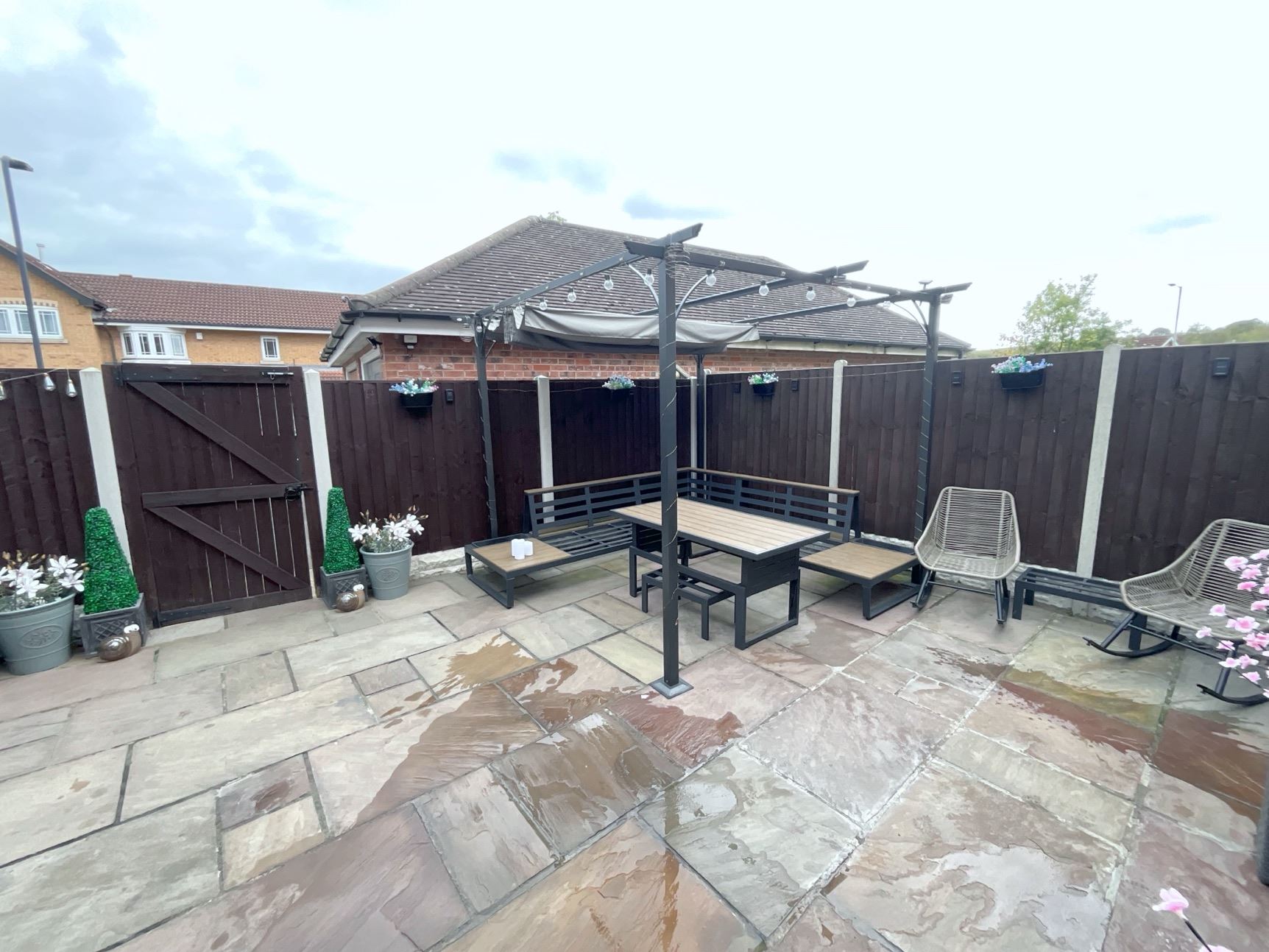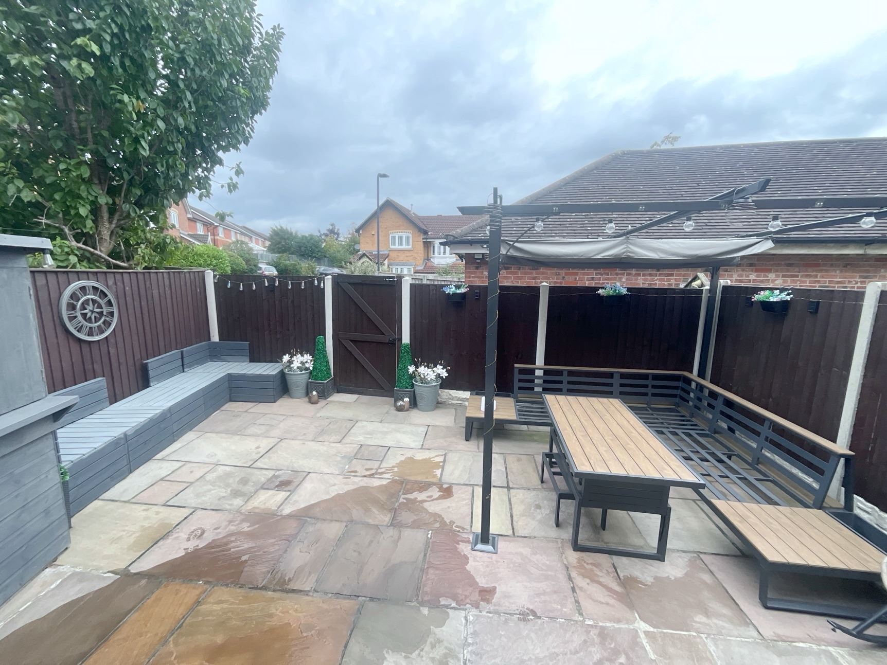 Outside, the front garden is attractively planted with mature trees and shrubs, offering curb appeal and a warm welcome. The rear garden is fully enclosed with timber fencing, laid with beautiful Indian stone paving, and includes a rear gate leading to the private single garage.