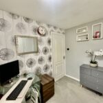Ascending to the first floor, you will find three well-proportioned bedrooms, each thoughtfully designed to maximize space and light. The contemporary family bathroom is finished to a high standard, featuring a pristine white suite with a bath and overhead shower, a washbasin set within a stylish vanity cabinet, and a WC.