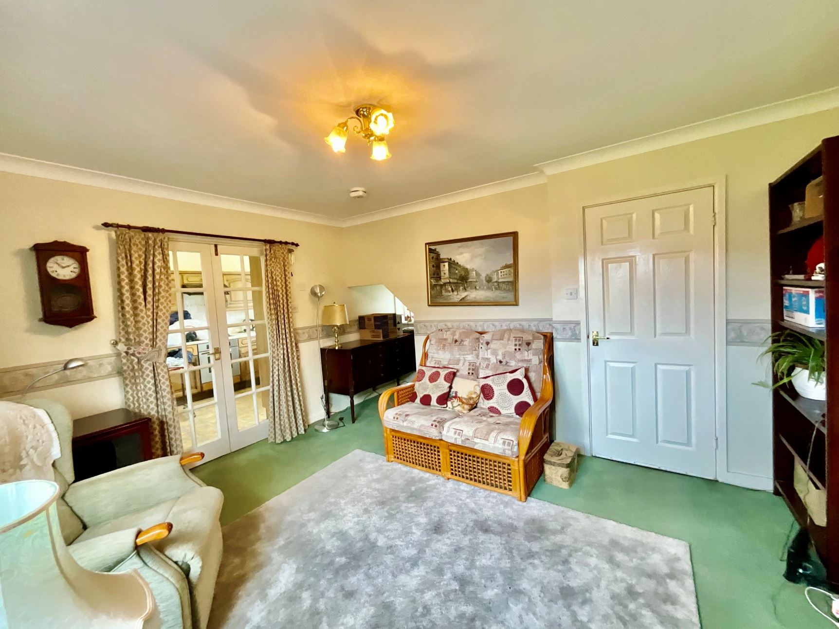 A driveway provides off-road parking and leads to a garage offering useful storage space, The garden is well-proportioned laid mainly to lawn with mature trees and shrubs to the edges.