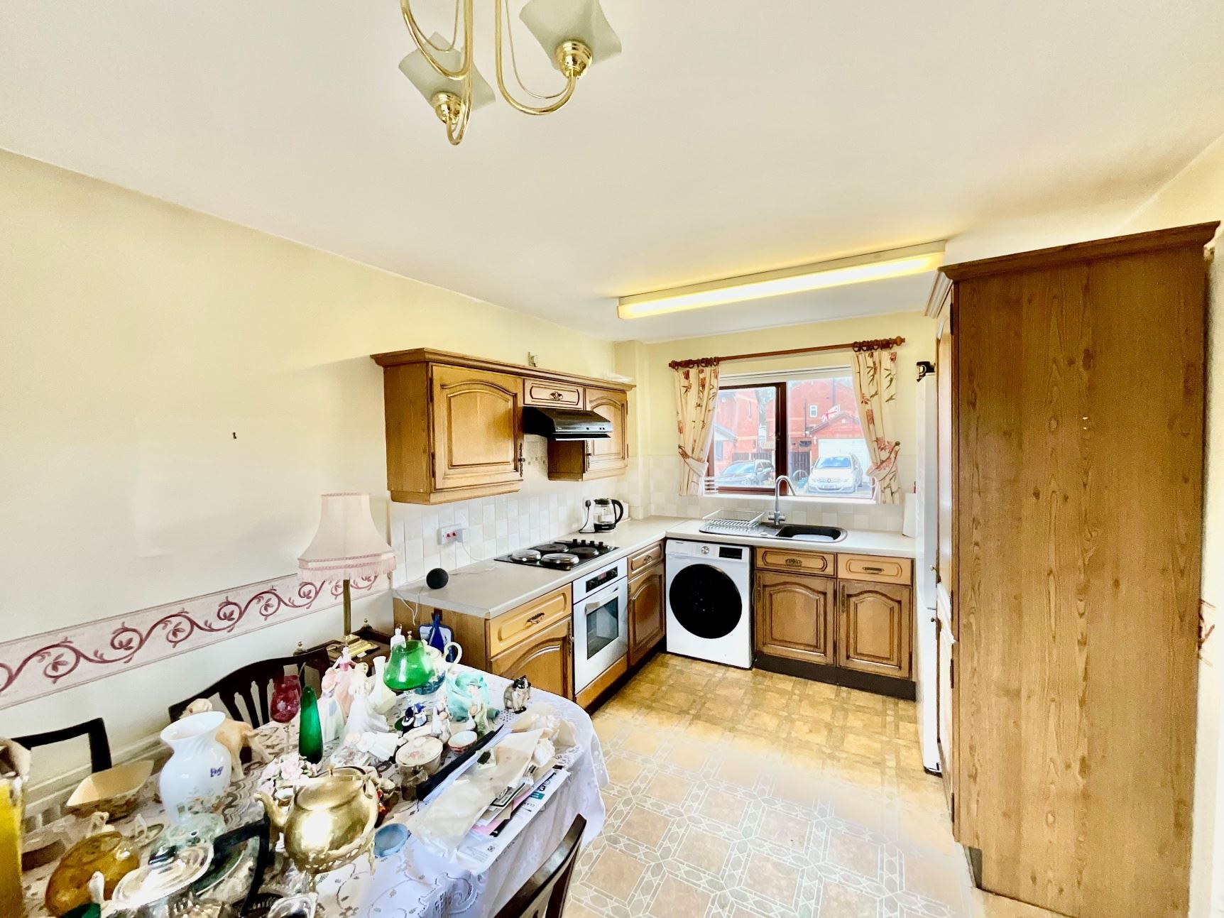 The accommodation comprises a welcoming entrance hallway leading into a rear facing lounge and useful under-stair area. The kitchen is fitted with a range of wall and base units with contrasting worktop. Sliding doors opens out to the rear garden, allowing natural light to flood the space and offering a seamless connection to the outdoors.
